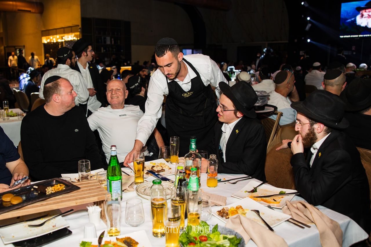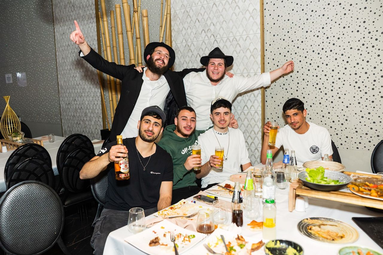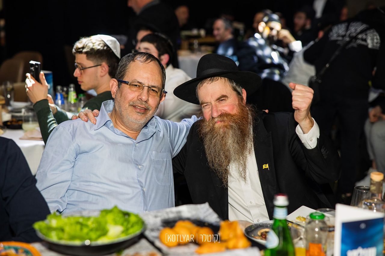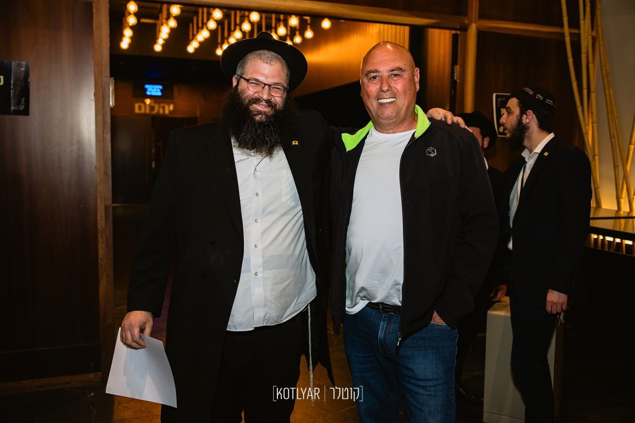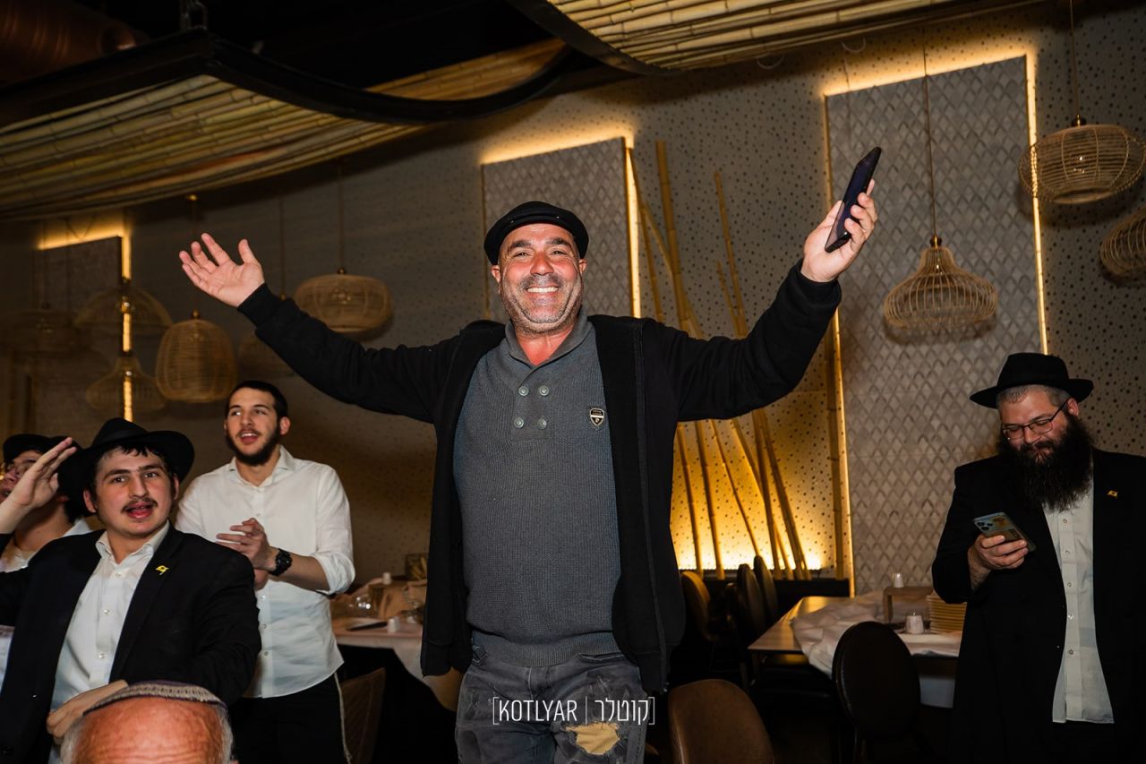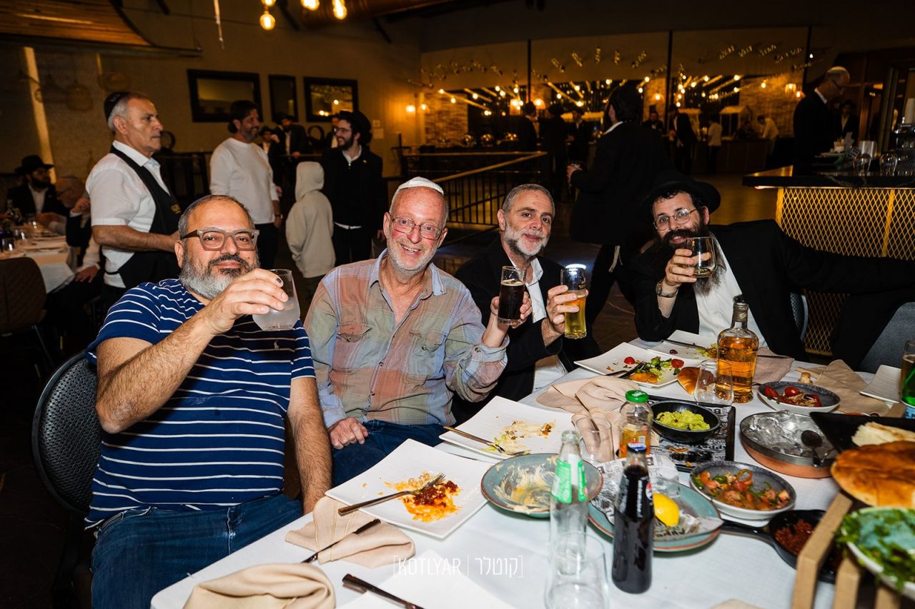 בסיום הערב התיישבו המקורבים והתמימים להתוועדות חסידית סוערת עם הרב עופר מיידובניק.