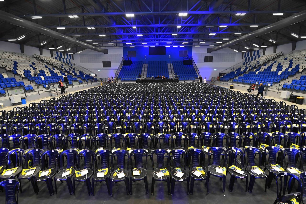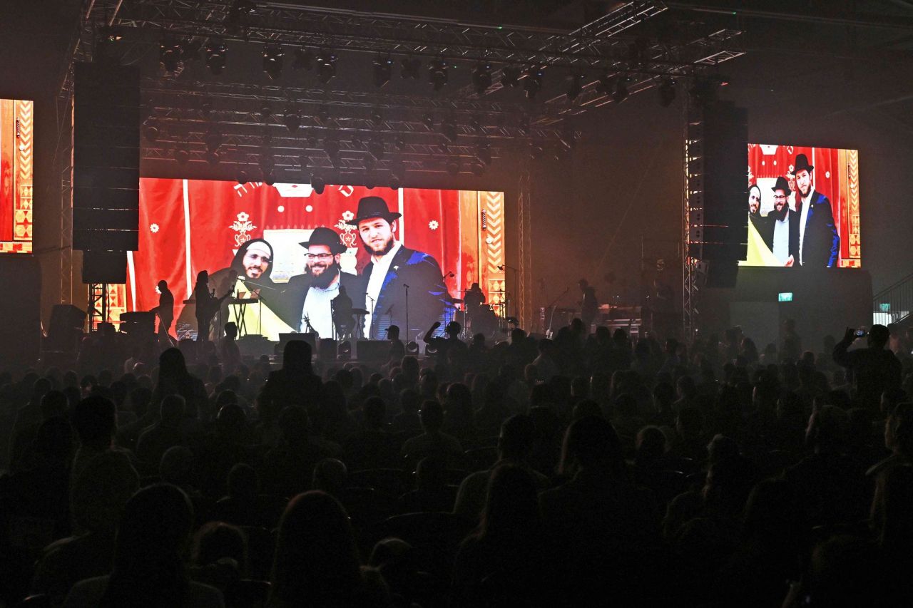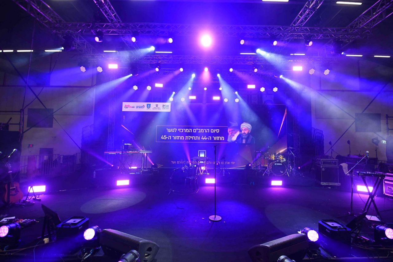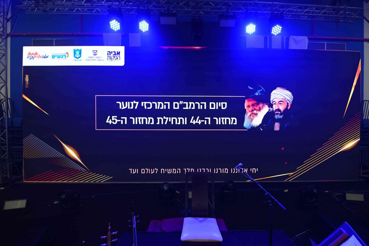את הבאים קיבלו מסכי ענק יחד עם תמונות הרבי מלך והמשיח שליט"א והרמב"ם והכרזת הקודש "יחי אדוננו". על כל מושב הונח גלויה עם לימוד הרמב"ם ודגל 'משיח', שאותם חילקו התמימים שהגיעו במיוחד מצפת.