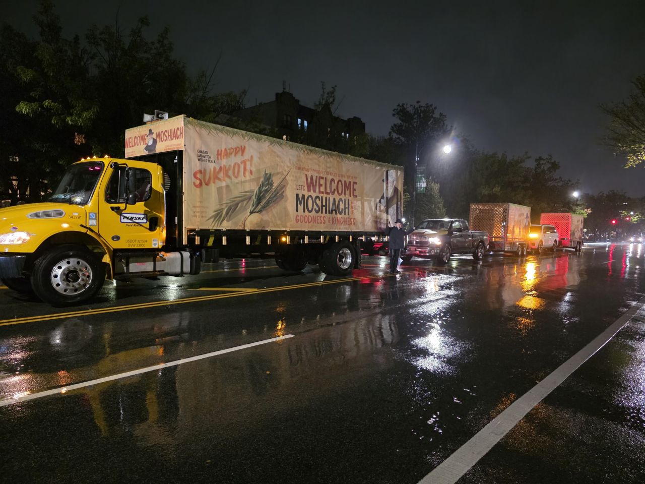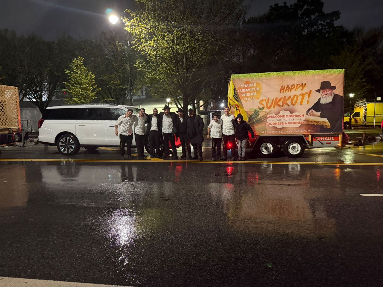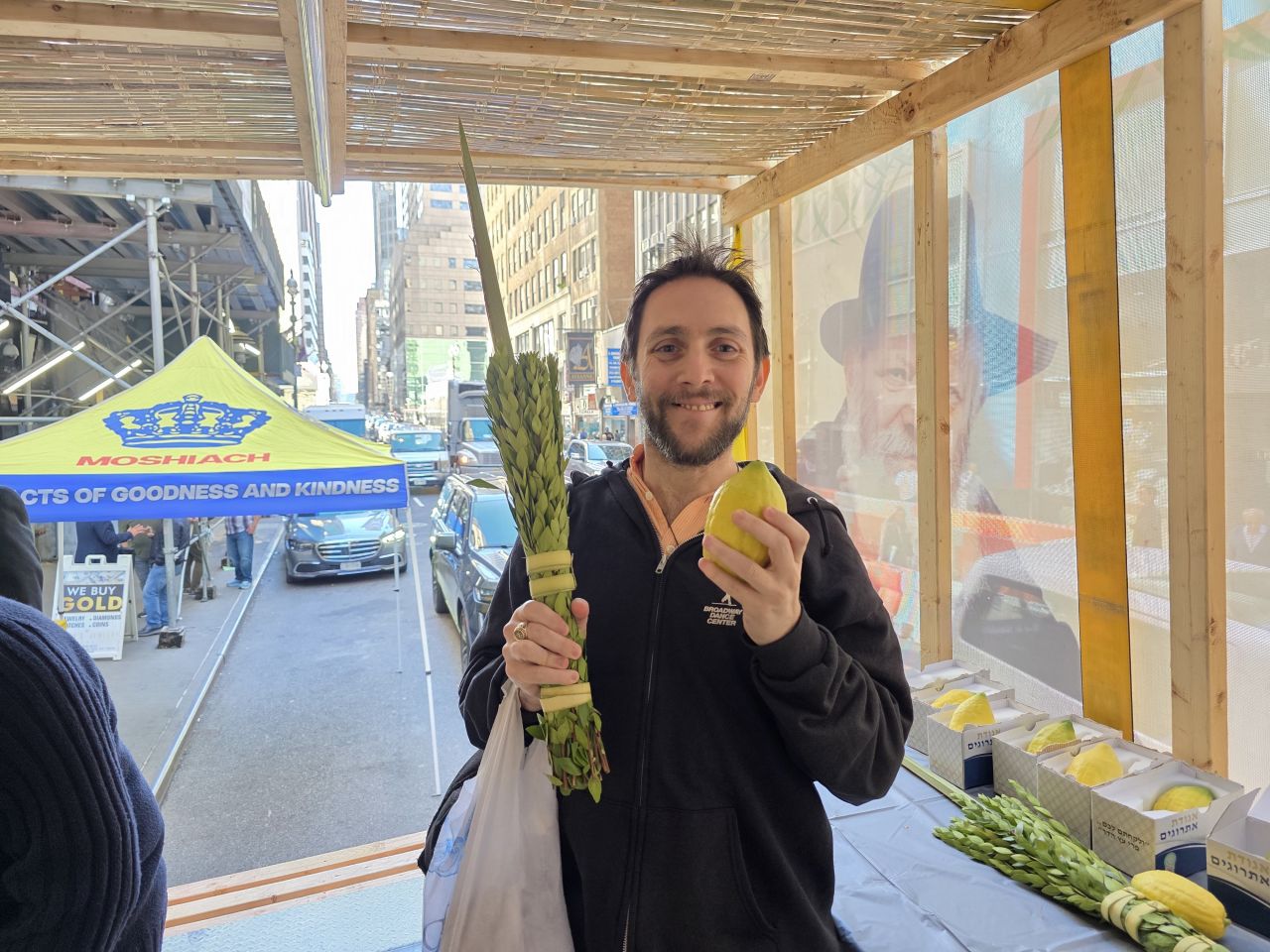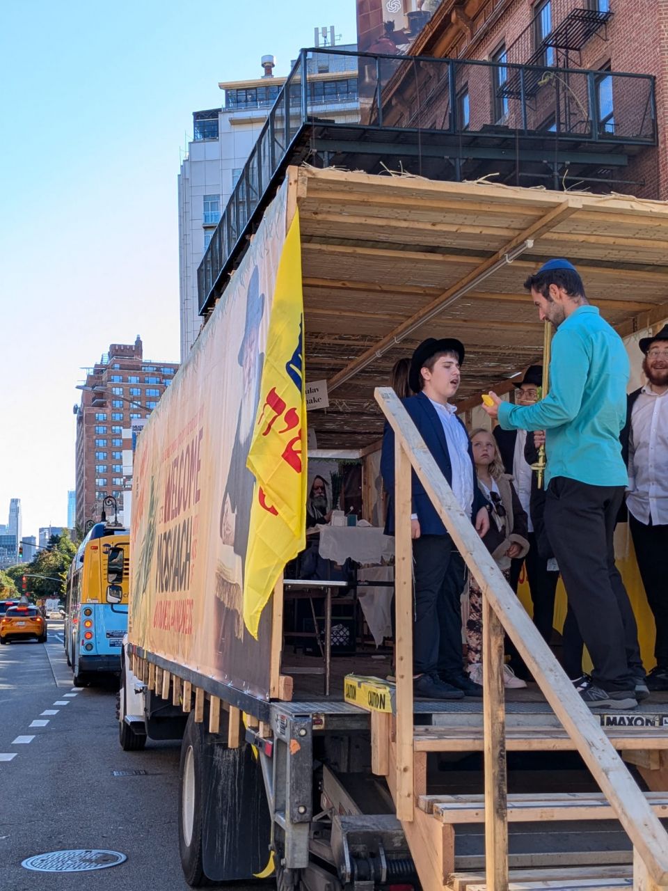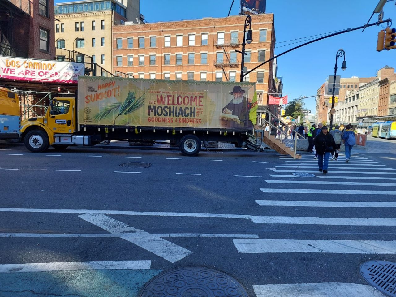 וואו, איזה מרגש זה לראות ככה 3 סוכות ענקים עם תמונות של הרבי באמצע מנהאטן.