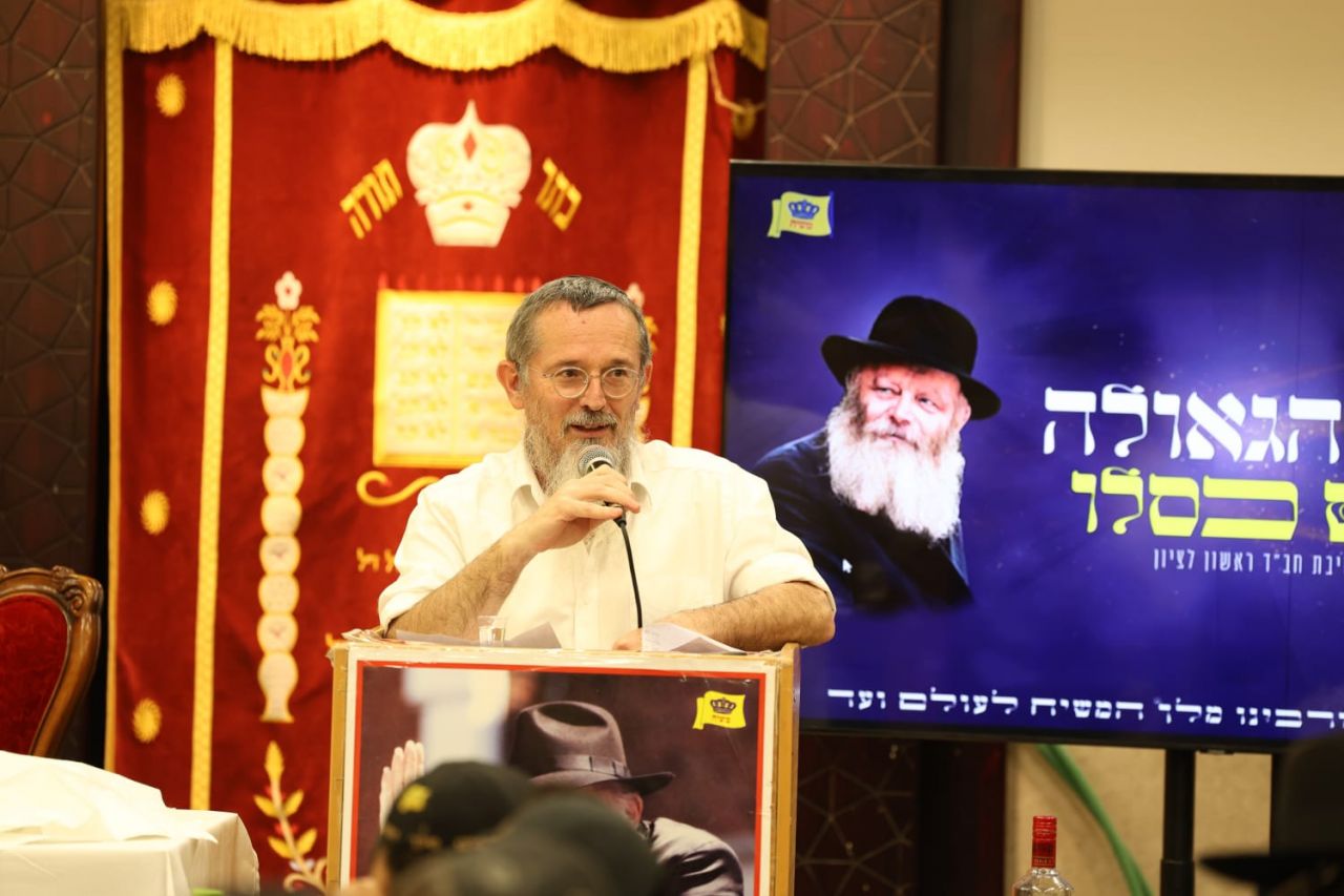 הסרטון נגמר ושירת 'פדה בשלום נפשי' נרגשת פורצת מפי הנוכחים, השירה תמה והרב יוסף יצחק שיחי' ויצהנדלר הידוע כ'פה מפיק מרגליות' עולה אל דוכן הנואמים ובדבריו מעורר את הנוכחים על גודל היום המיוחד ומסביר להם בצורה ברורה ויחודיית על זהות הגואל וחייו הנצחיים והקשר לחיי היום יום הפרקטיים, דבריו מעוררים הדים בקהל.