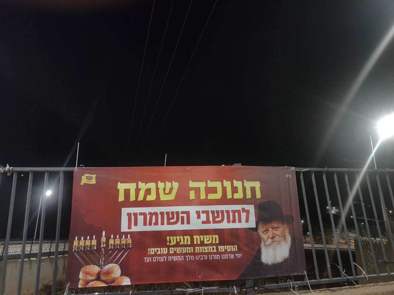 אל מול חשכת הליל והערפל האופף את כבישי יהודה ושומרון, בקע השבוע אור יקרות יוצא דופן. ולרגל חג החנוכה עשרות שמשוניות ענק, עם הכיתוב 'חנוכה שמח' ובשורת הגאולה וזהות הגואל הוצבו בפתחי הערים והיישובים ביו"ש