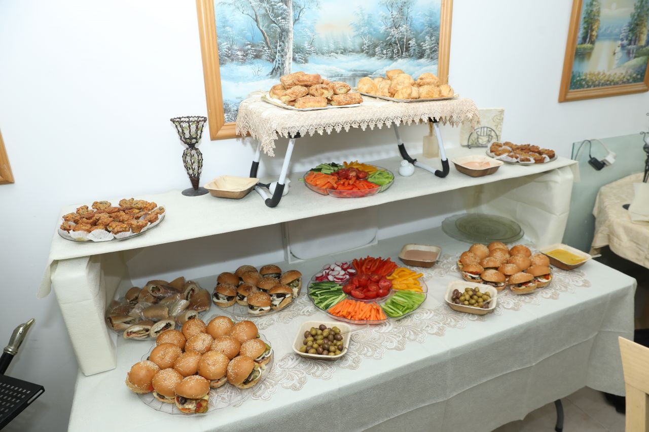 כאשר הגיעה התהלוכה להיכל הישיבה, התכבדו הנוכחים מסט מהודר של פירות חמשה עשר בשבט ומיני תרגימא ומיד החלו מנהג ההקפות הנודע אותו ניהל בחיות חסידותית הרה"ח ר' חיים משה שיחי' אלפרוביץ, משפיע בישיבה.