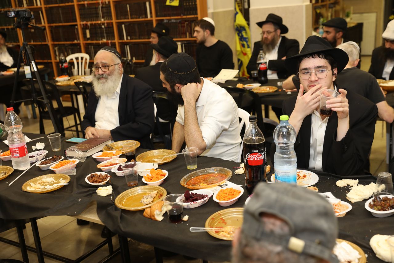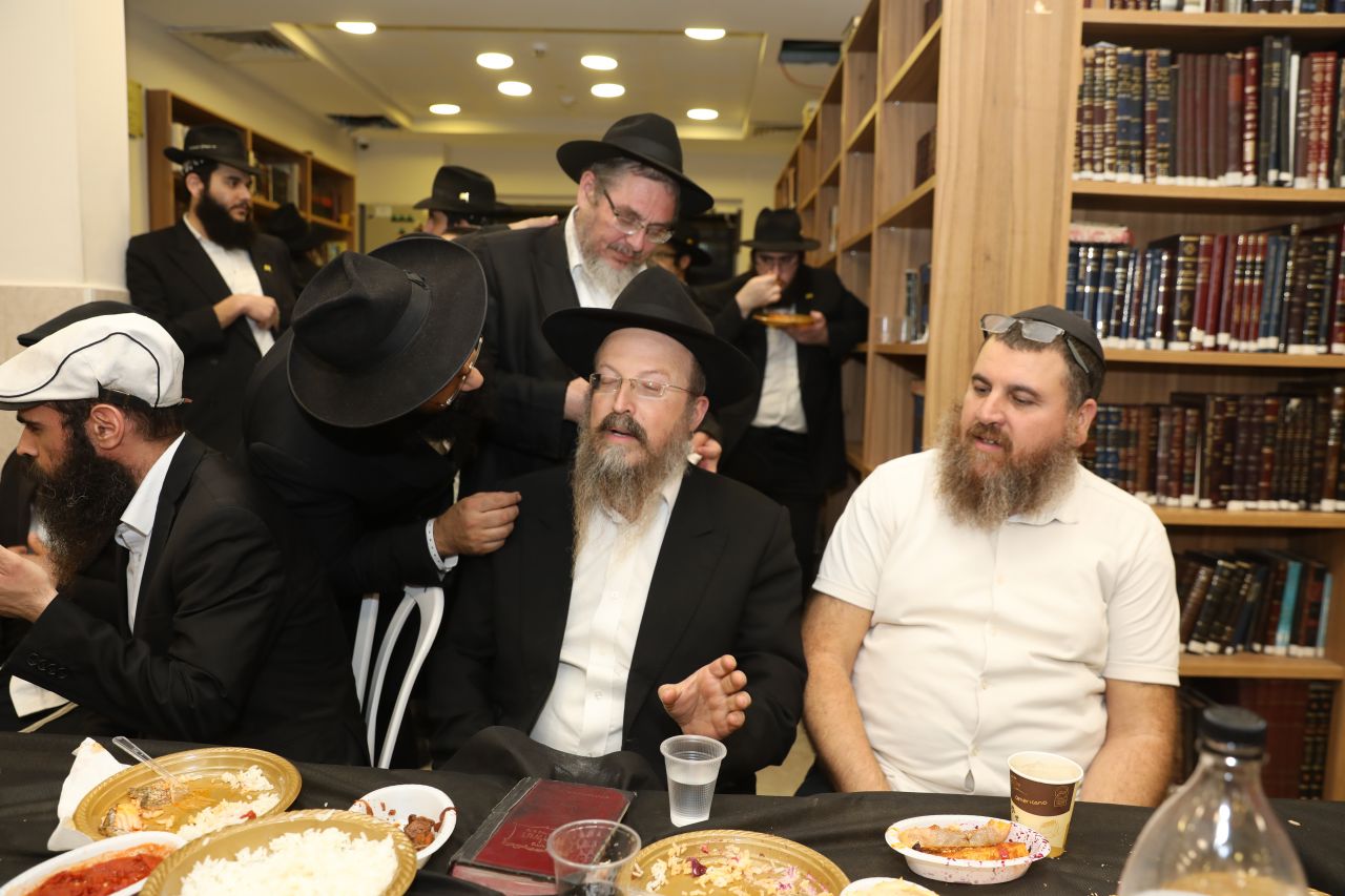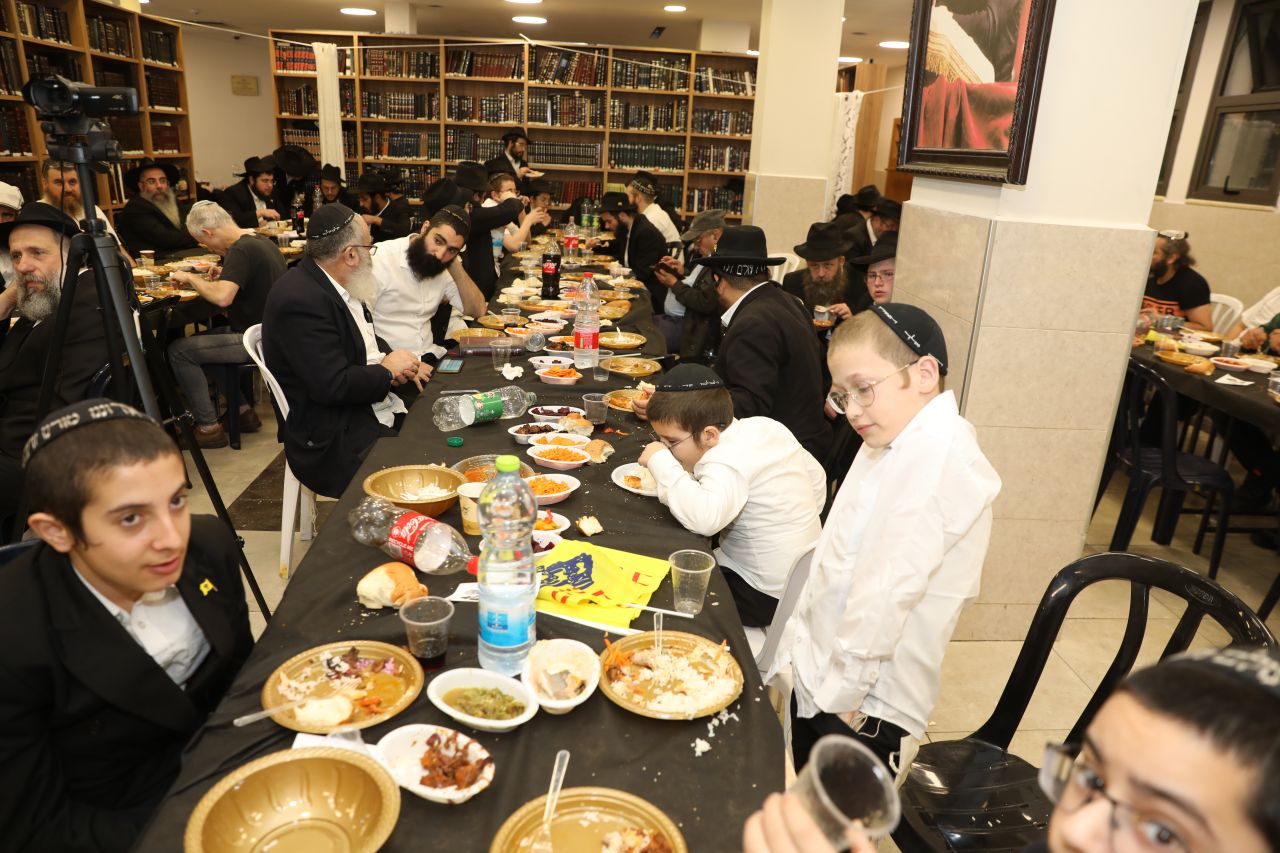 רק לפני חצות ליל התיישב הקהל העצום לסעודת מצווה חגיגית וסיום הרמב"ם שחל בהשגחה פרטית באותו יום, כאשר לכל לראש הוזמן לחגיגה כ"ק אדמו"ר מלך המשיח שליט"א על ידי הרה"ח ר' יעקב שיחי' לנצ'נר ר"מ ומשיב בישיבה.