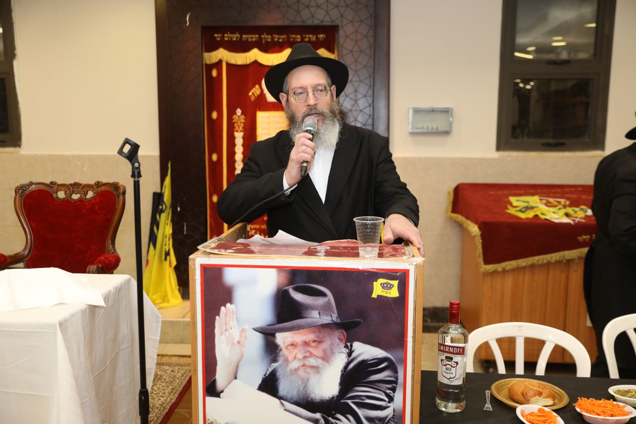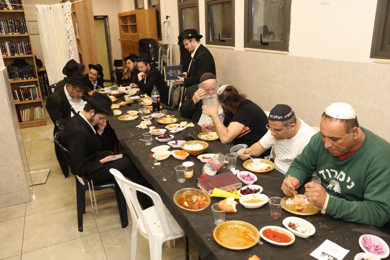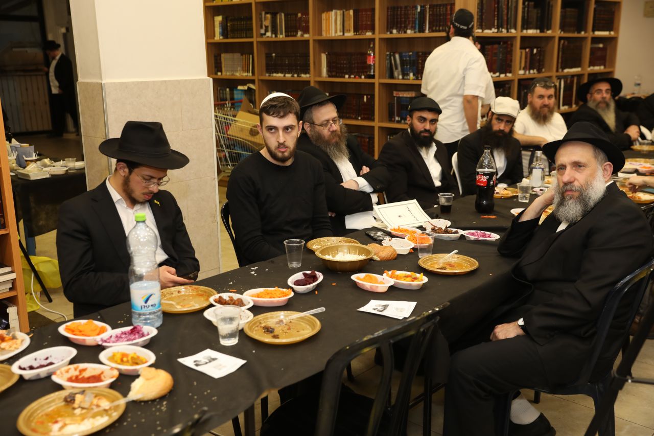 רק לפני חצות ליל התיישב הקהל העצום לסעודת מצווה חגיגית וסיום הרמב"ם שחל בהשגחה פרטית באותו יום, כאשר לכל לראש הוזמן לחגיגה כ"ק אדמו"ר מלך המשיח שליט"א על ידי הרה"ח ר' יעקב שיחי' לנצ'נר ר"מ ומשיב בישיבה.