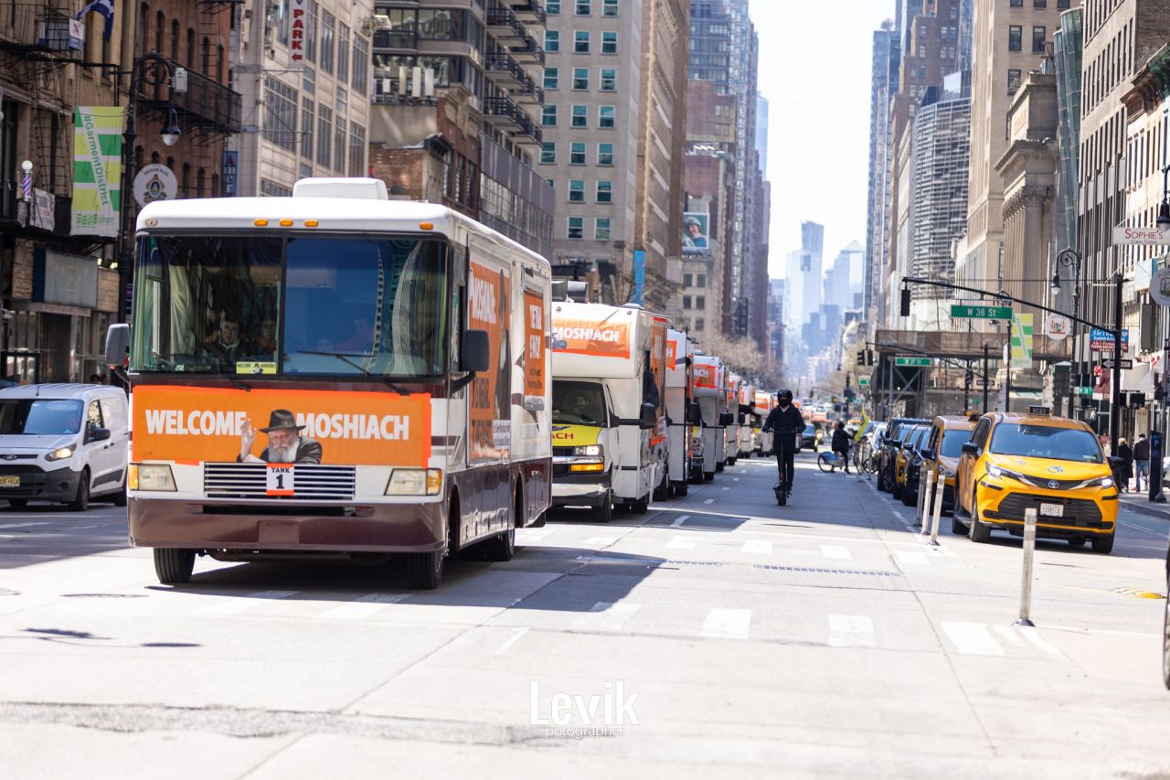 גלריית ענק: טנקי המצוות כבשו בי"א ניסן את ניו יורק