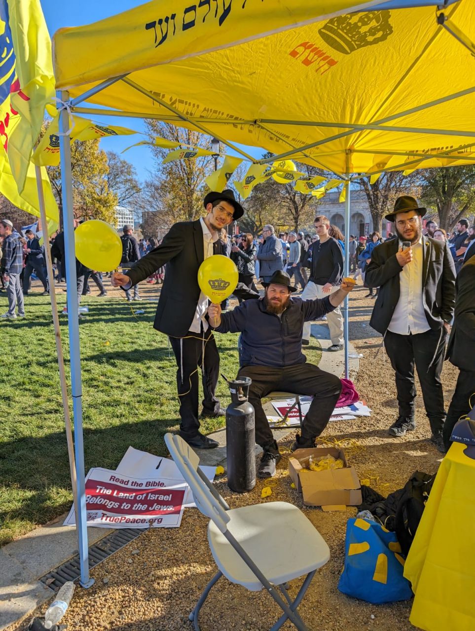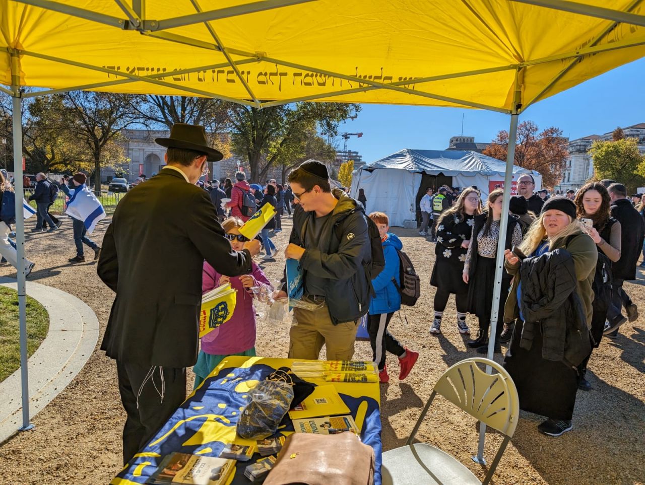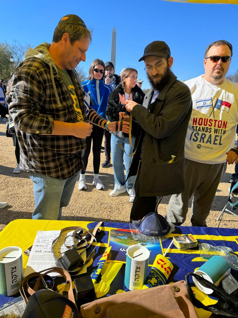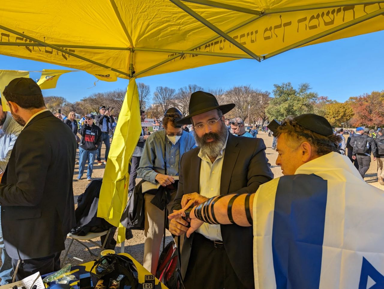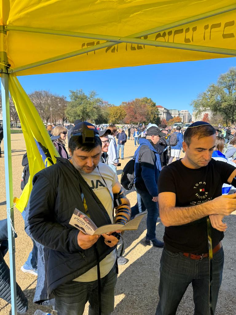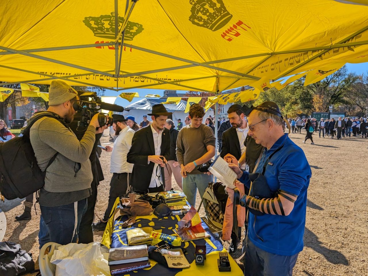 לצד מאות אלפי המפגינים, הגיעו למקום (איך לא..) היישר מניו יורק שלושה 'טנקים' שמתוכם זינקו עשרות בחורי ישיבה חב"דיים. המשימה - להניח לכמה שיותר יהודים תפילין, לחבר אותם לנקודה היהודית שלהם ולספר להם על הרבי מלך המשיח שליט"א ועל נבואתו באשר לגאולה הקרובה.