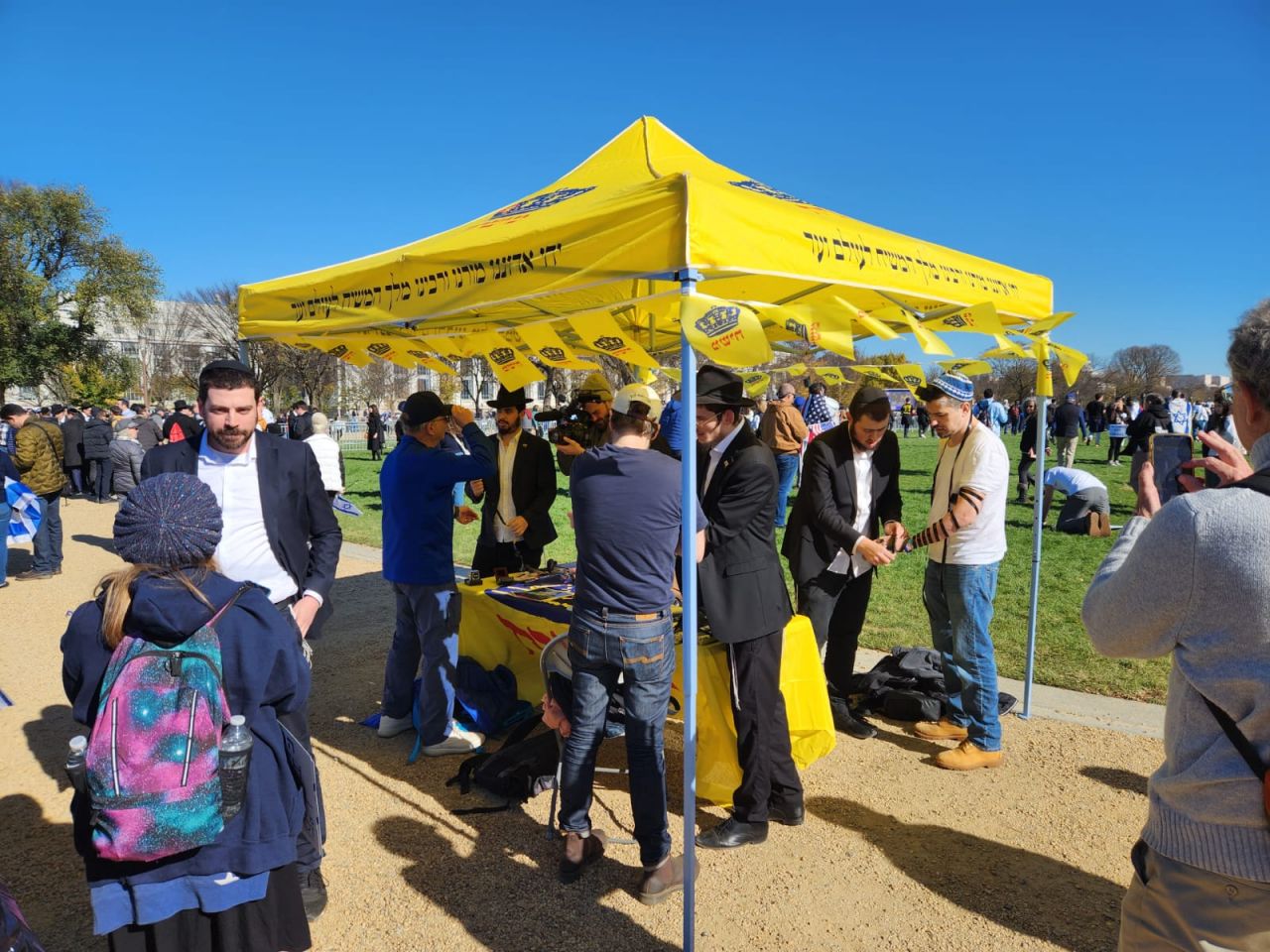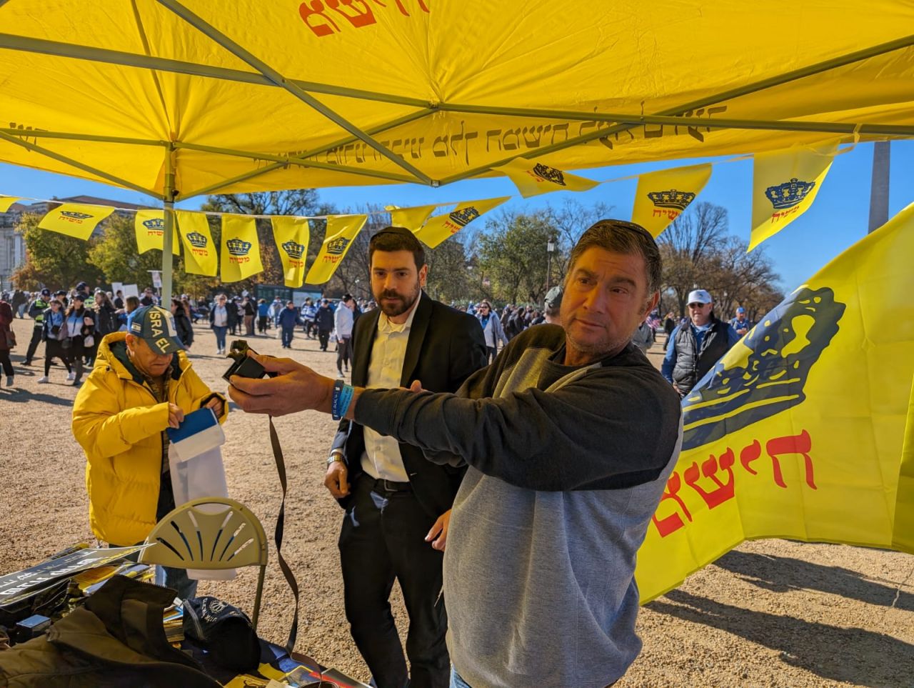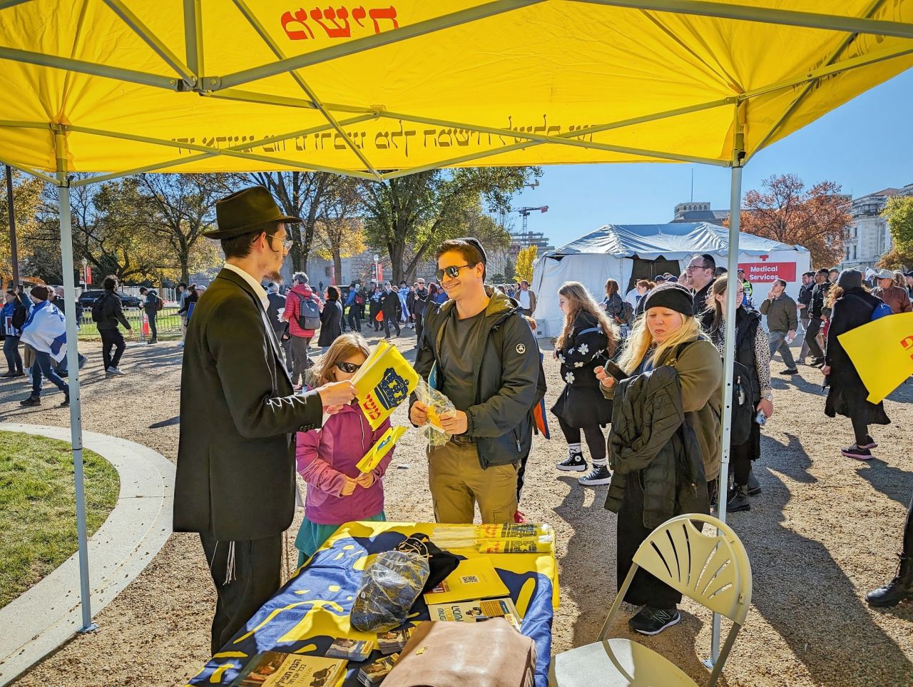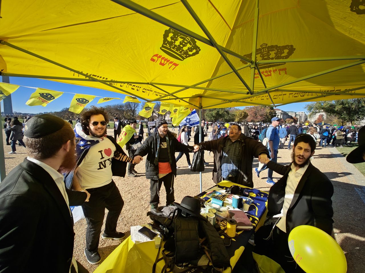 לצד מאות אלפי המפגינים, הגיעו למקום (איך לא..) היישר מניו יורק שלושה 'טנקים' שמתוכם זינקו עשרות בחורי ישיבה חב"דיים. המשימה - להניח לכמה שיותר יהודים תפילין, לחבר אותם לנקודה היהודית שלהם ולספר להם על הרבי מלך המשיח שליט"א ועל נבואתו באשר לגאולה הקרובה.