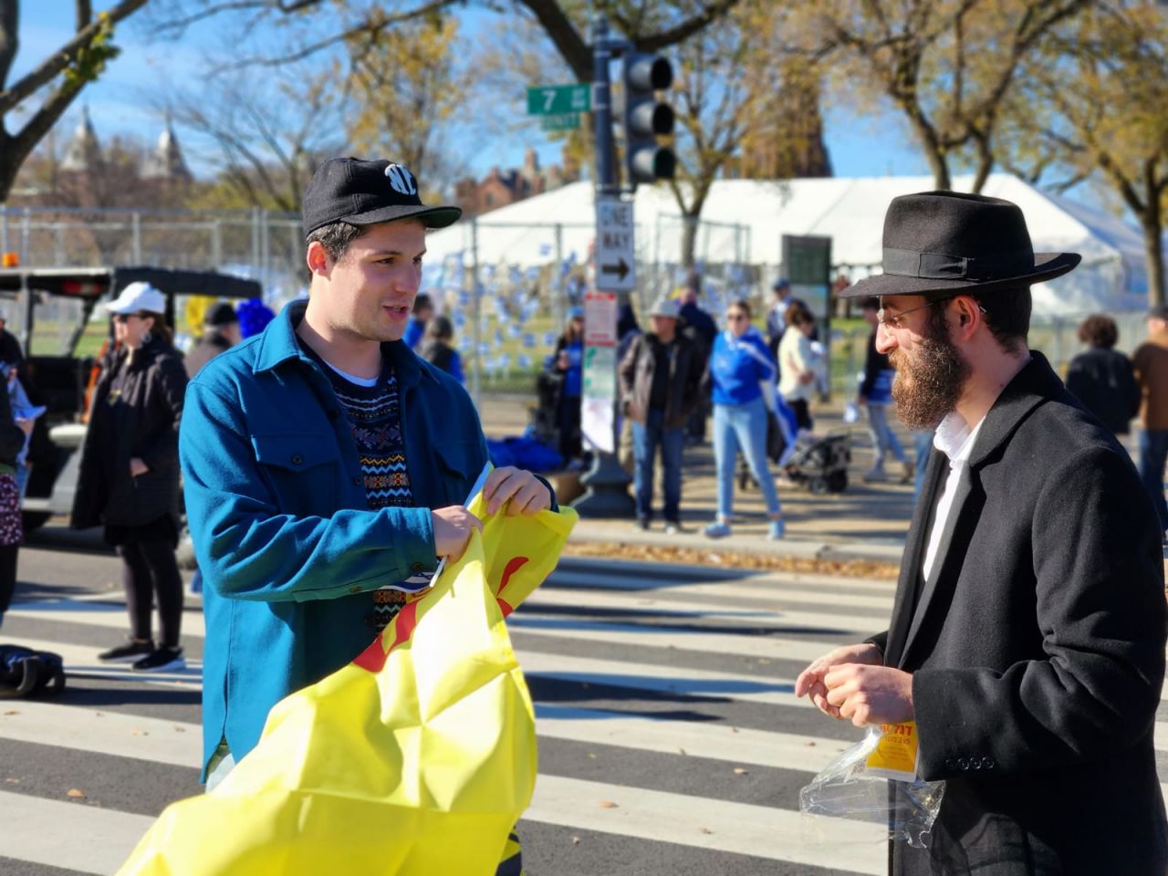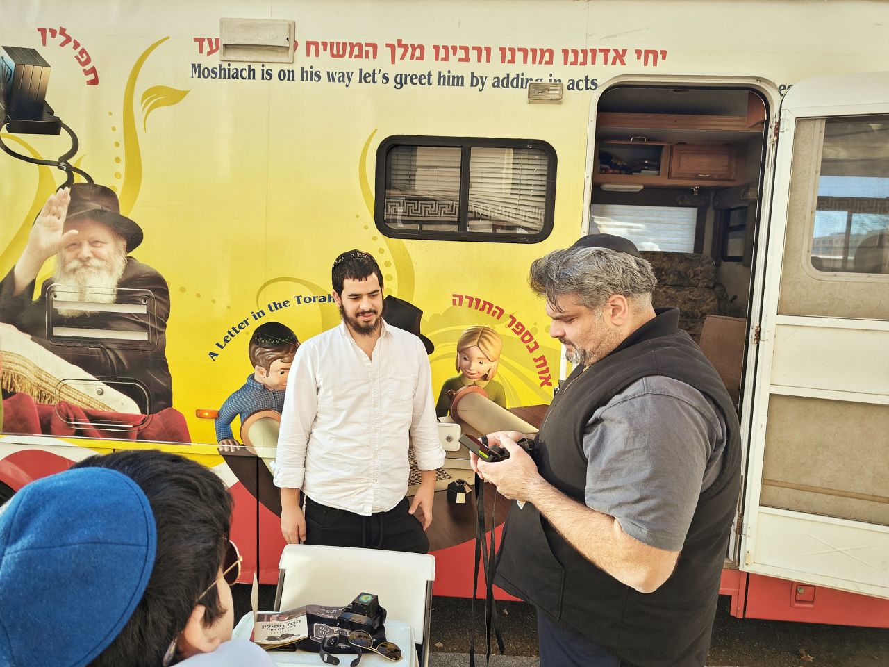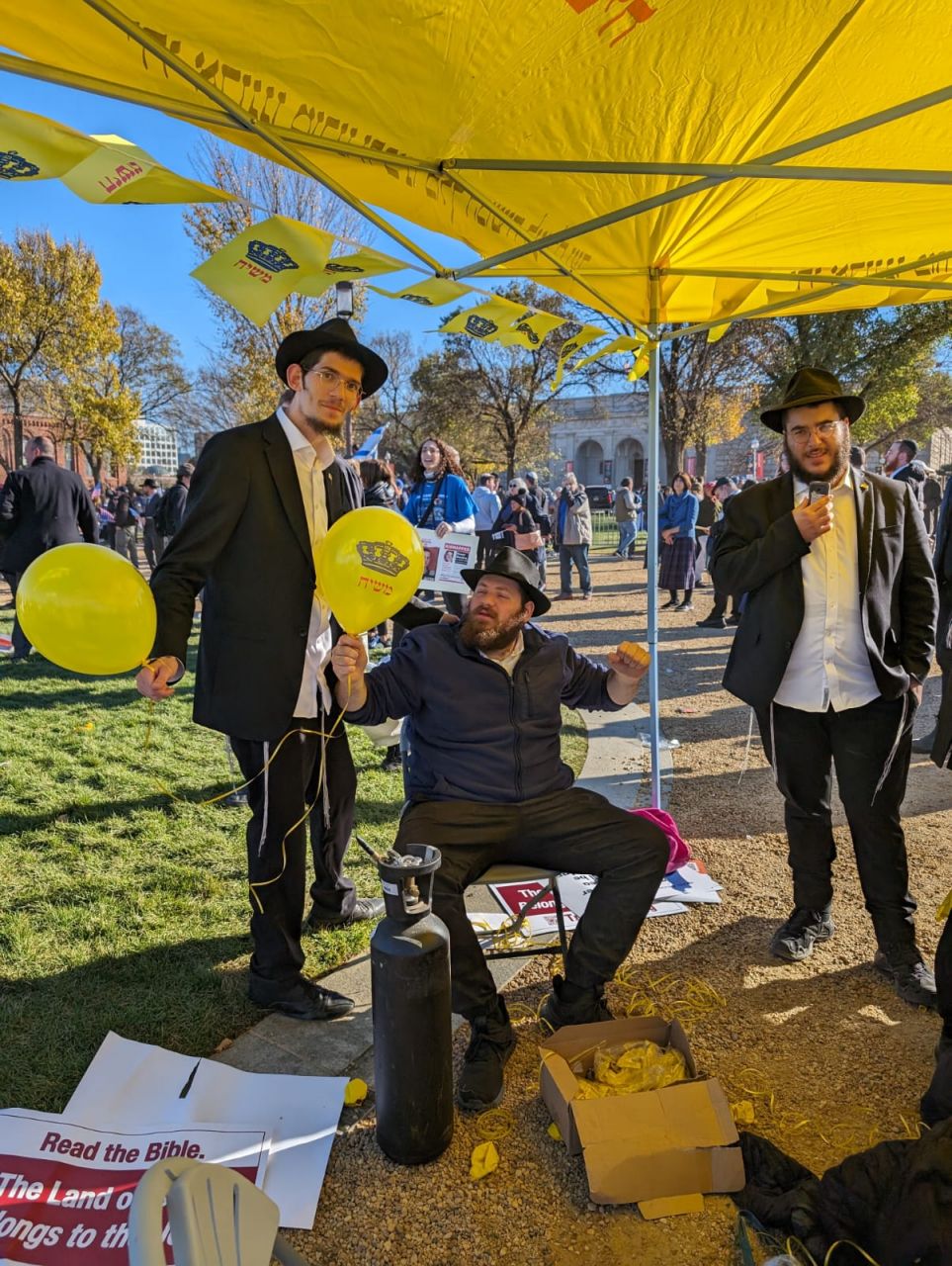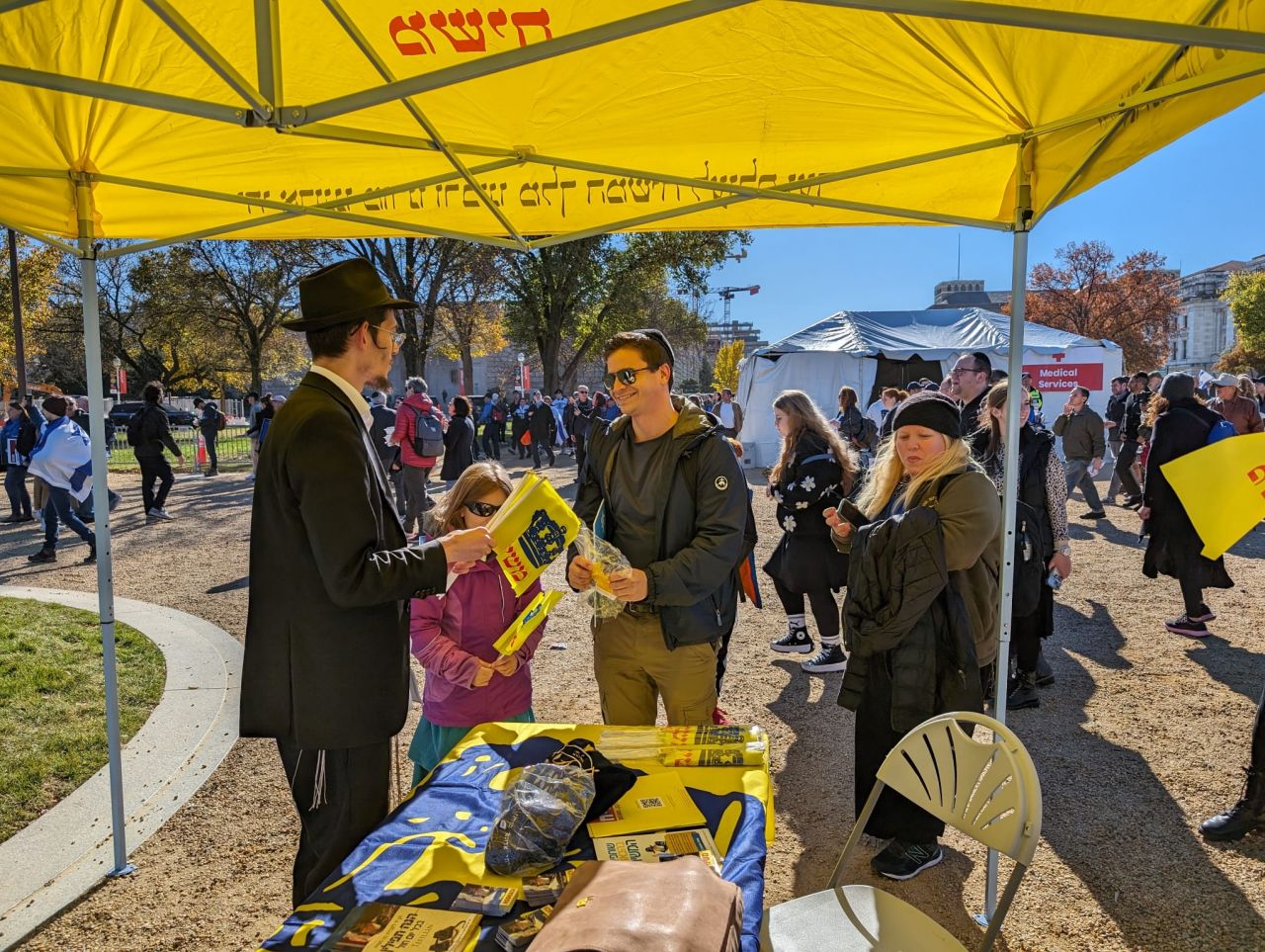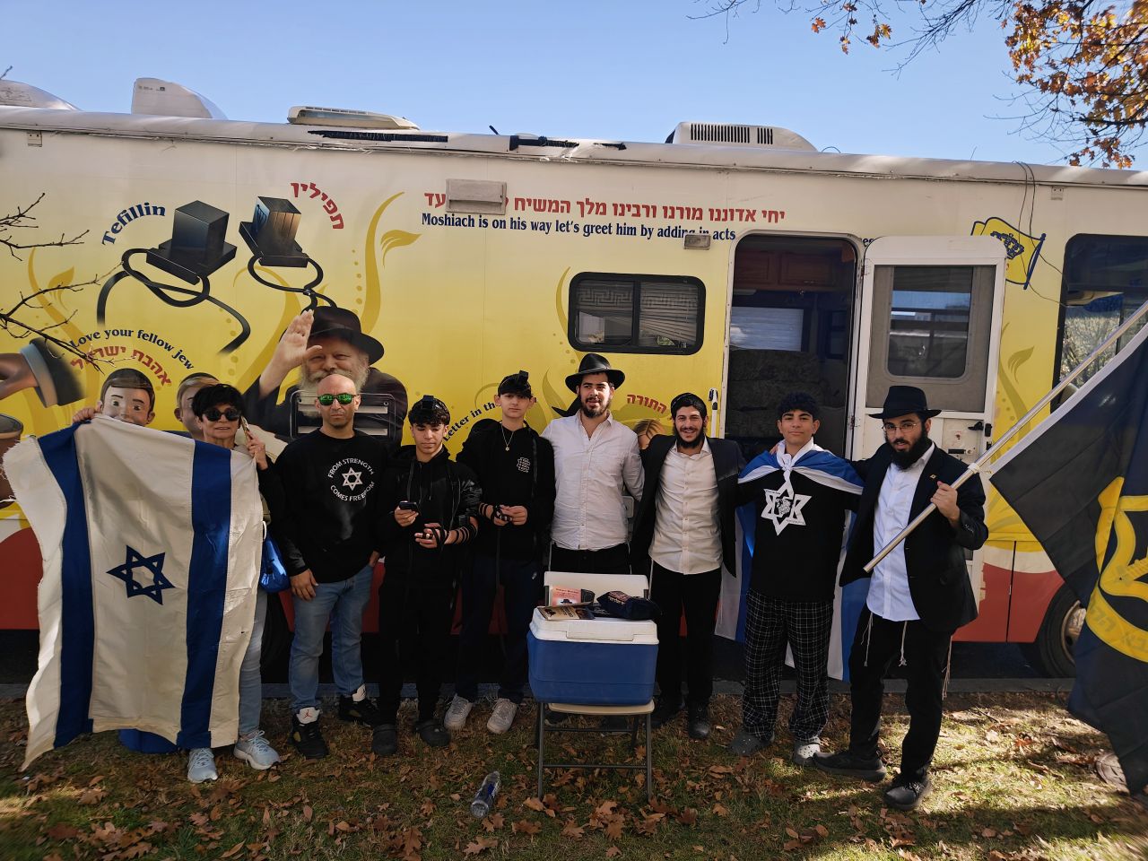 לצד מאות אלפי המפגינים, הגיעו למקום (איך לא..) היישר מניו יורק שלושה 'טנקים' שמתוכם זינקו עשרות בחורי ישיבה חב"דיים. המשימה - להניח לכמה שיותר יהודים תפילין, לחבר אותם לנקודה היהודית שלהם ולספר להם על הרבי מלך המשיח שליט"א ועל נבואתו באשר לגאולה הקרובה.