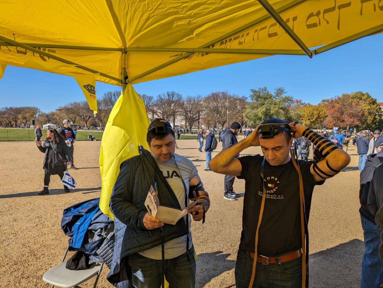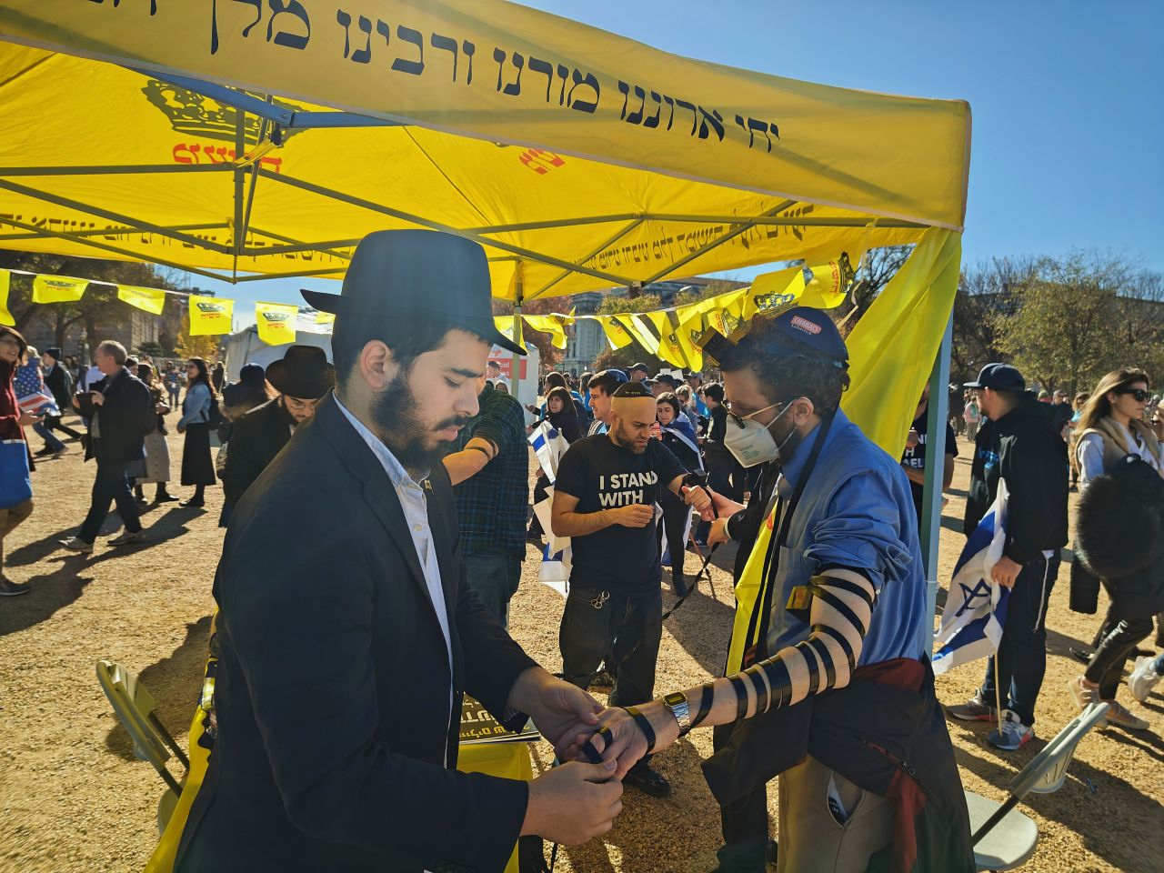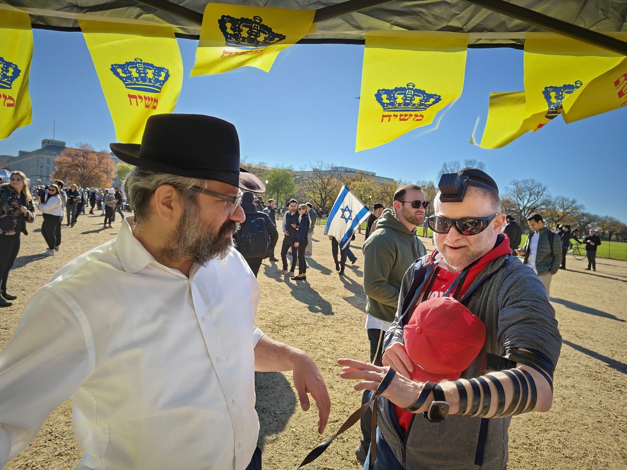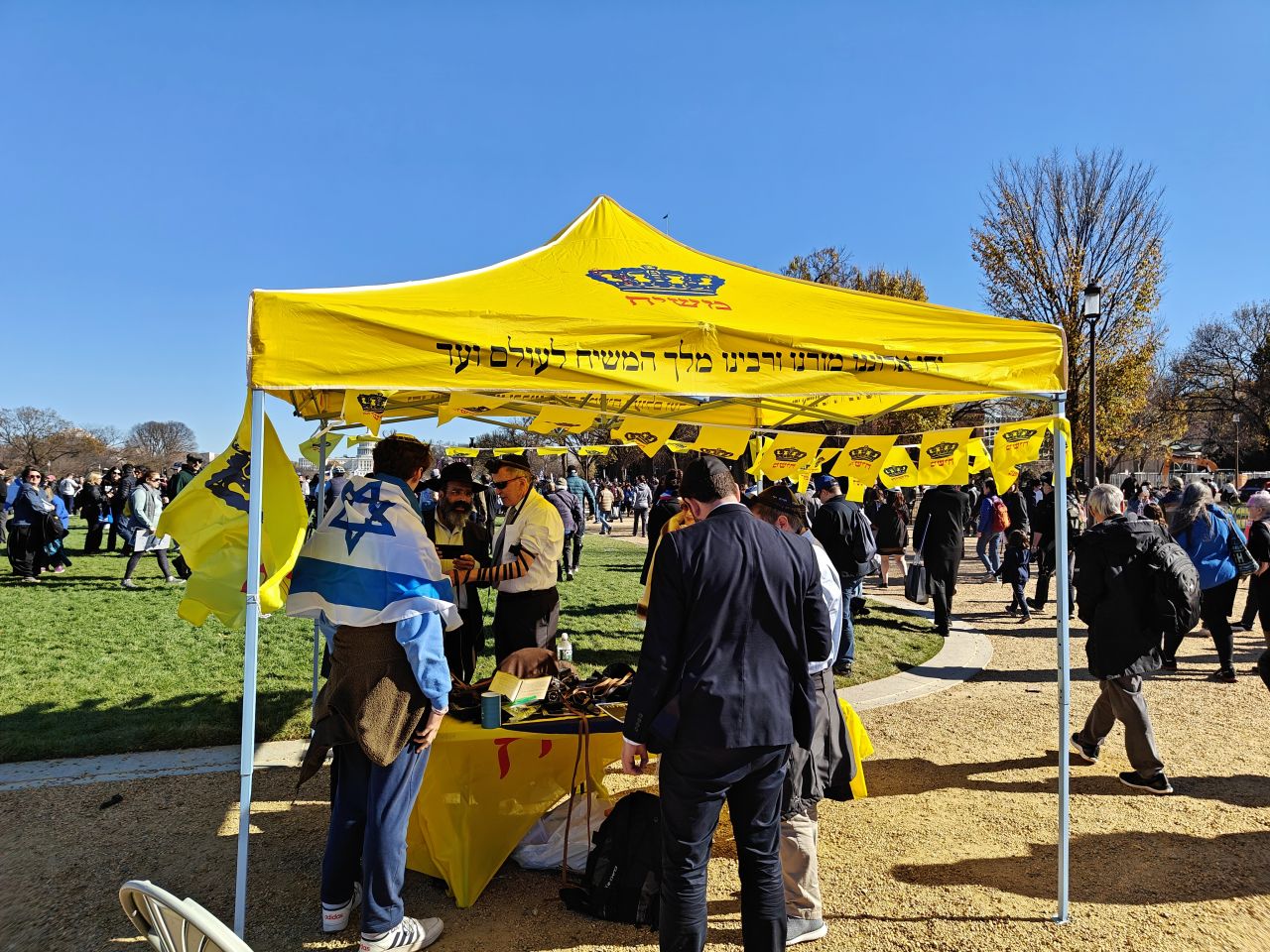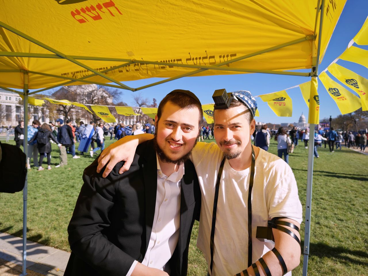 לצד מאות אלפי המפגינים, הגיעו למקום (איך לא..) היישר מניו יורק שלושה 'טנקים' שמתוכם זינקו עשרות בחורי ישיבה חב"דיים. המשימה - להניח לכמה שיותר יהודים תפילין, לחבר אותם לנקודה היהודית שלהם ולספר להם על הרבי מלך המשיח שליט"א ועל נבואתו באשר לגאולה הקרובה.