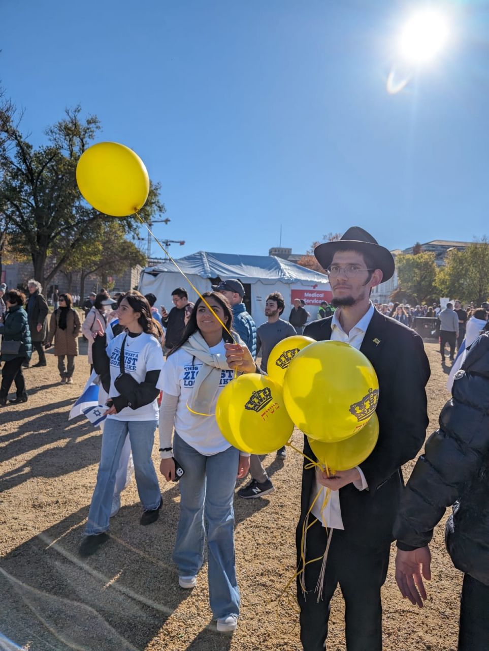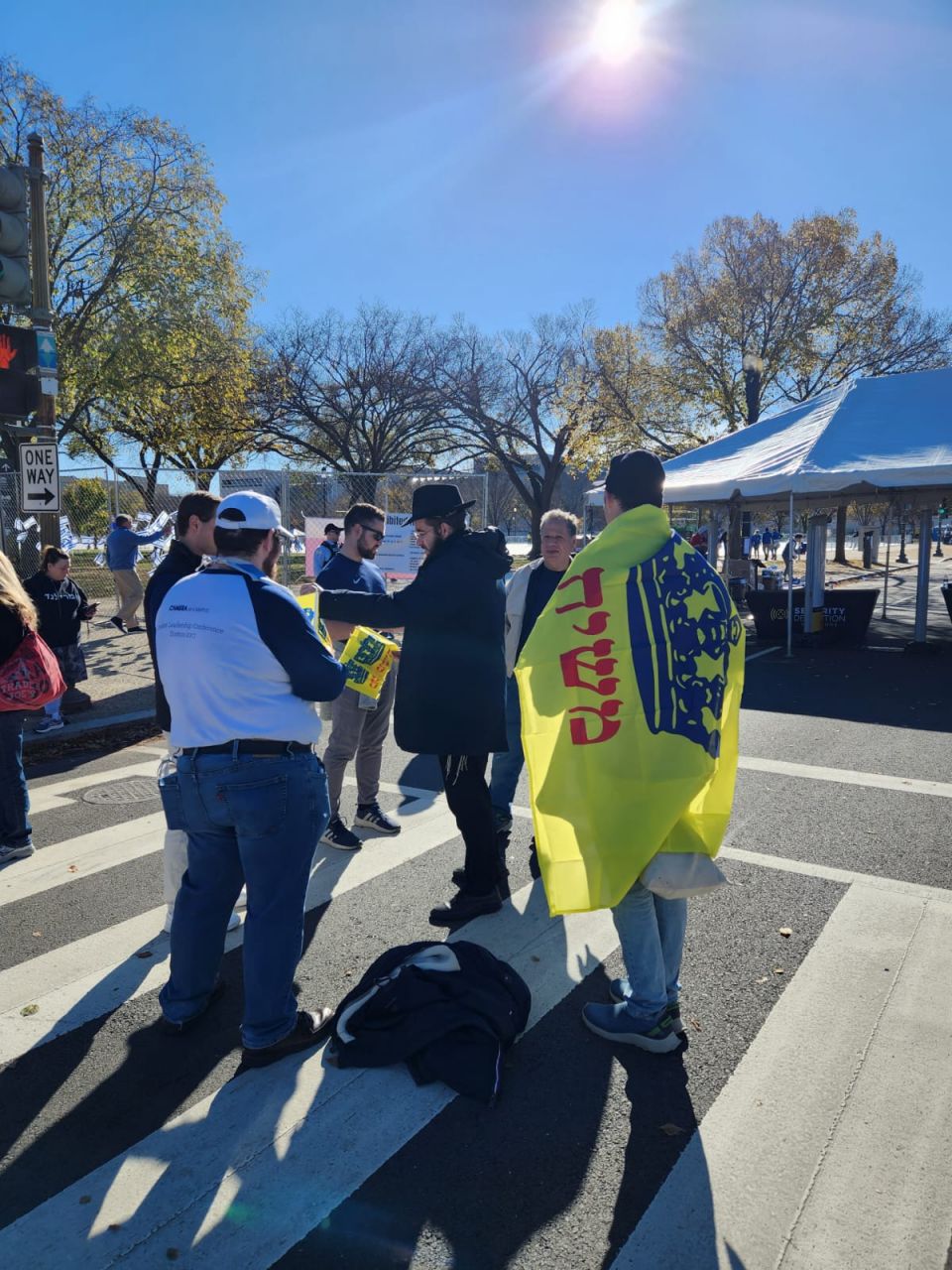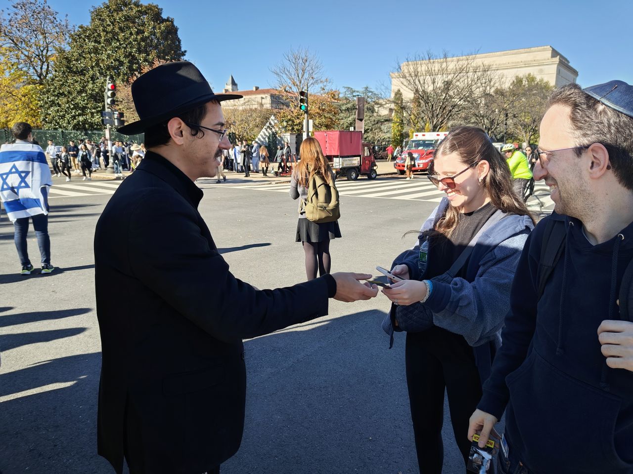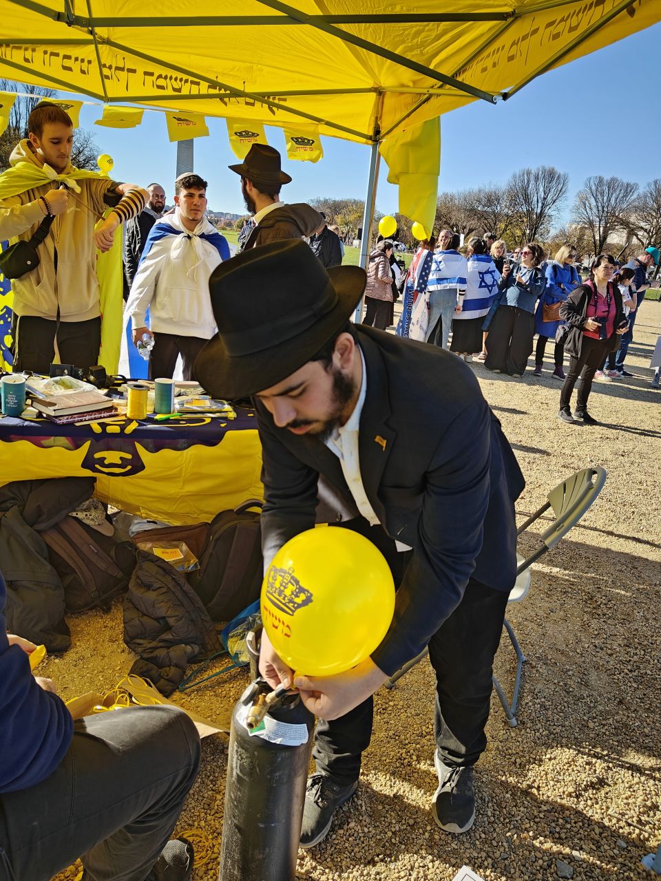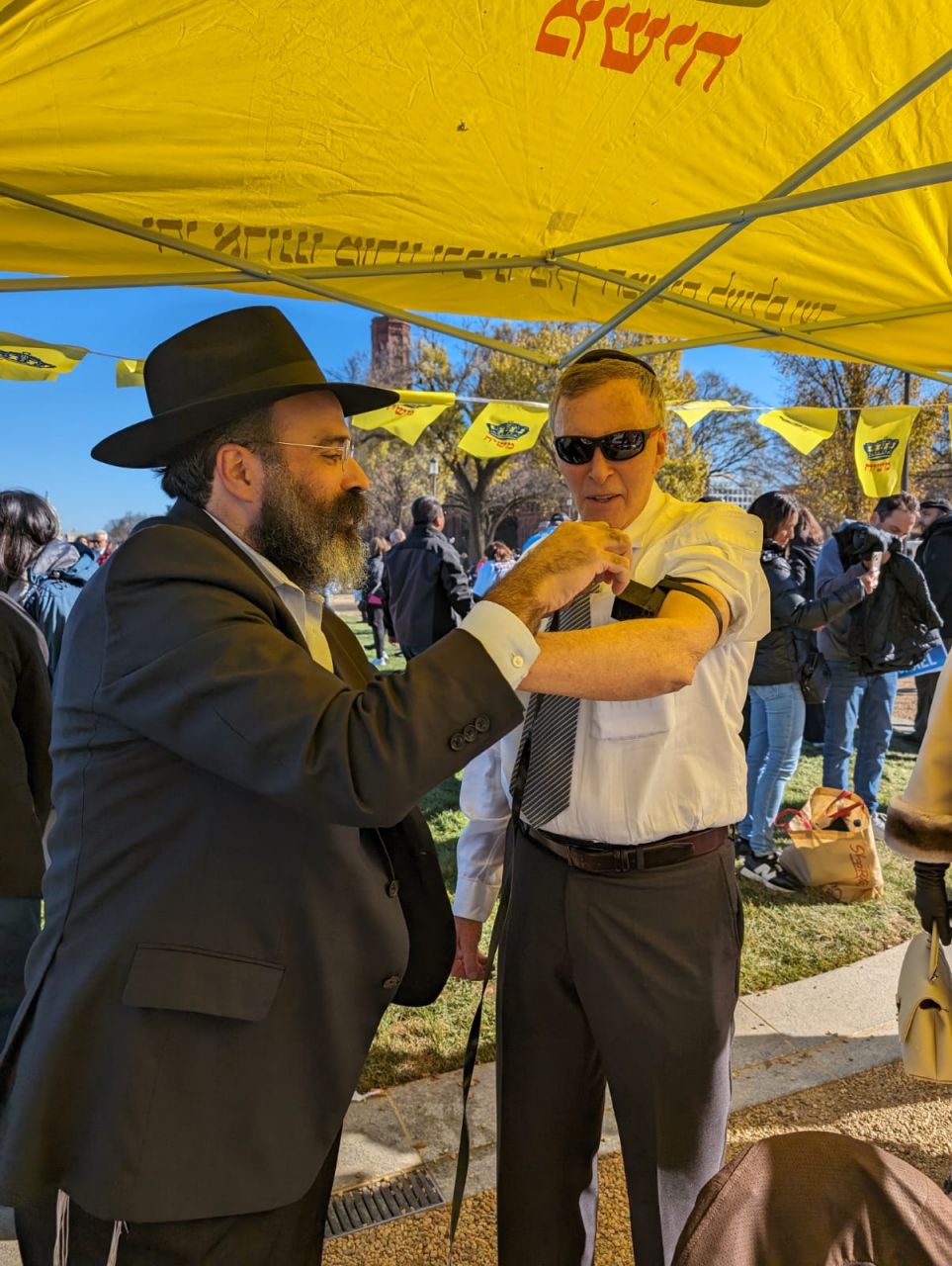 לצד מאות אלפי המפגינים, הגיעו למקום (איך לא..) היישר מניו יורק שלושה 'טנקים' שמתוכם זינקו עשרות בחורי ישיבה חב"דיים. המשימה - להניח לכמה שיותר יהודים תפילין, לחבר אותם לנקודה היהודית שלהם ולספר להם על הרבי מלך המשיח שליט"א ועל נבואתו באשר לגאולה הקרובה.
