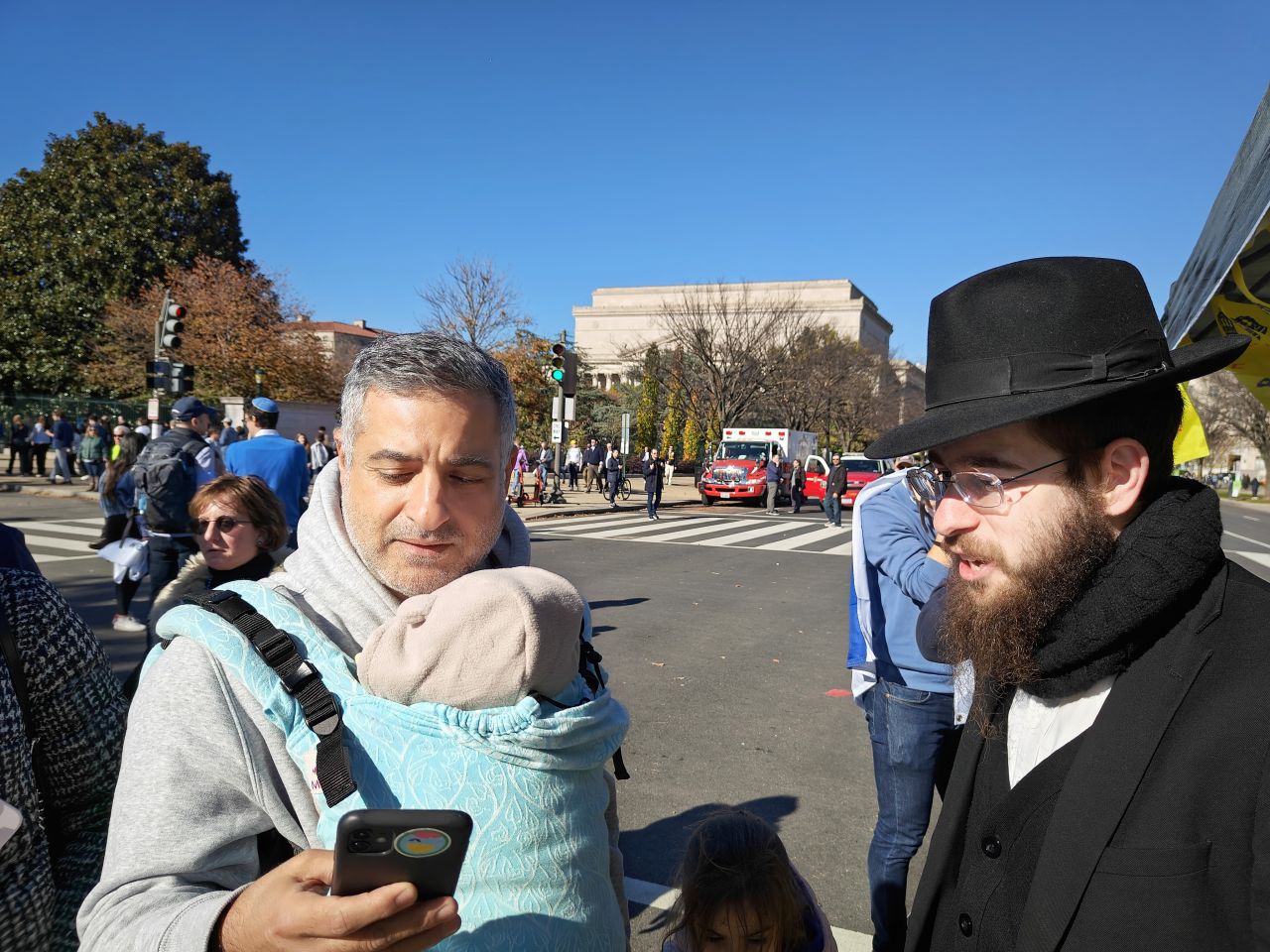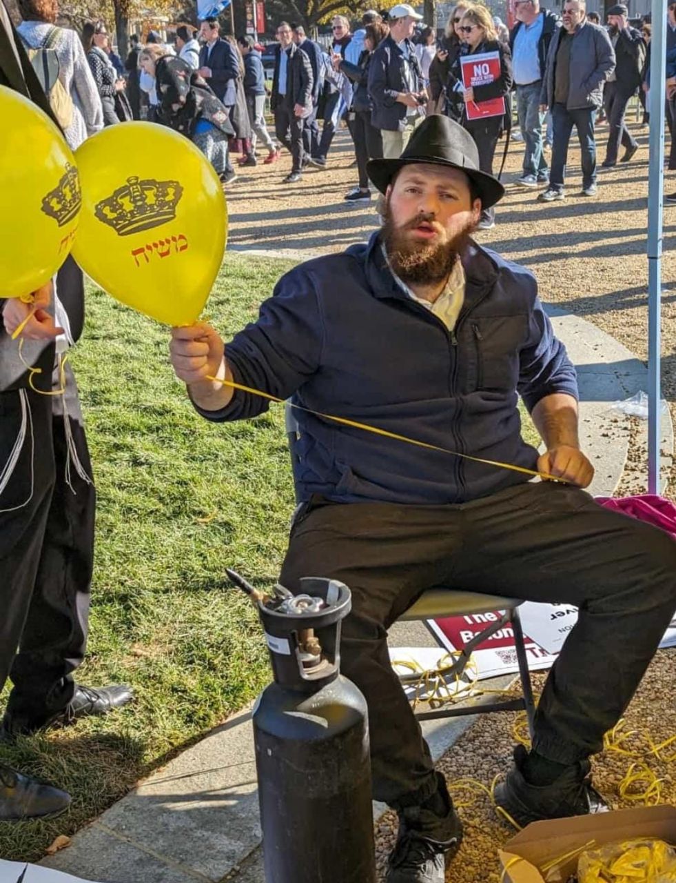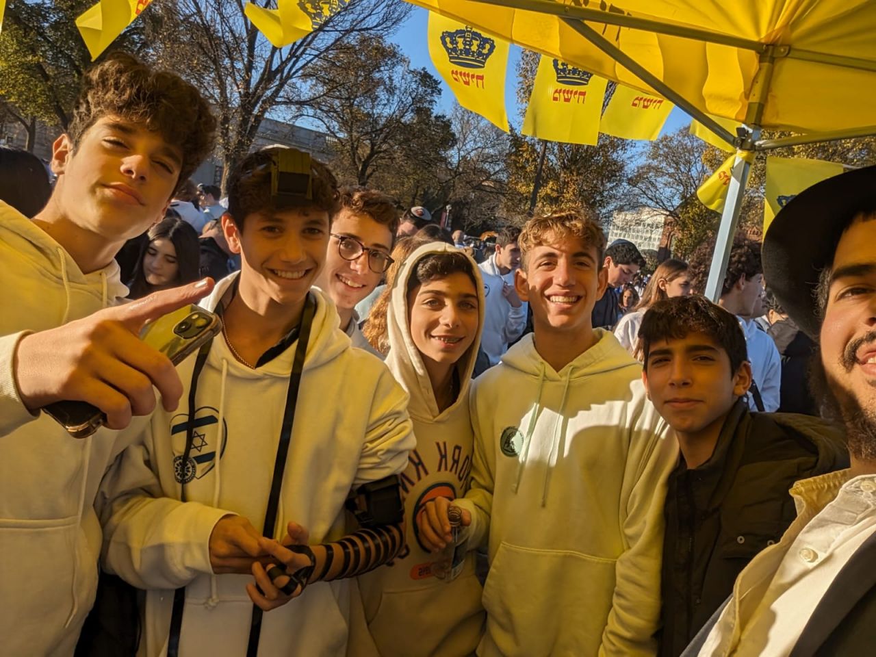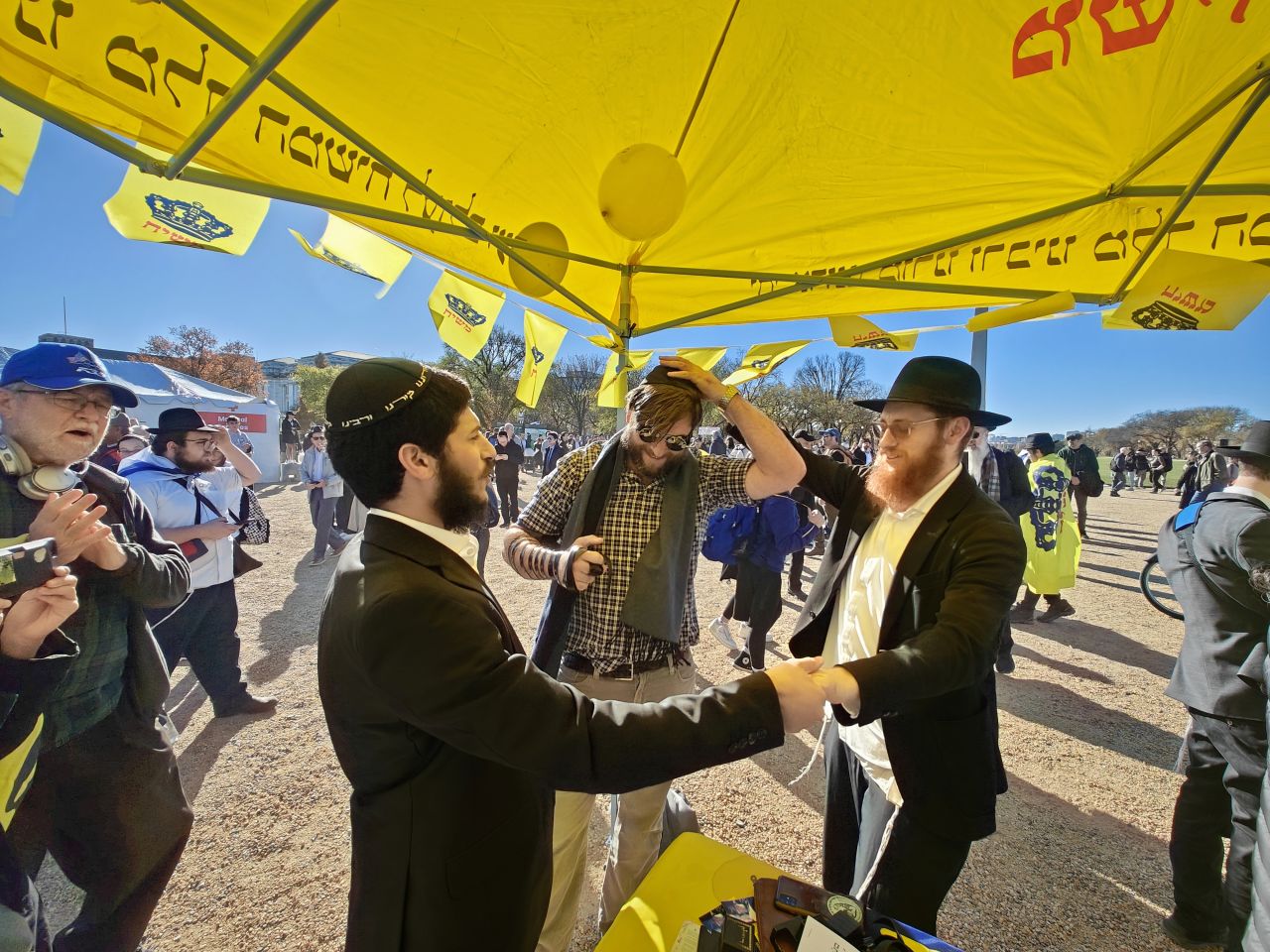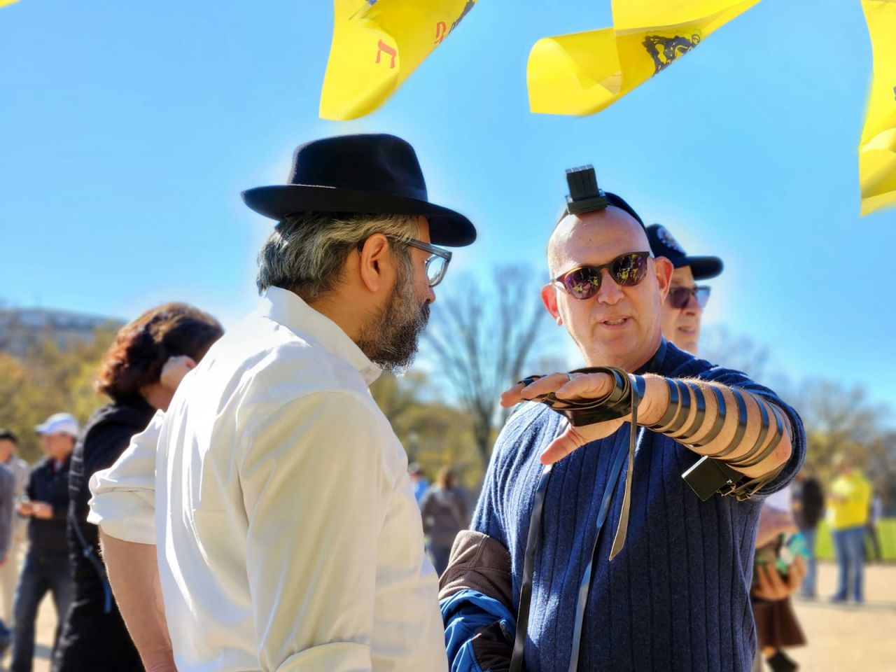 לצד מאות אלפי המפגינים, הגיעו למקום (איך לא..) היישר מניו יורק שלושה 'טנקים' שמתוכם זינקו עשרות בחורי ישיבה חב"דיים. המשימה - להניח לכמה שיותר יהודים תפילין, לחבר אותם לנקודה היהודית שלהם ולספר להם על הרבי מלך המשיח שליט"א ועל נבואתו באשר לגאולה הקרובה.