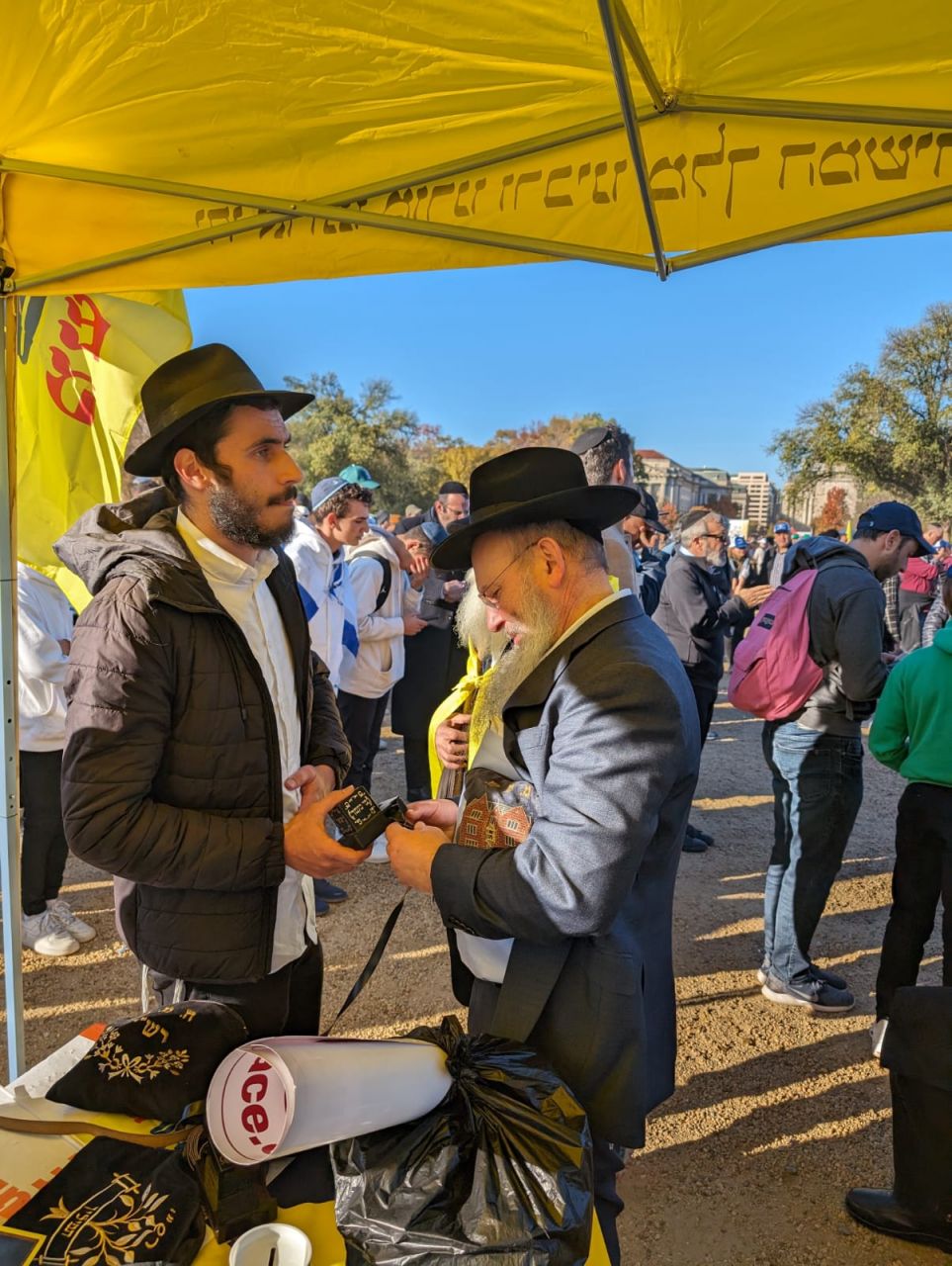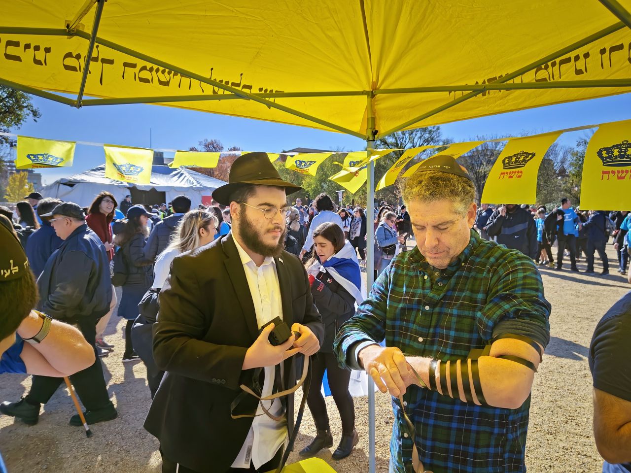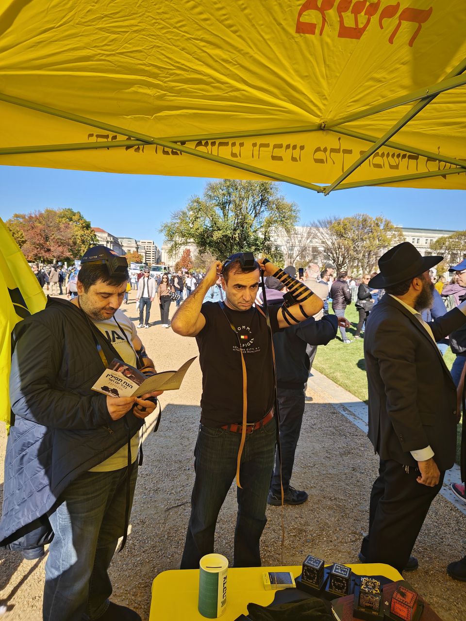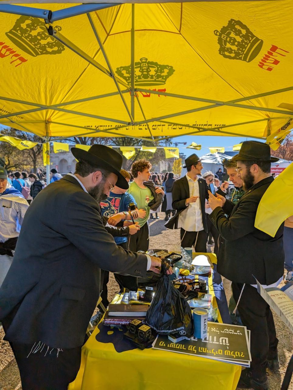הלהט האדיר ליהדות עטף את המפגינים הרבים, והם עטו על דוכני התפילין. בנוסף להנחות התפילין הרבות, הזמינו התמימים את הציבור שצבא על הדוכן, לכתוב מכתבים לרבי מלך המשיח שליט"א באמצעות ה"אגרות קודש". רבים מהם כתבו וקיבלו תשובות מפעימות.