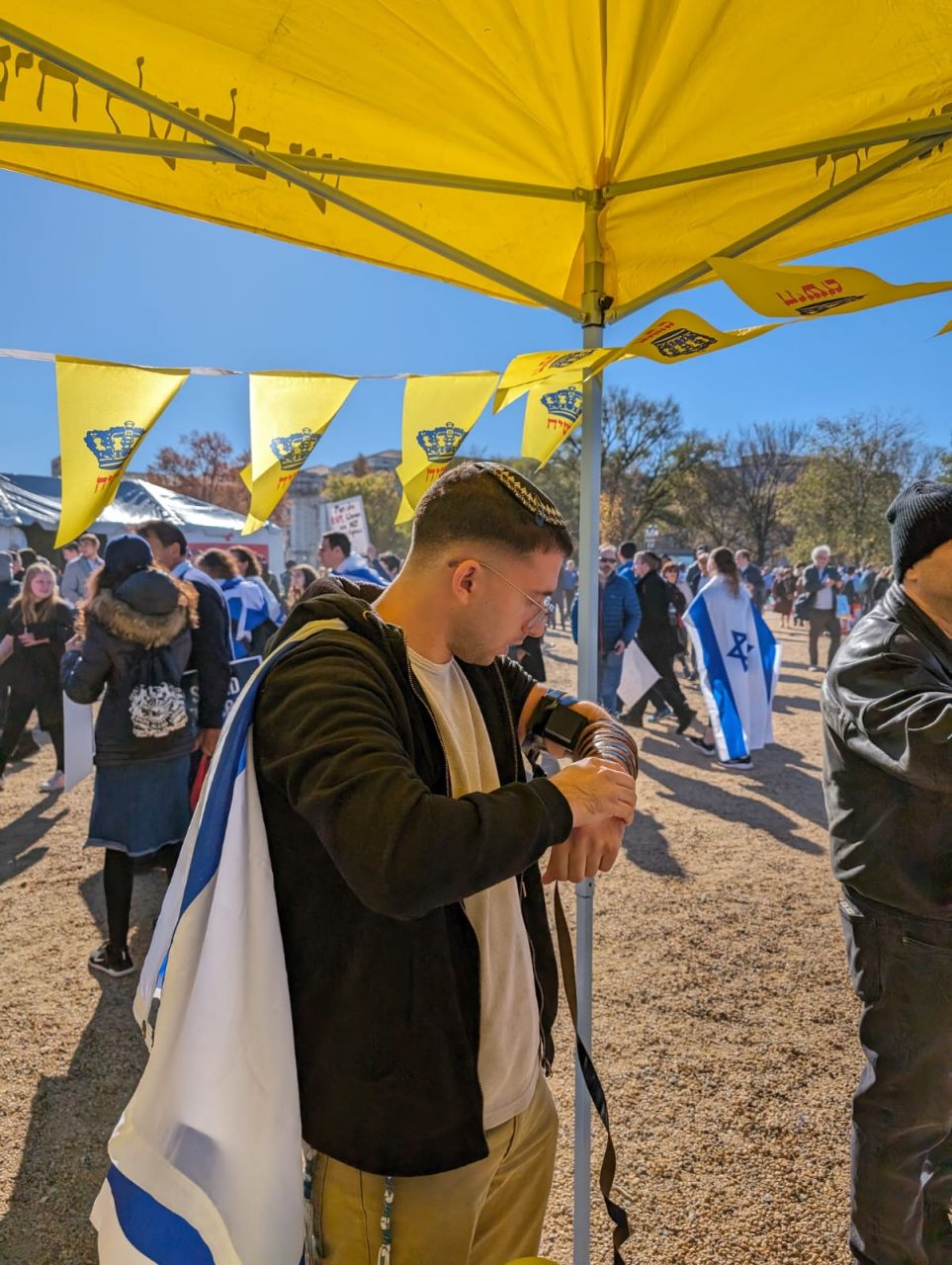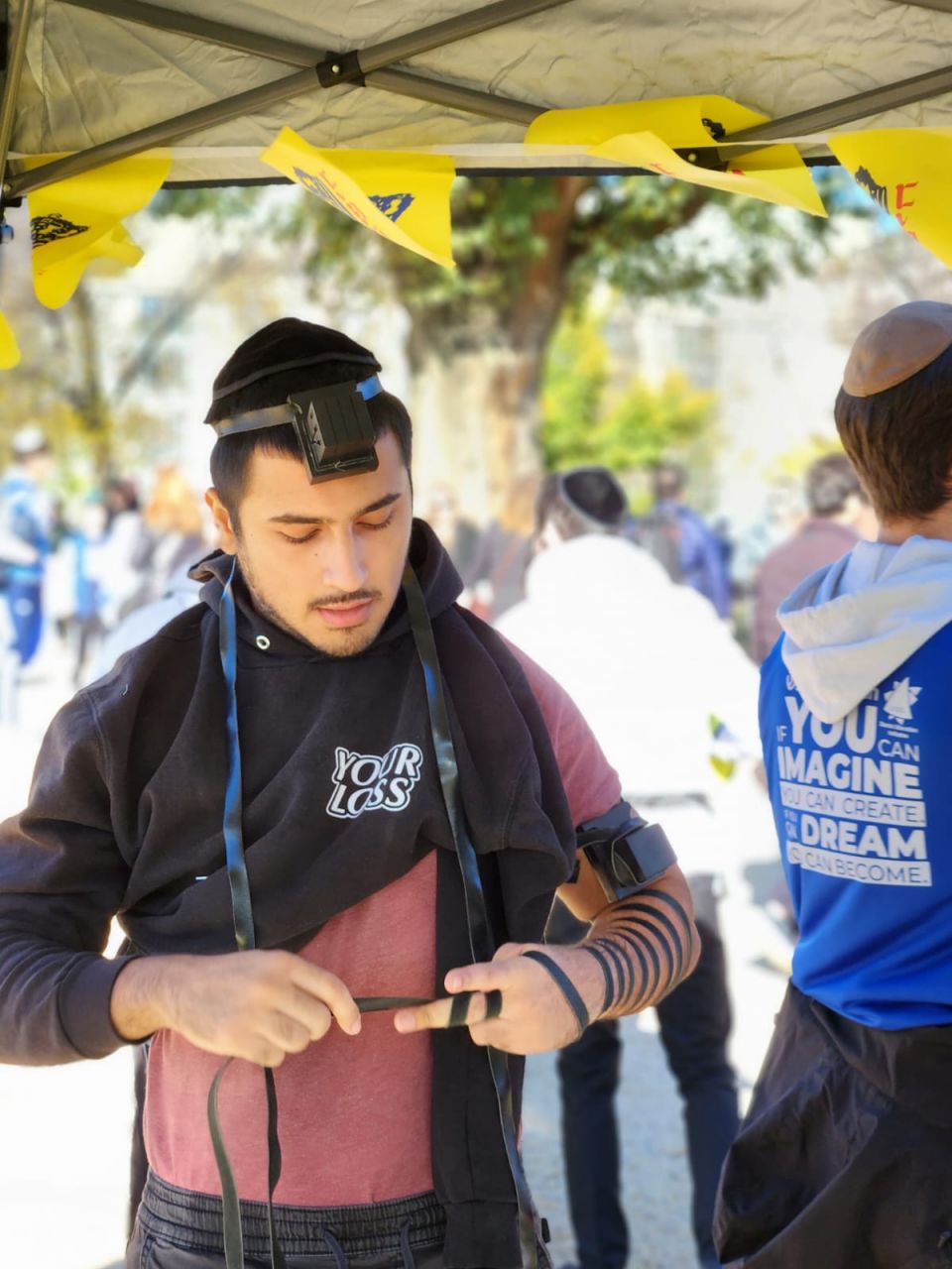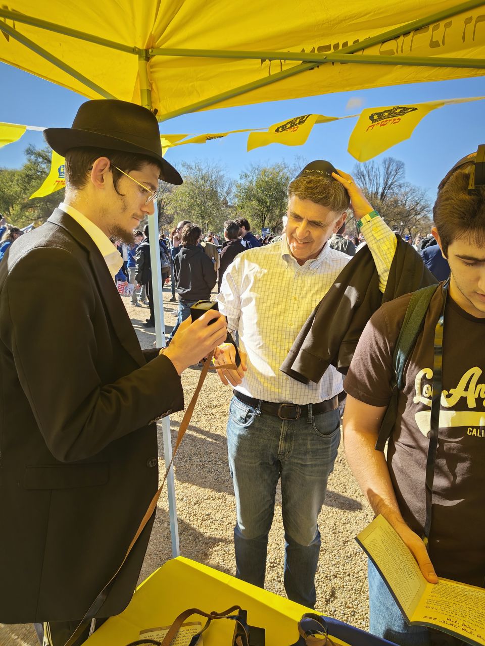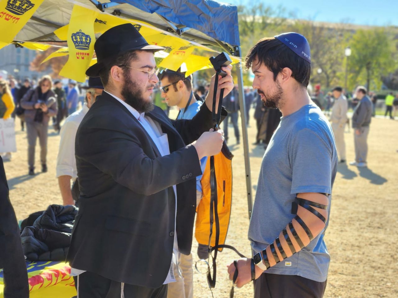 הלהט האדיר ליהדות עטף את המפגינים הרבים, והם עטו על דוכני התפילין. בנוסף להנחות התפילין הרבות, הזמינו התמימים את הציבור שצבא על הדוכן, לכתוב מכתבים לרבי מלך המשיח שליט"א באמצעות ה"אגרות קודש". רבים מהם כתבו וקיבלו תשובות מפעימות.