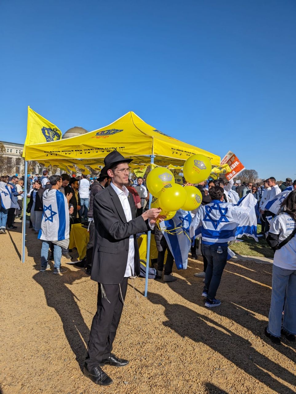 מפגן תמיכה שכמותו לא נראה זמן רב נערך הערב בוושינגטון די סי, מול הבית הלבן. מאות אלפים - ההערכות נעות עד 300,000 - הגיעו להביע את תמיכתם בעם ישראל שנמצא כעת במלחמה.