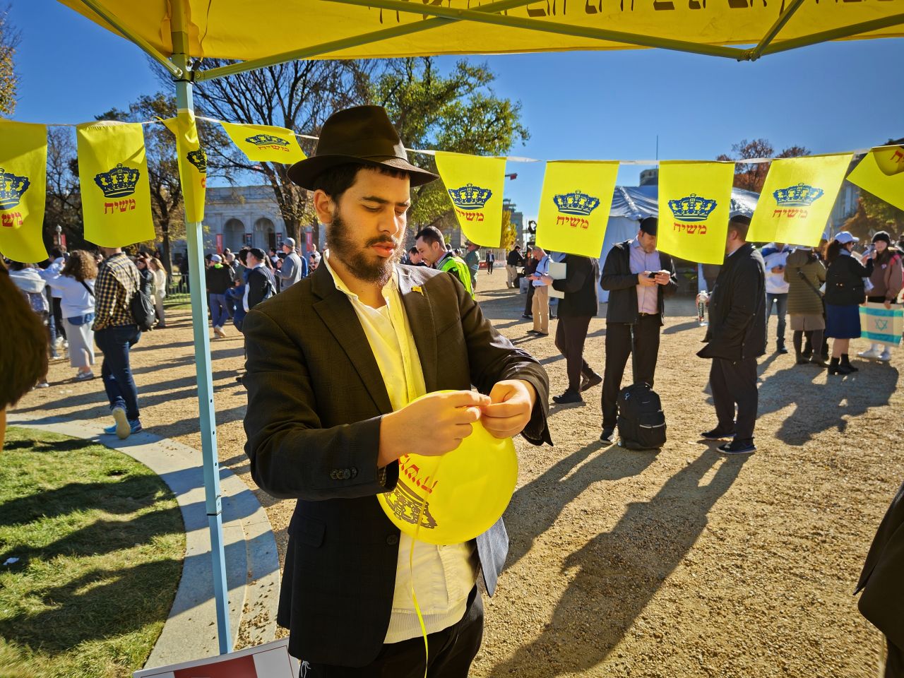 נושא פרסום בשורת הגאולה לא עמד בצד לרגע, ודגלי משיח רבים חולקו לציבור, לצד דגלי יד קטנים. ליד הדוכנים עמדו בלוני הליום, ומאות בלוני 'משיח' נופחו וחולקו לילדים הרבים שהגיעו להפגנה.