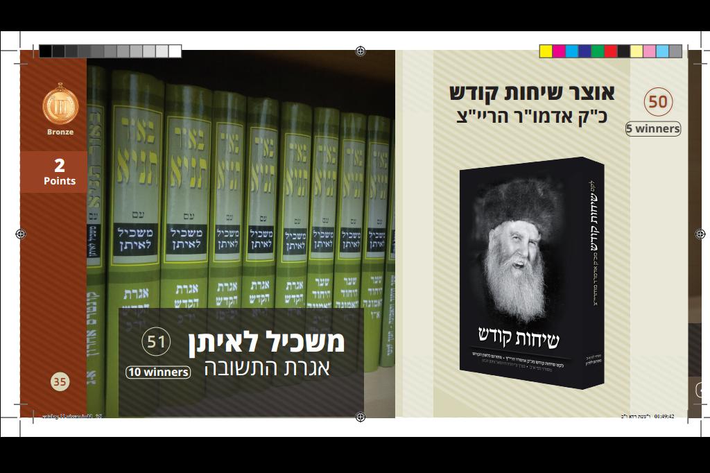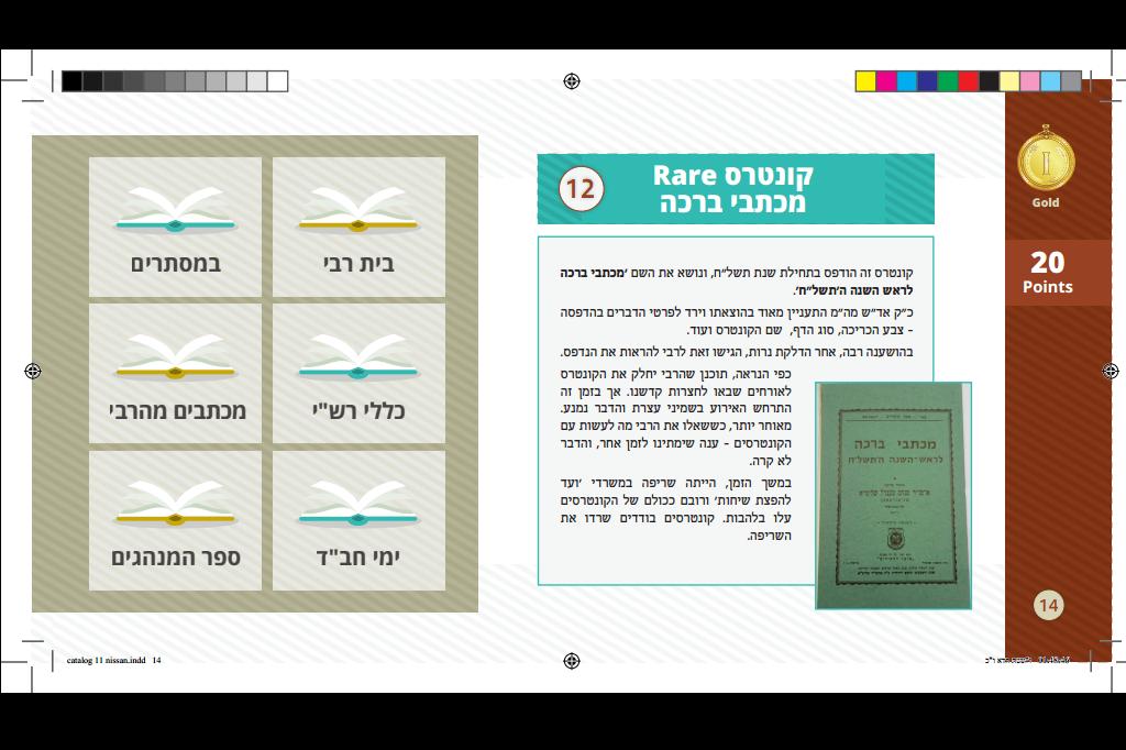 עם פתיחת המבצע התפרסם הקטלוג המושקע עליו עבדו במשרדי את"ה העולמי שבועות ארוכים, ובו עשרות הגרלות על מאות פרסים יקרי ערך: ביניהם פריטים נדירים מידו הקדושה של כ"ק אדמו"ר שליט"א מלך המשיח, עשרות ספרים וסטים, ועוד הגרלות שונות • לצפיה בגליון