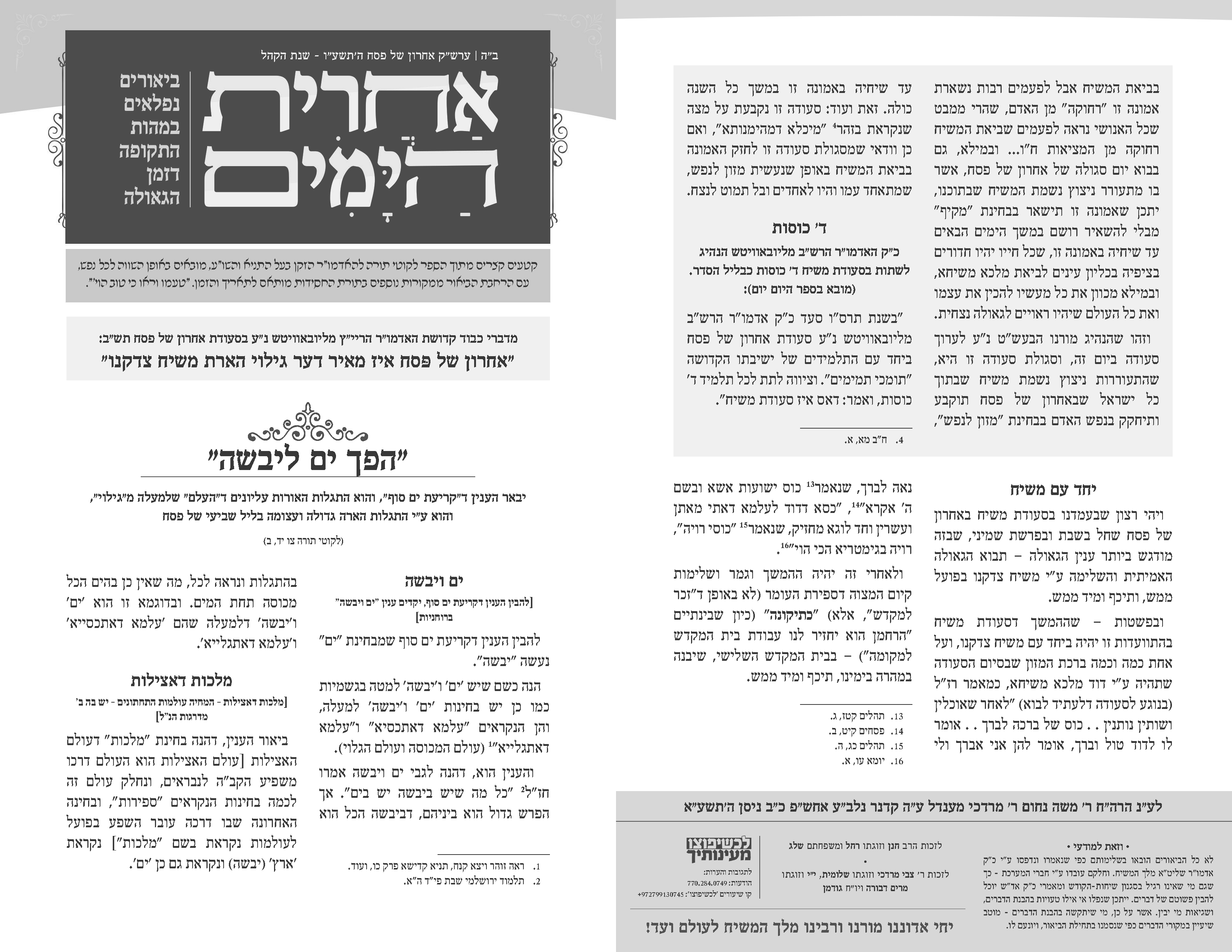 ביוזמת מספר תמימים, הופק עלון תקציר בנושא פסח, גאולה, ושביעי של פסח המיועד לציבור החרדי בשכונות ניו יורק. חלק מהחומר חולק כבר בבתי בבתי הכנסת בבארא פארק, ויחולק עוד במהלך ה"תהלוכה".