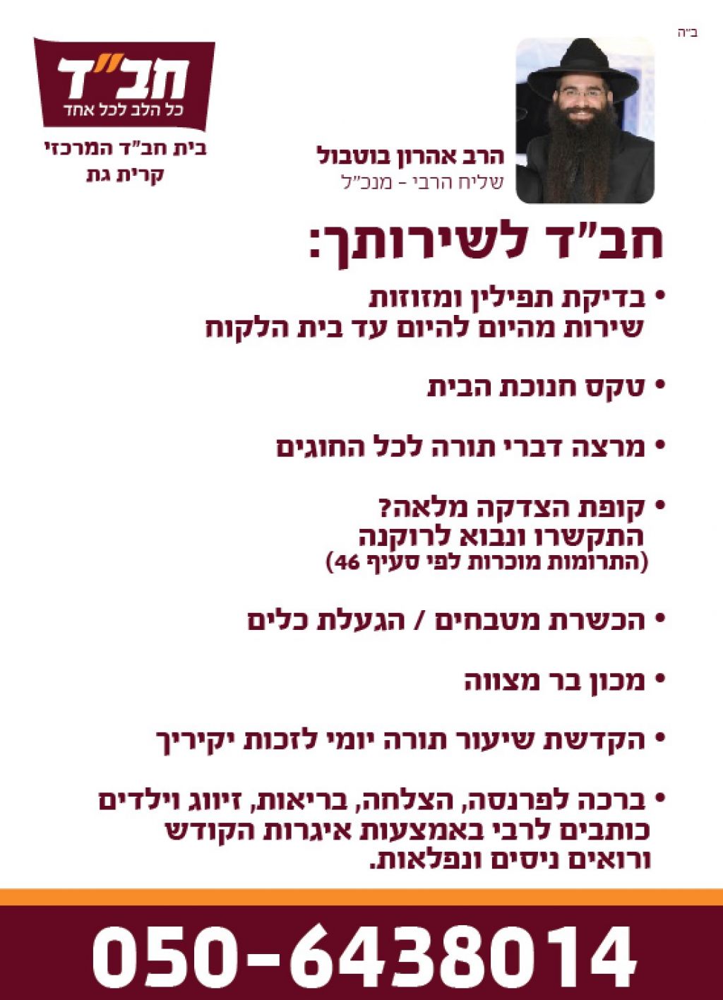 חב"ד לשירותך: בדיקת תפילין ומזוזות, הכשרת מטבחים, ועוד נערך קמפיין ע"י פעילי בית חב"ד ברחבי העיר ובעיתונות המקומית