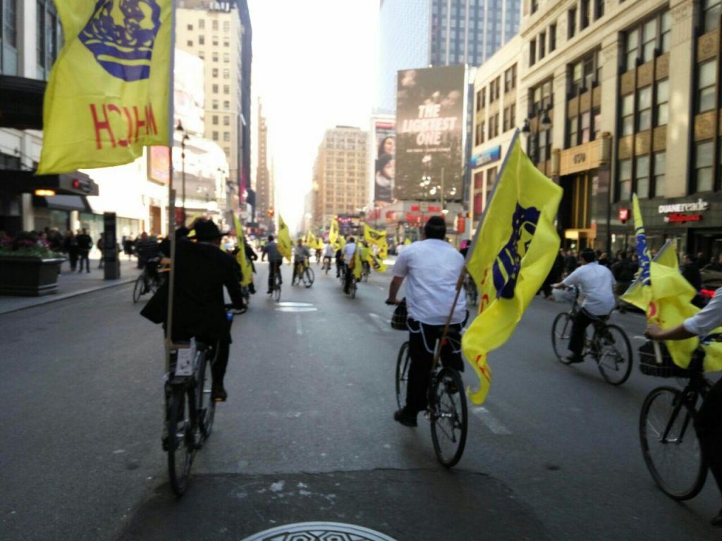 ביום ג' (חול המועד) התקיימה שיירת אופניים לקבלת פני משיח צדקנו ע"י תלמידי ה'קבוצה' כשהתמימים האורחים מצטרפים לשיירה. השיירה יצאה מבית חיינו 770 לפארק במנהטן ומשם לטיימס סקוור, מהטיימס סקוור המשיכו התמימים לנסיעה על הטיילת המקומית.