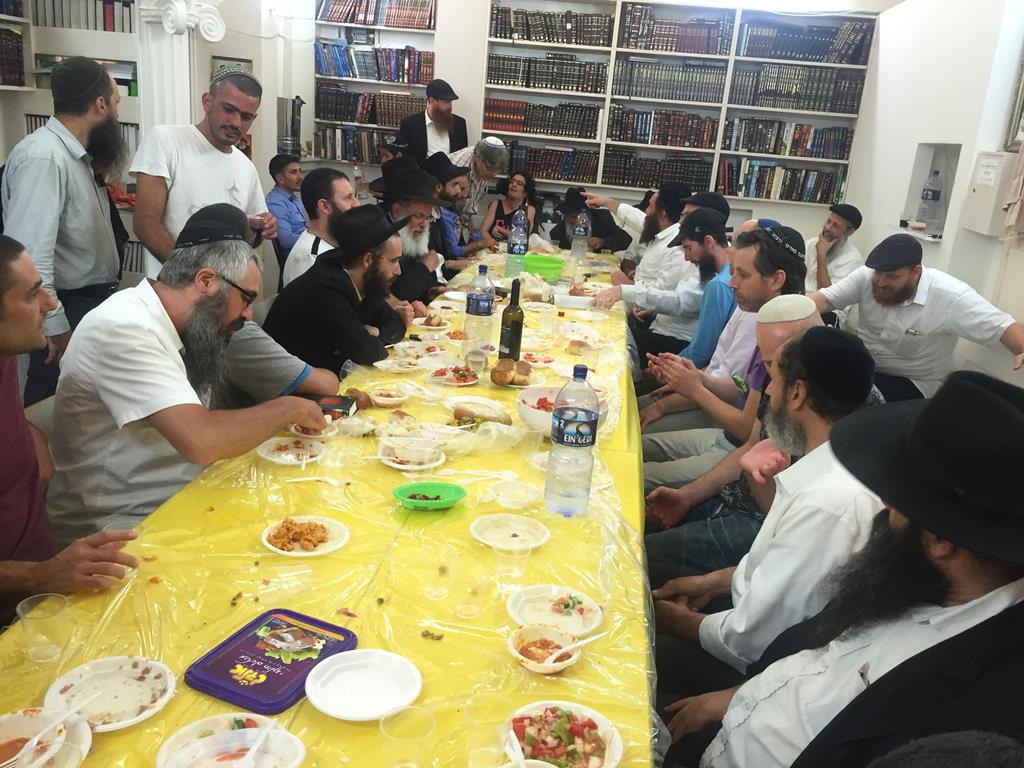התועדות חסידית וסוחפת במרכז ״מודעות״ ליובאוויטש עם הרב זמרוני ציק והרב מרדכי רוטנשטיין על הפעולות הנמשכות והתנופה של משיח בכיכר בחג הגאולה יב- יג תמוז.