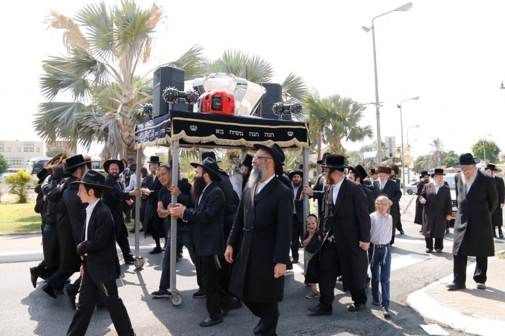 לאחר סיום כתיבת האותיות והגבהת התורה, החלה התהלוכה המפוארת ברחבי כפר חב"ד, ובראשה טנק המבצעים של ניידות חב"ד בראשות הרב דוד נחשון.