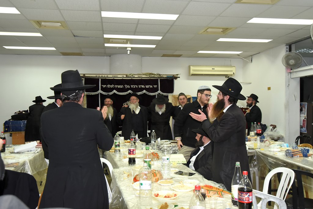 הרב זמרוני דיבר על יחודו של כ' כסלו, המשכת האור יותר למטה המחייבת להמשיכו ממקור נעלה יותר. האוירה התחממה באמירת לחיים ובשירה.