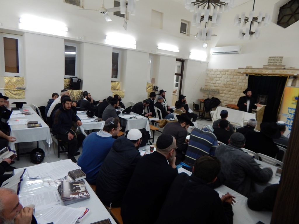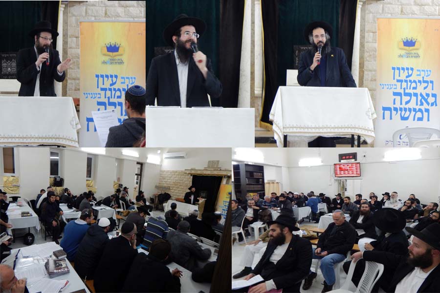 הערב נפתח בתפלת ערבית חגיגית בבית הכנסת "אהבת שלום" בשעה 19:30, כאשר מיד לאחר מכן התיישבו כולם לשמיעת השיעורים המיוחדים על הגאולה מפי מרצי בית הספר לתורת הגאולה של מרכז ההפצה - ממש.