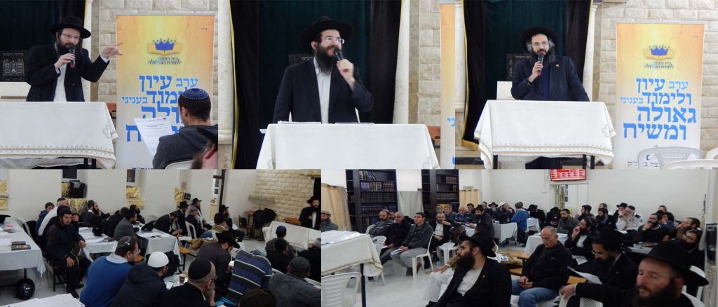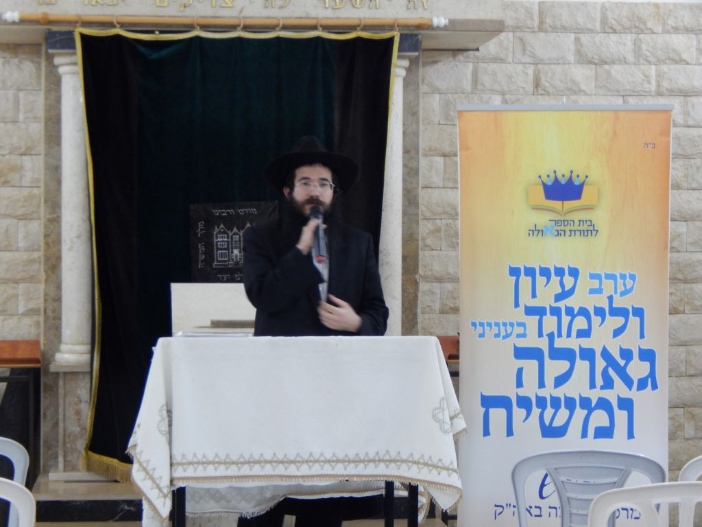 את השיעור הראשון פתח הרב משה קורנוויץ, ר"מ ומשפיע בישיבת חב"ד נצרת עלית, בסקירה על "מלחמת גוג ומגוג" מתוך דברי הנביאים יחזקאל וזכריה, ולאור ביאוריהם של גדולי המפרשים ורבותינו נשיאנו. לאחריו נמסר שיעור מרתק מאת הרב שמעון ויצהנדלר ראש ישיבת תות"ל ראשל"צ, השיעור התמקד בדמותו של הגואל בחז"ל, בהלכה, ובתורתו של הרבי מלך המשיח שליט"א ,