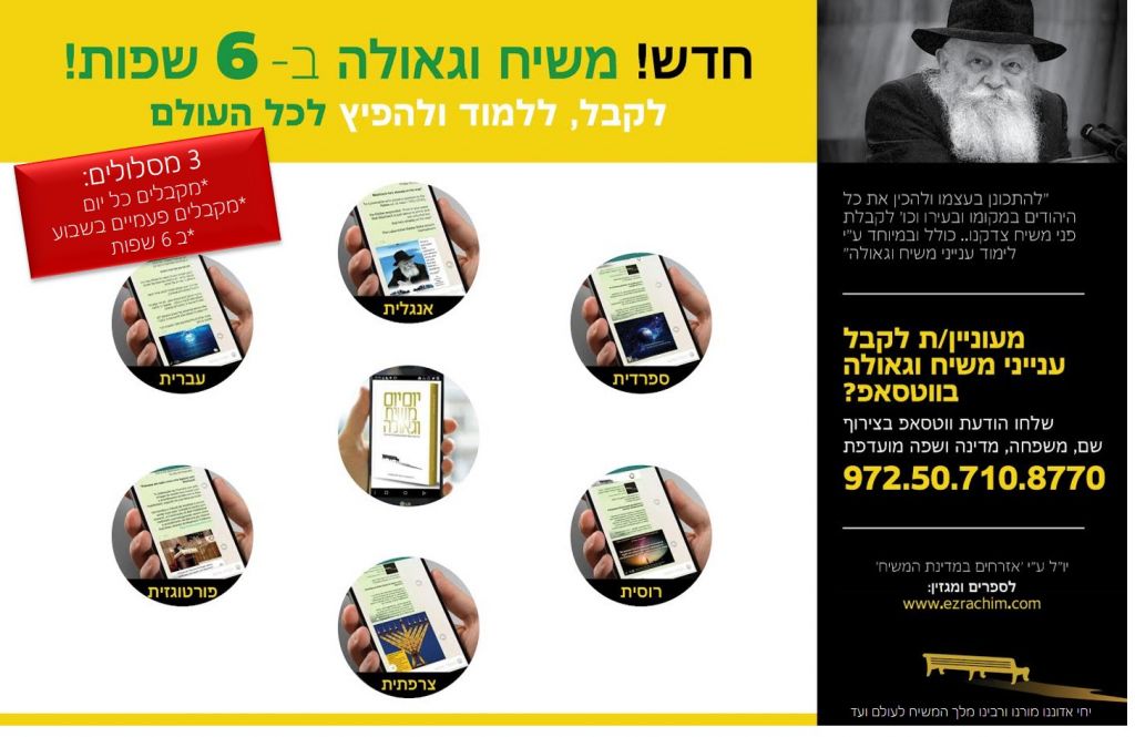כלי חדש ומוצלח ביותר להפצת לימוד ענייני משיח וגאולה שכידוע הלימוד בעניינים אלו 'היא הדרך הישרה לגאולה'.