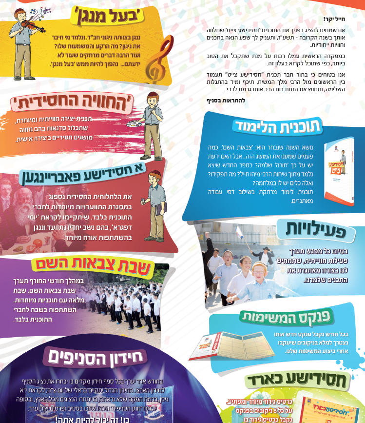 · בחוג ישנם הרבה חידושים, כל ילד מקבל ספר מתנה שממנו קוראים ולומדים במשך השנה את הנושא של אותה השנה – והשנה הנושא הוא: סיפורי צדיקים ועבודת המידות.