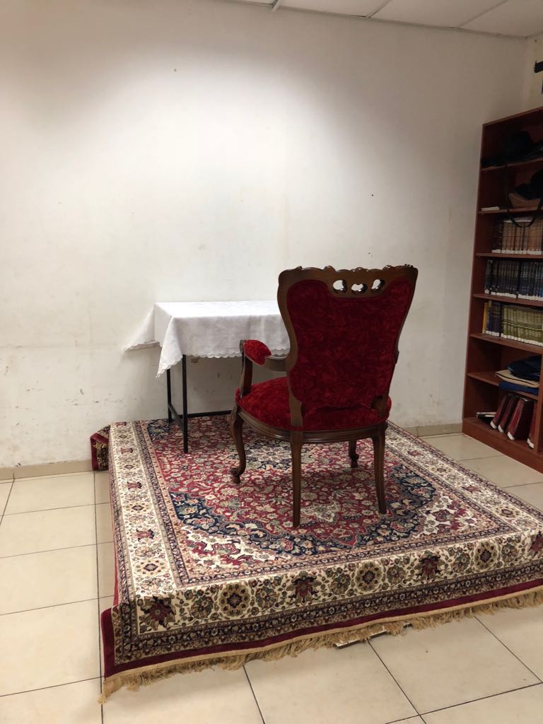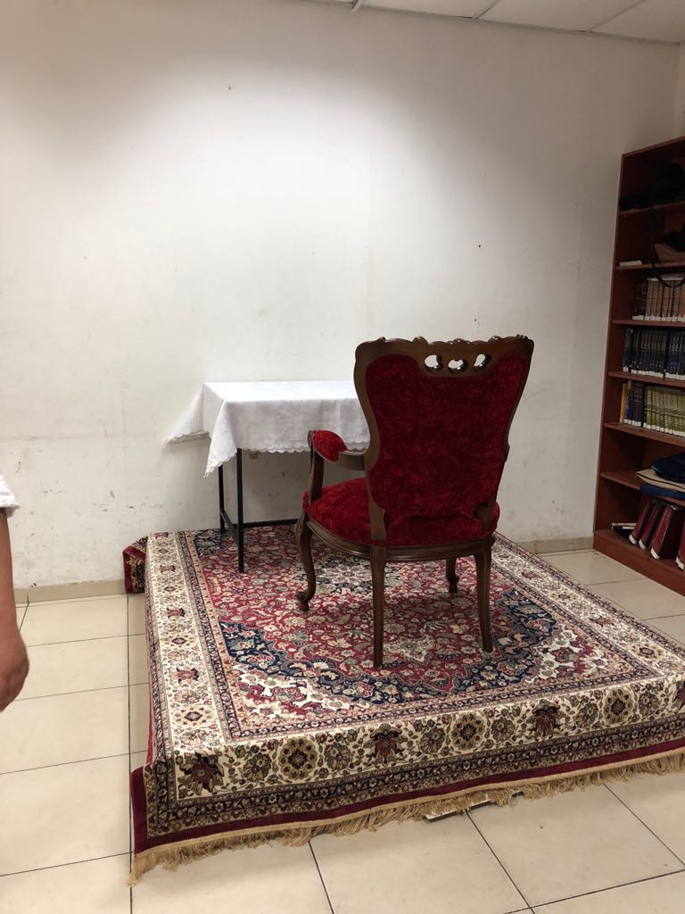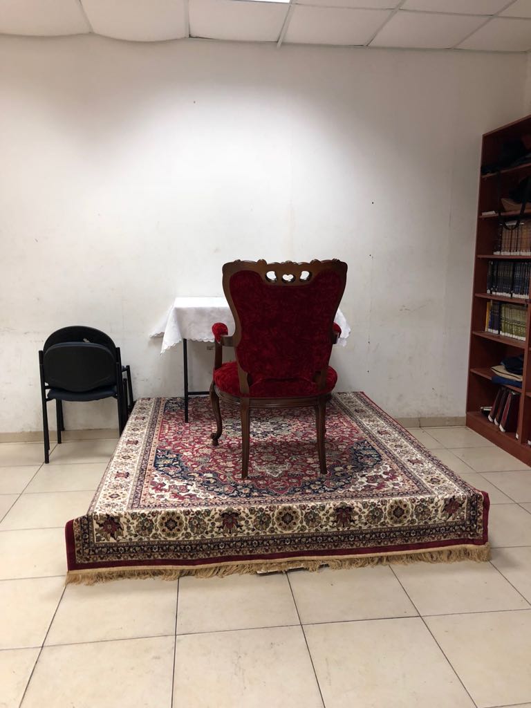 השבוע חנכו את המקום המיוחד עם כיסא הדומה לכיסא המלכותי של הרבי שליט"א ב770, עם בימה המכוסה בשטיח מיוחד ועליו שולחן עם מפה לבנה כיאה למקומו של מלך המשיח.