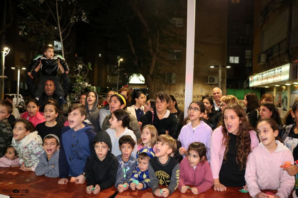המסיבה התקיימה ברחבת בית משיח במרכז המסחר השכונתי ברחוב הנביאים 3 בהשתתפות כ150 הורים וילדים כ"י.