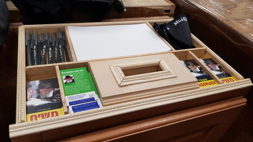לאחר שלא היה כמעט חצי שנה הסטנד של בית חבד 770. הוא נבנה מחדש עי התמימים מ''מ אביעד ושלום זאב קרוגליאק בארון שעוצב מחדש לייעודו, כולל כלי כתיבה, דפים חלקים, כרטיסי משיח ועוד.