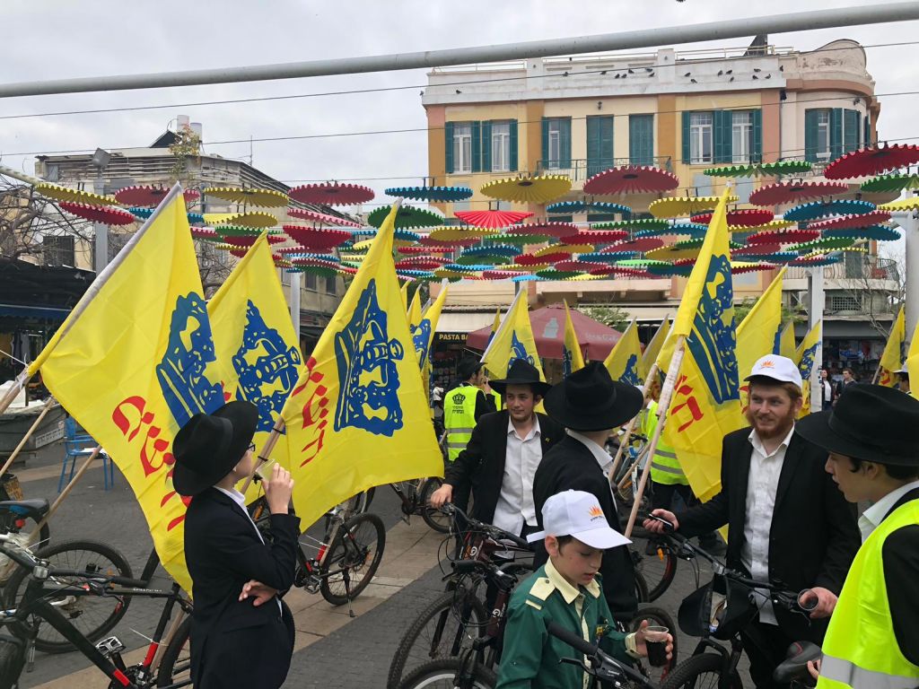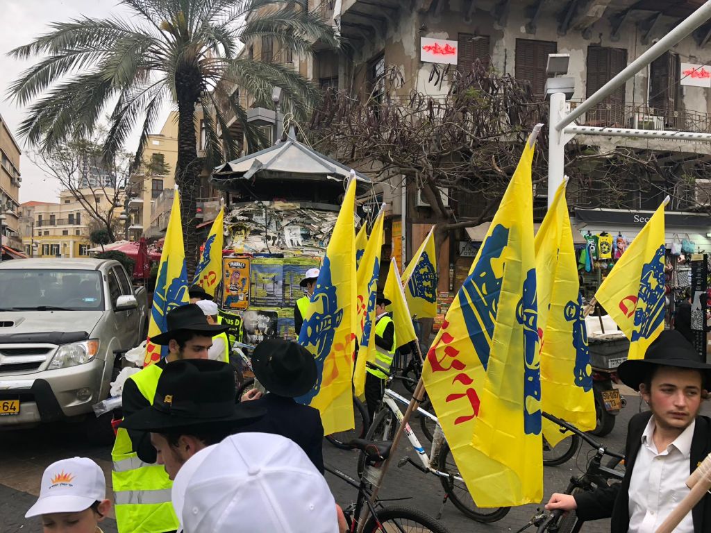 השיירה הססגונית יצאה מבני ברק ועברה במרכזי העיר תל אביב, כשהתמימים מצויידים בדגלי משיח, אפודים זוהרים וכובעים; במרכזים הגדולים בעיר עצרו התמימים למבצע תפילין, הסברת מהותו של יום ופרסום משיח.
