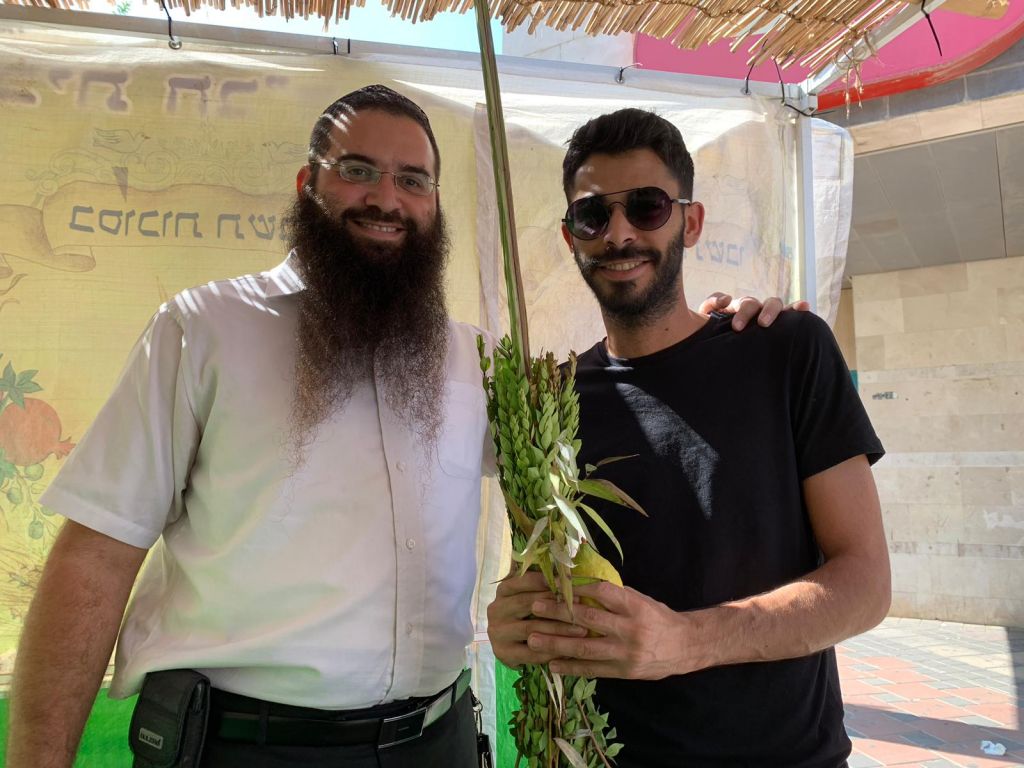 מאות אנשים ברכו על ארבעת המינים בסוכה של בית חב"ד עם הרב אהרון בוטבול שליח הרבי ומנכ"ל בית חב"ד המרכזי והרב יוסף יצחק בוטבול בכניסה לקניון לב העיר עם מערכת איכותית המזמינה את התושבים לברך ולשמוח עם חב"ד.