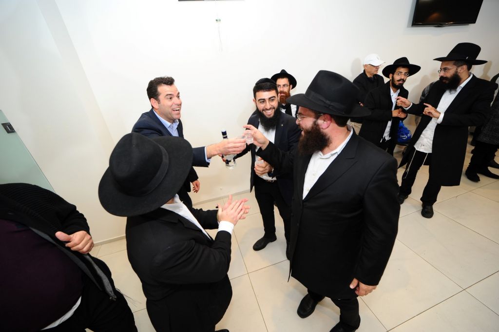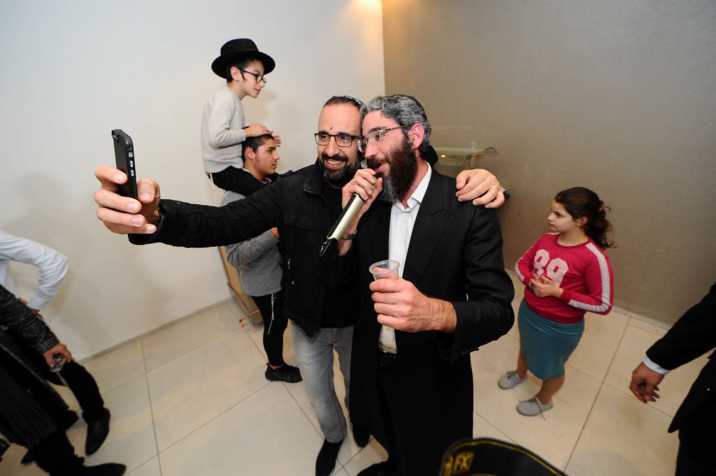 בין לבין פותח הקהל בניגוני התעוררות וריקודי שמחה בניצוחו של אומן הקלידים מענדל'ה מאזוז.