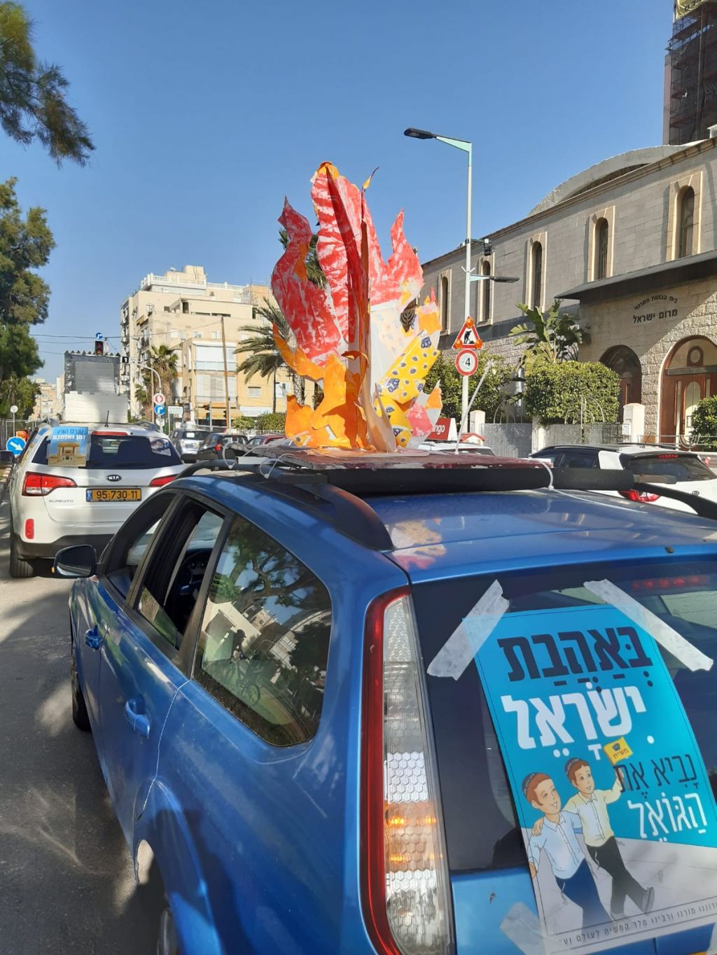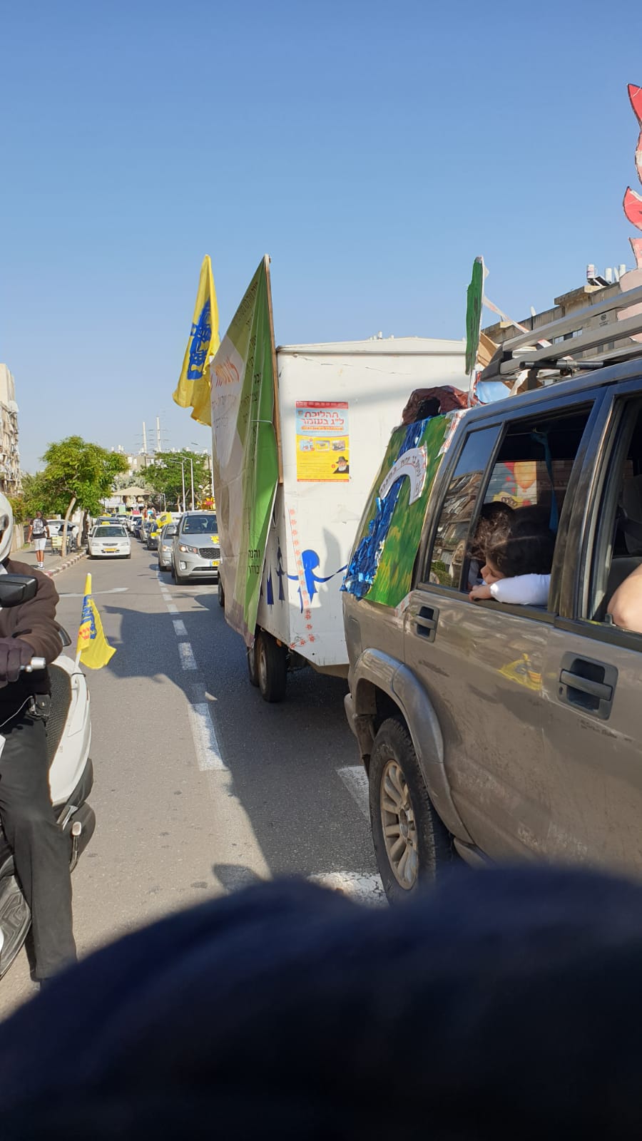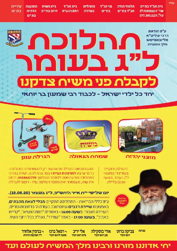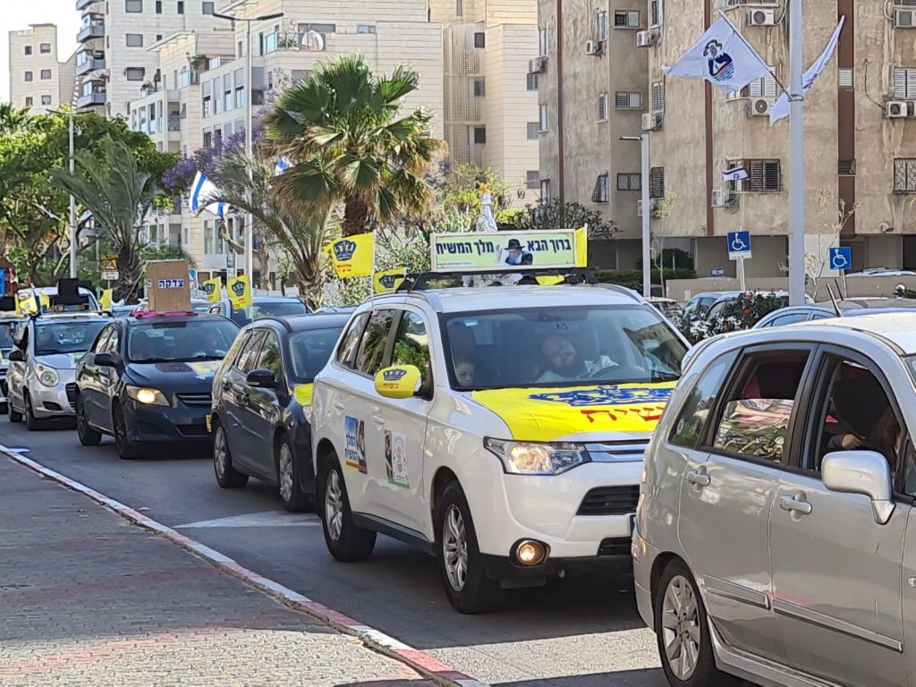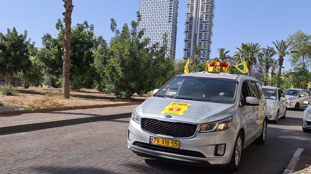 עשרות רכבי אנ"ש בת י"ם עיר הגאולה עם דגלי משיח ומוצגי תהלוכת ל"ג בעומר הסתובבו בעיר בליווי מוזיקה והגיעו לכל פינות העיר תוך זיכוי התושבים בדגלונים וחבילות שי. גלריה ווידאו.