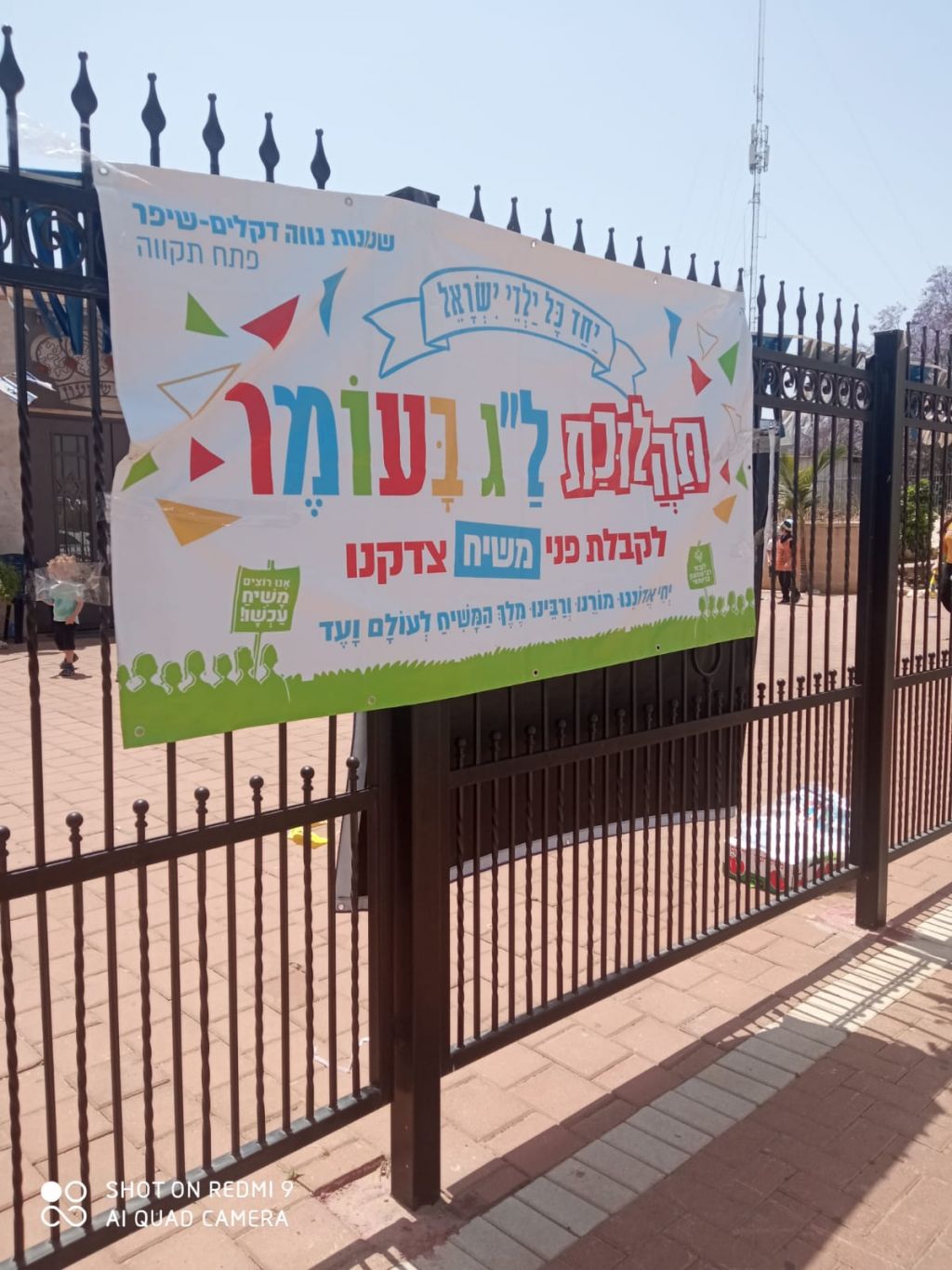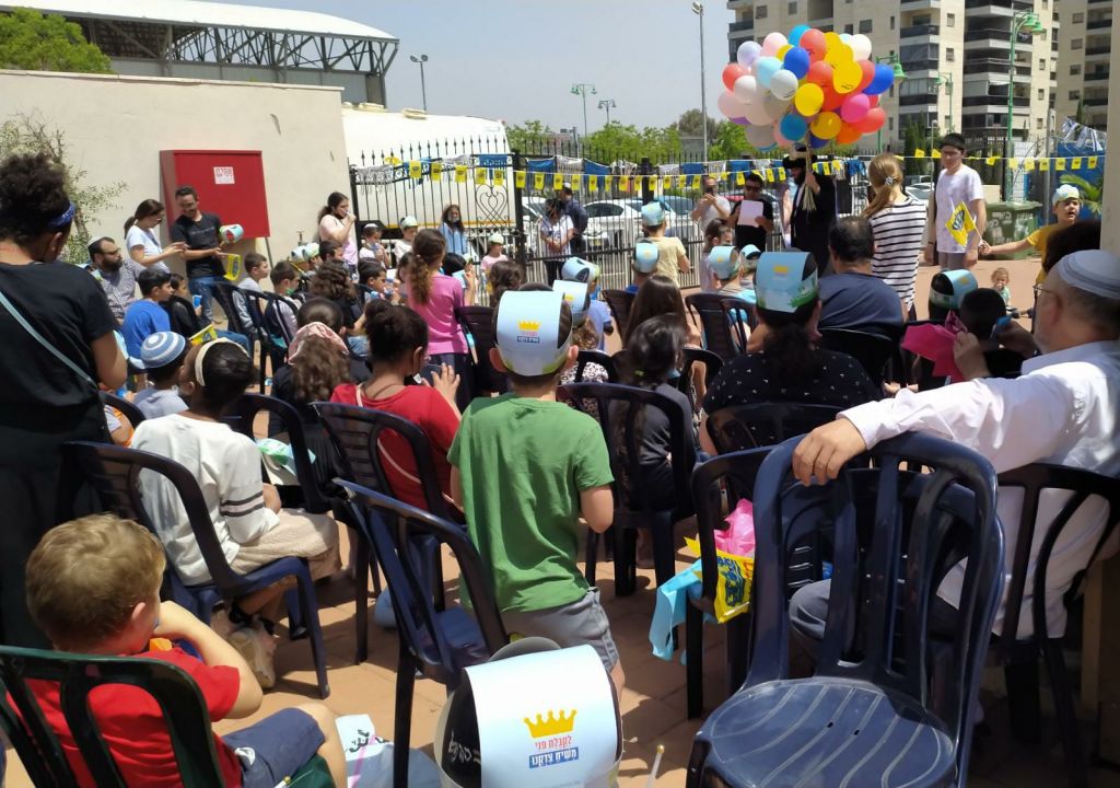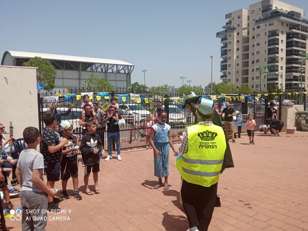ילדי צבאות ה' התכנסו ברחבת בית הכנסת בשכונה, הכריזו 12 הפסוקים והכרזת הקודש, אמרו פרקי תהילים ושמעו סיפורים והוראות מרשב"י וחבורתו מהרב לוי דורון שליח הרבי מלך המשיח שליט"א בשכונה, ולבסוף הפריחו בלונים עם מכתב לקב"ה שיביא את התגלות הרבי תיכף ומיד ממש!