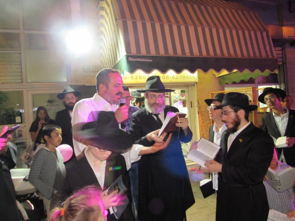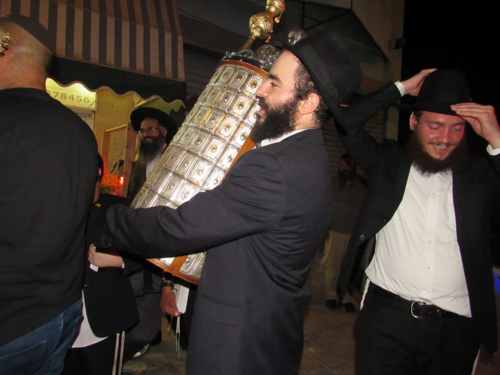 בתום סיום כתיבת האותיות יצאה תהלוכה בשמחה וריקודים, בהנחייתו הנפלאה של ר' אבי ועקנין, שסחפה אליה עוד עשרות יהודים שהצטרפו לשמוח בשמחת התורה.