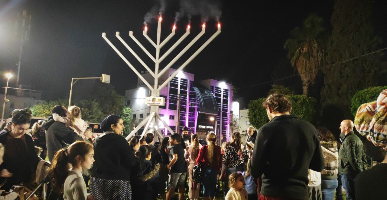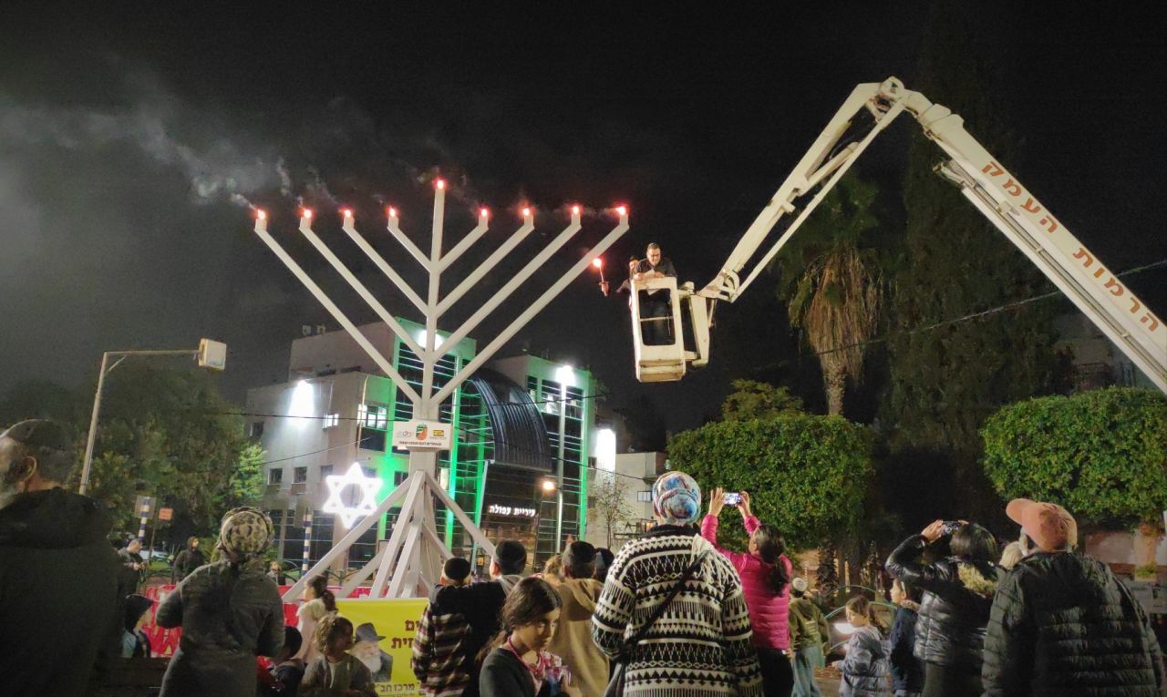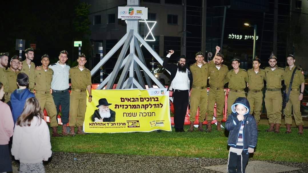 לראשונה בעפולה בדוגמת החנוכיה הגדולה בצפון שהפכה לשיחת העיר, את החנוכיה עיצב שליח חב"ד בעפולה, הרב אמיר הלוי יחד עם מסגרית 'האחים בצלאל' מתענך עם קנים ישרים עפ"י תרשים הרמב"ם, כהוראת הרבי שליט"א מלך המשיח.