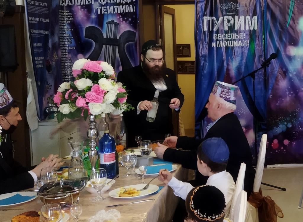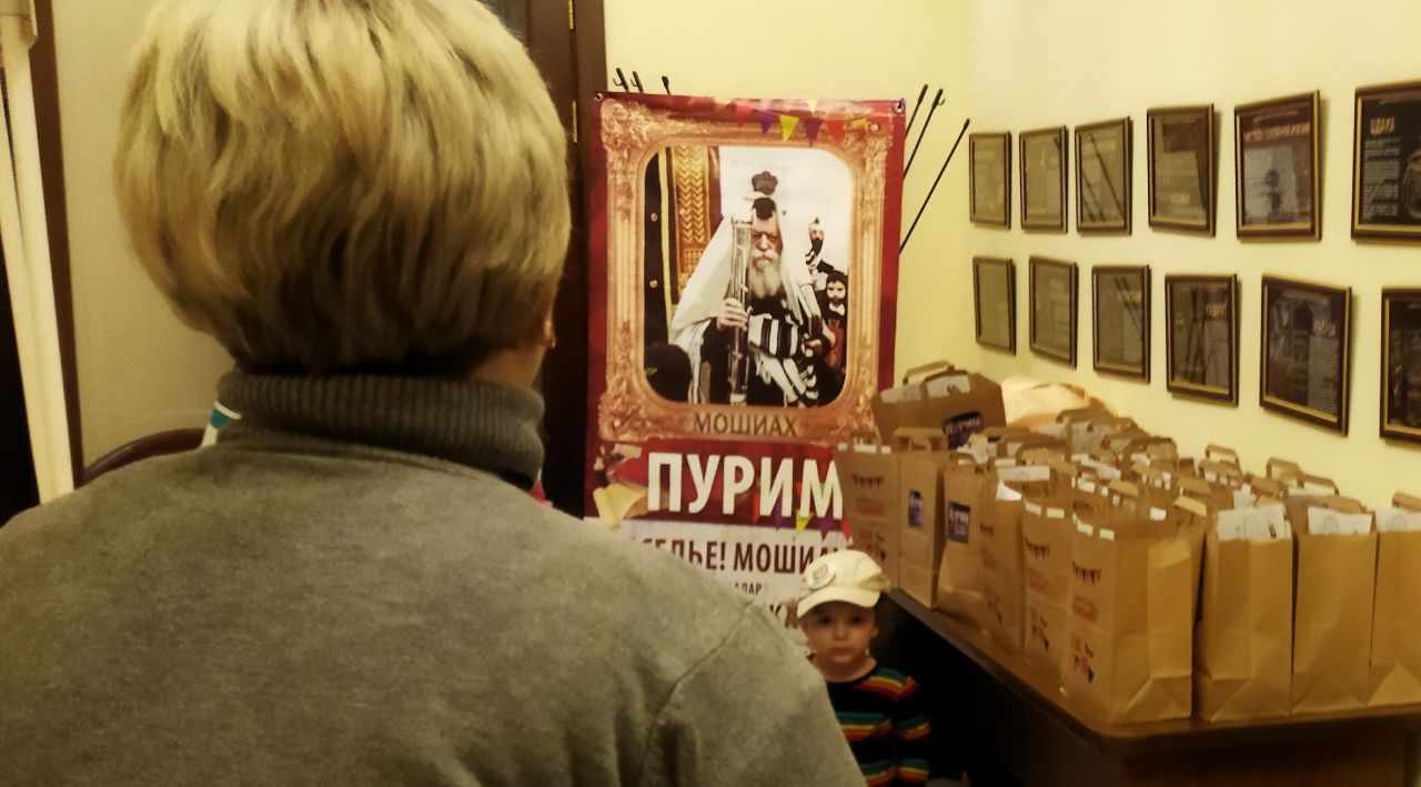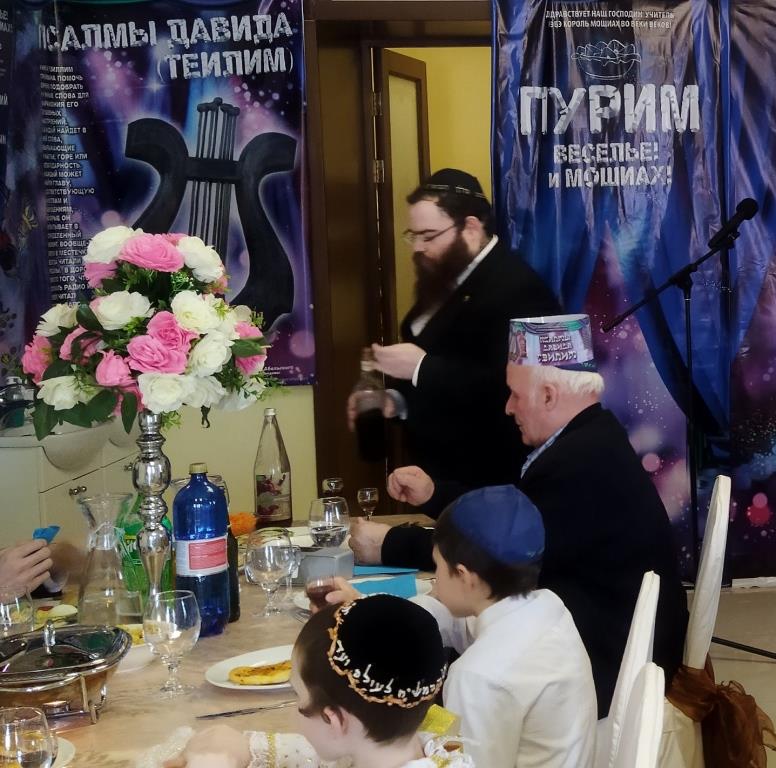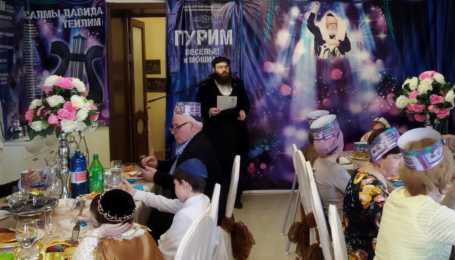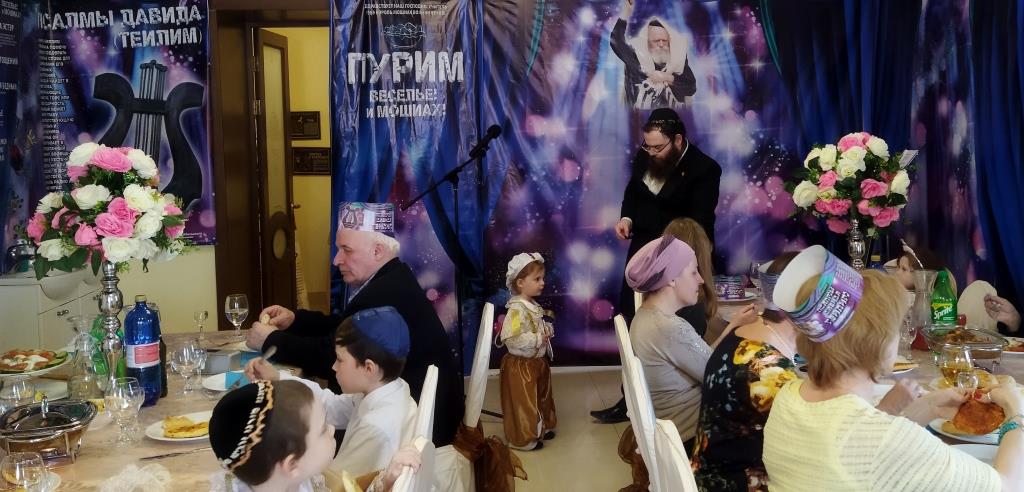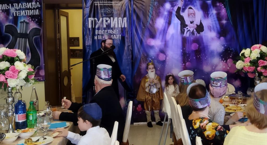 טרם החלה מסיבת הפורים המרכזית, המקדימים זכו לתת מחצית השקל לפני קריאת המגילה. נערך לימוד בחוברות מיוחדות בשפה הרוסית על היסטוריית החג.