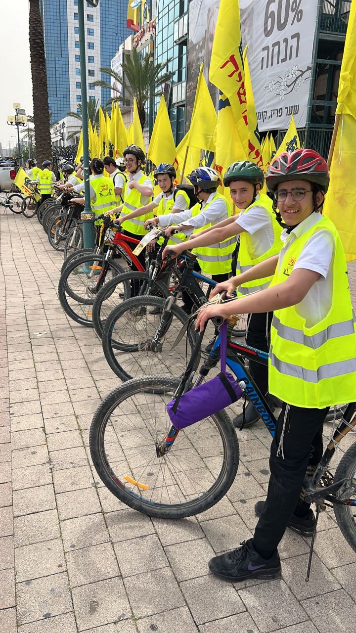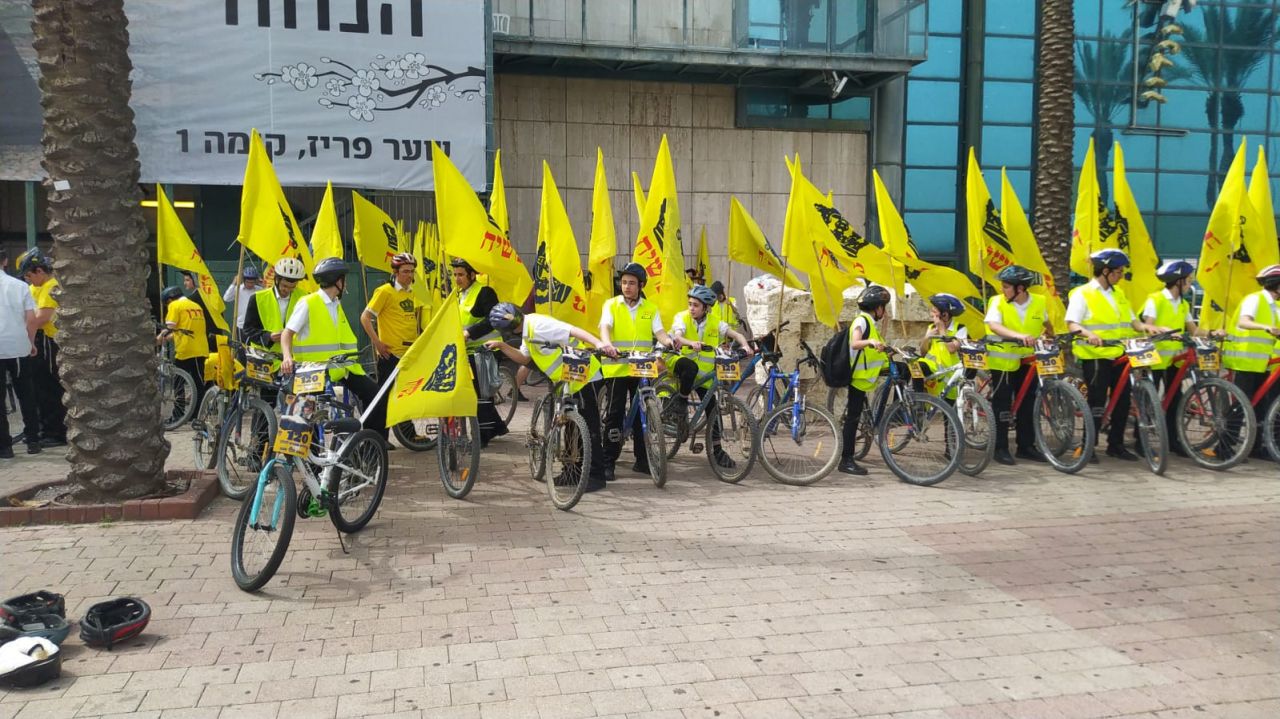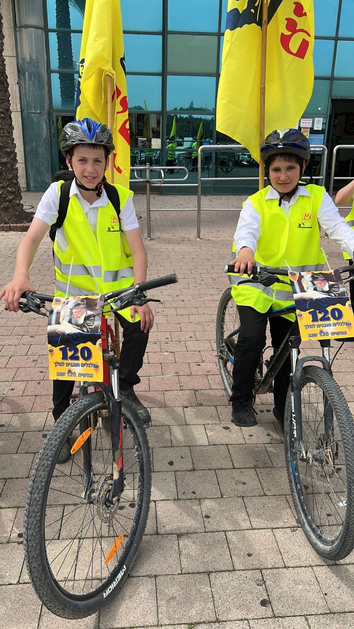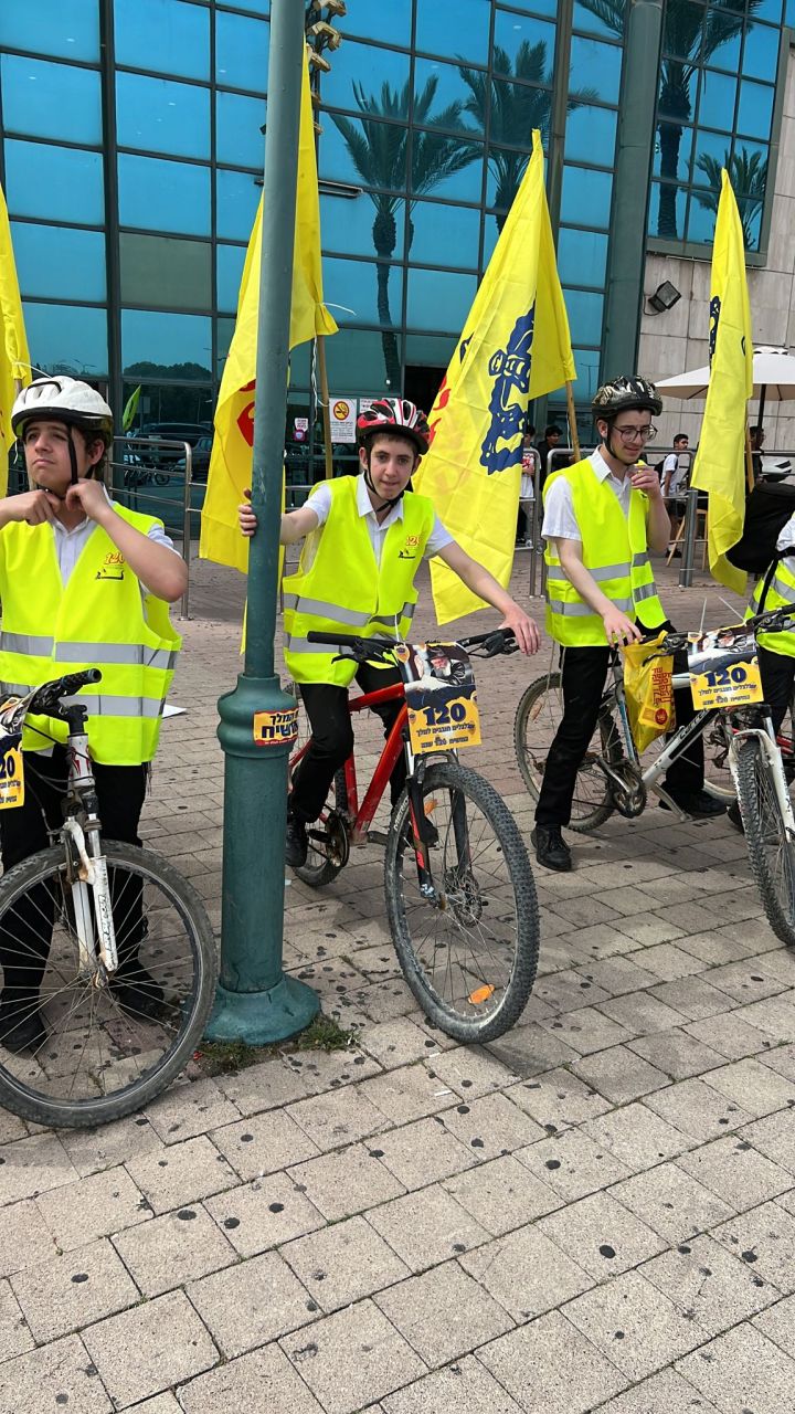 עשרות בחורים מישיבות חב"ד ברחבי הארץ, יצאו לפני שעה קלה בשיירת אופניים מרשימה לכיוון איצטדיון בלומפילד בתל אביב.