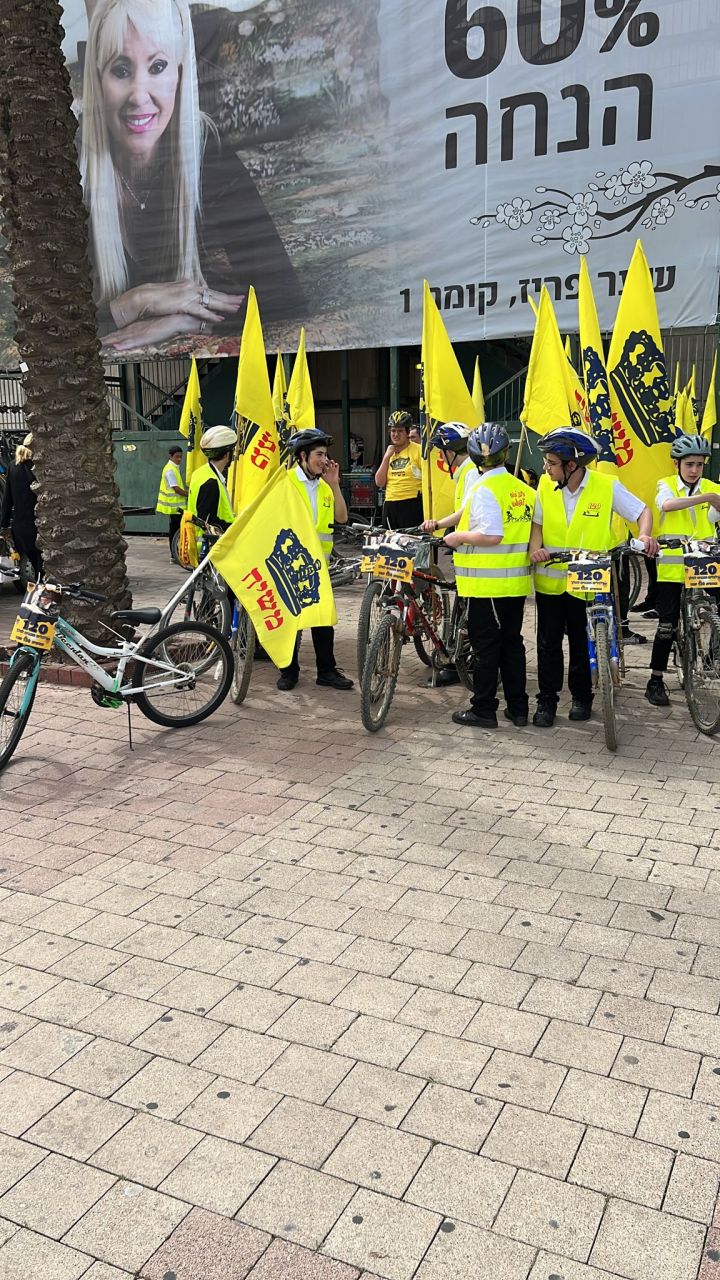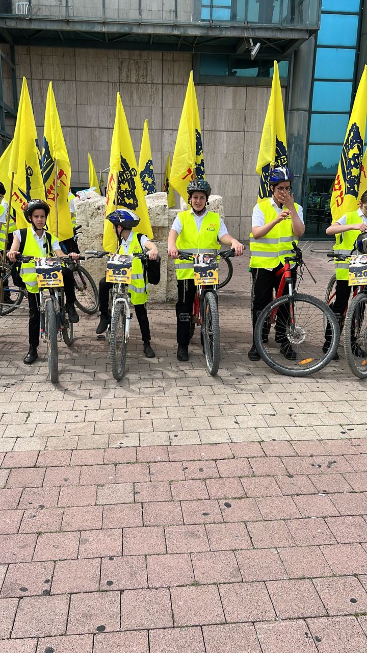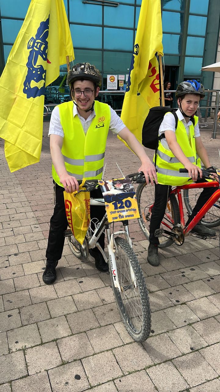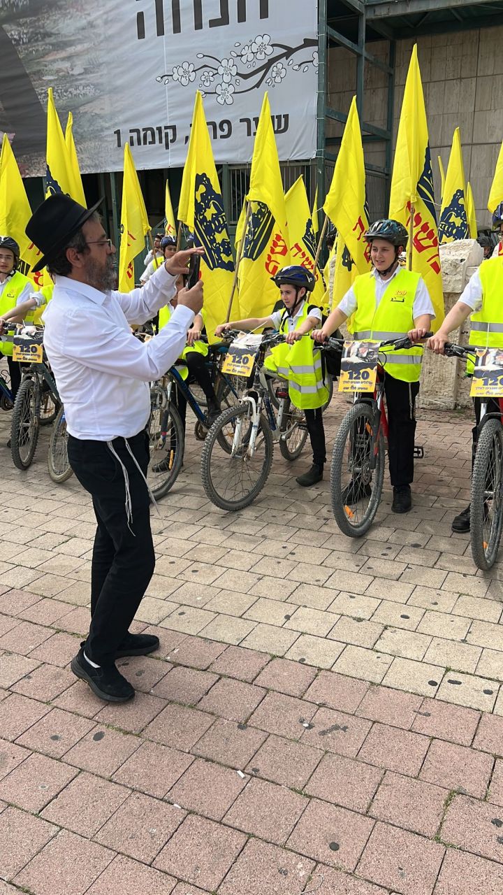עשרות בחורים מישיבות חב"ד ברחבי הארץ, יצאו לפני שעה קלה בשיירת אופניים מרשימה לכיוון איצטדיון בלומפילד בתל אביב.
