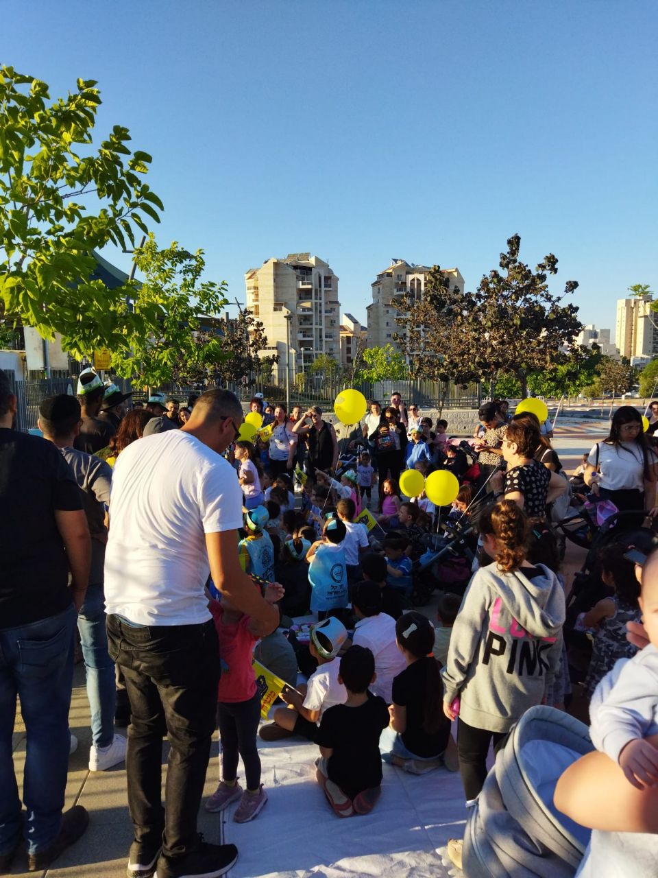 בשעה 17:30 התחילו לזרום מאות ילדים מכל רחבי שכונת נווה זאב , כשכל אחד שמגיע מקבל כובע, אפודה, ובלון משיח.