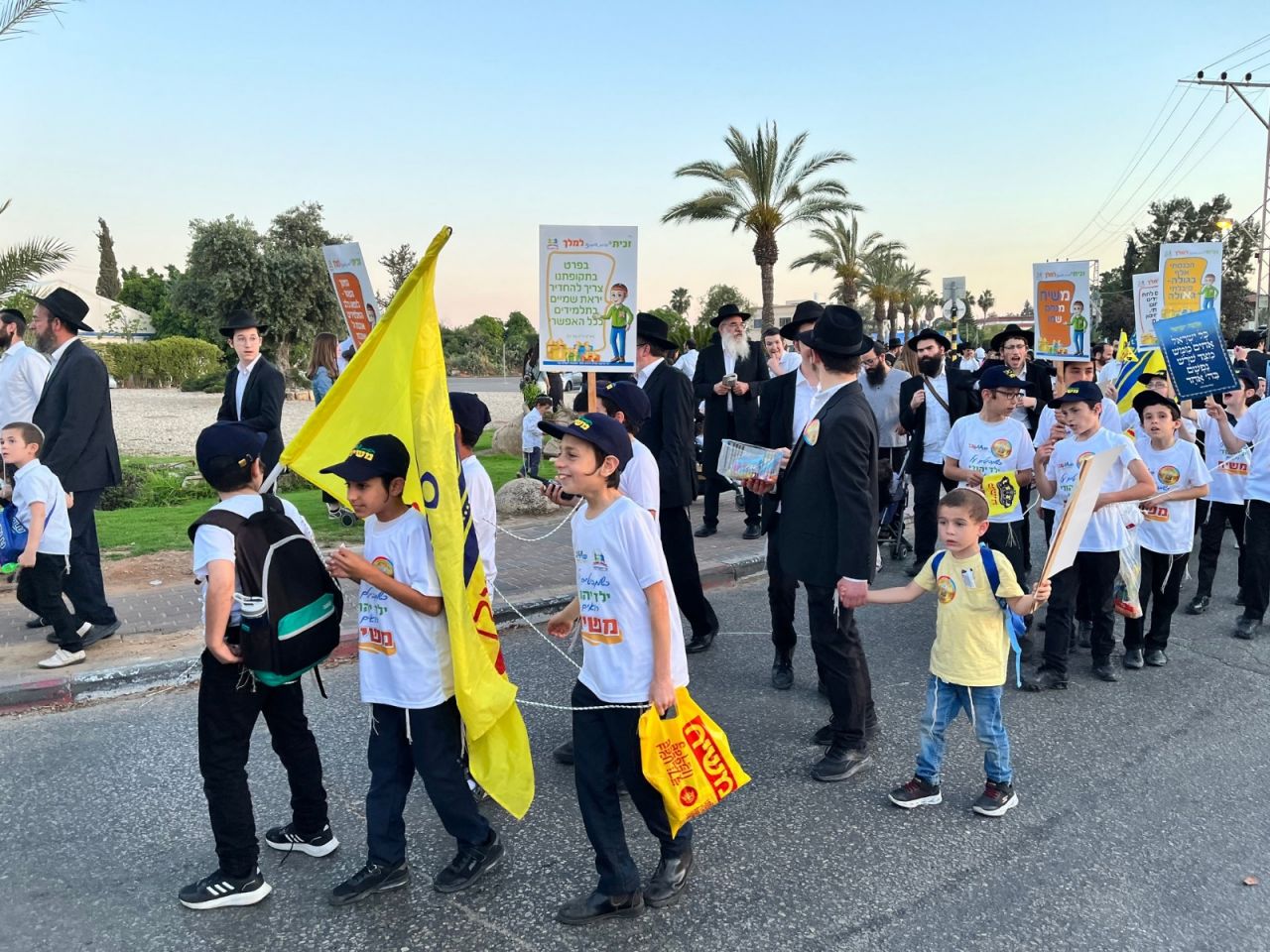 יחד עם הוריהם ומחנכי המוסד, צעדו הילדים בצורה מסודרת והביאו לקידוש השם לעיני כל המשתתפים.