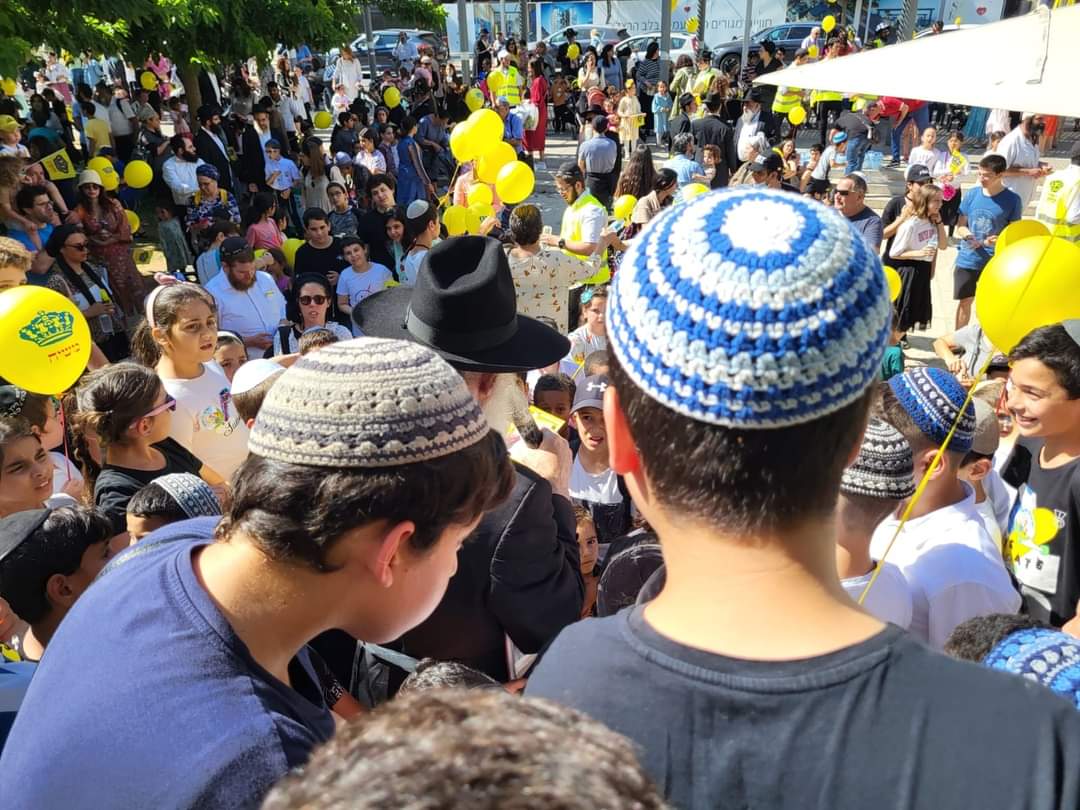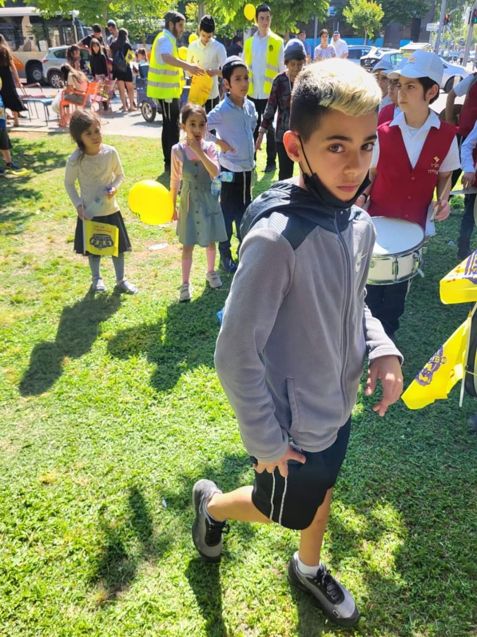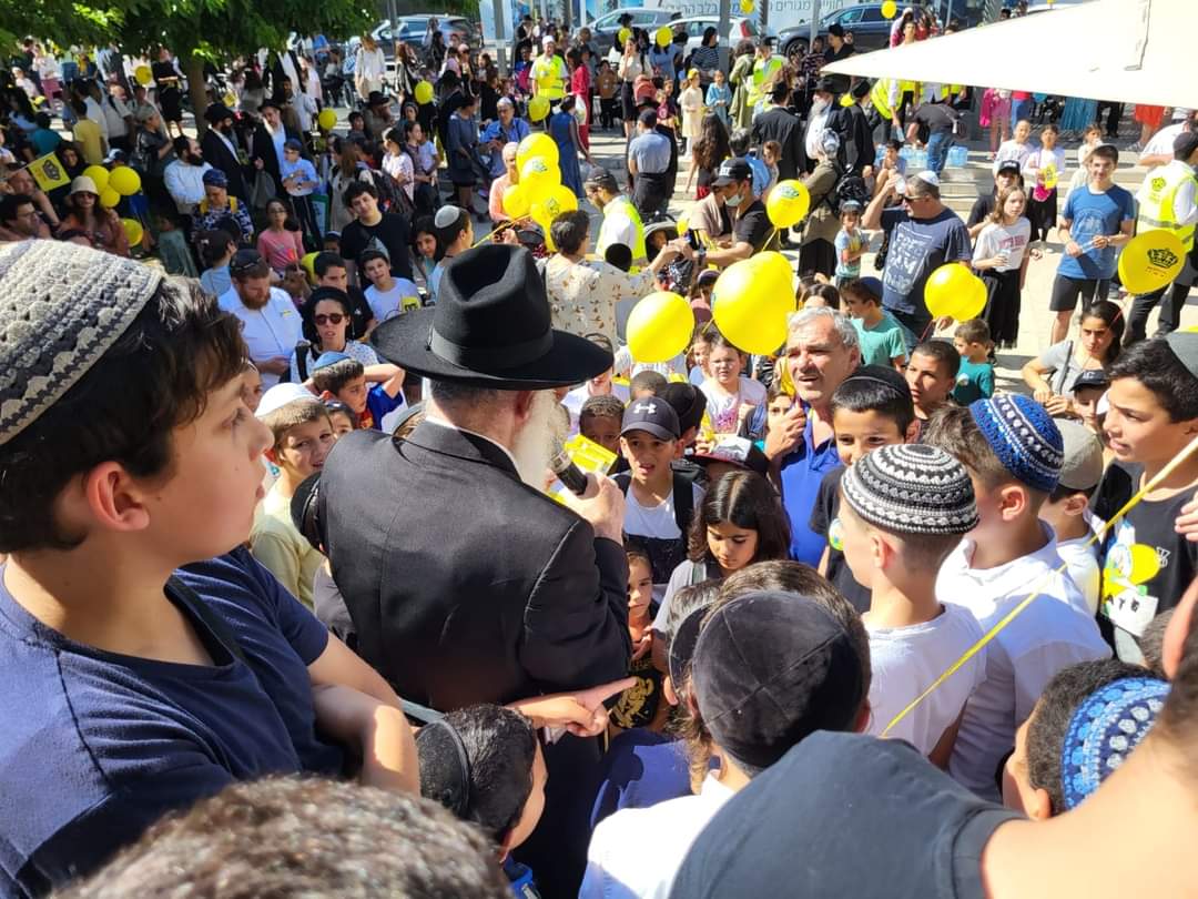 הילדים צעדו בתהלוכה גדולה עם בלוני ודגלוני משיח. ושלטים המבשרים על הגאולה האמיתית והשלמה.