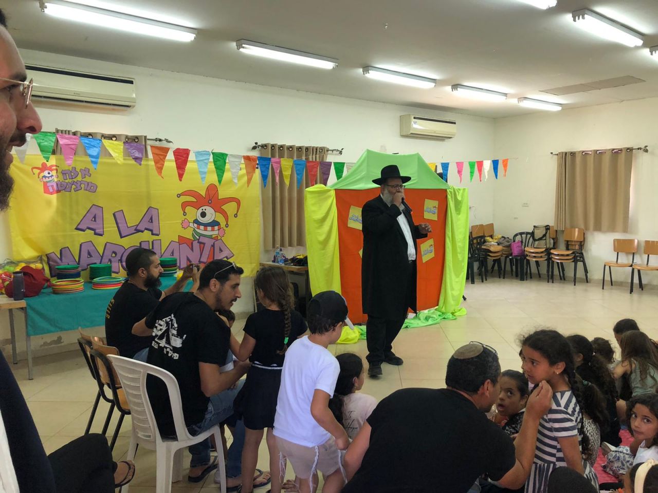 לאחר הצעידה, התכנסו כולם לאמירת 12 הפסוקים ותכנית מעניינת על ל"ג בעומר, כשהשליח מרתק את הילדים עם סיפורים על רבי שמעון בר יוחאי.