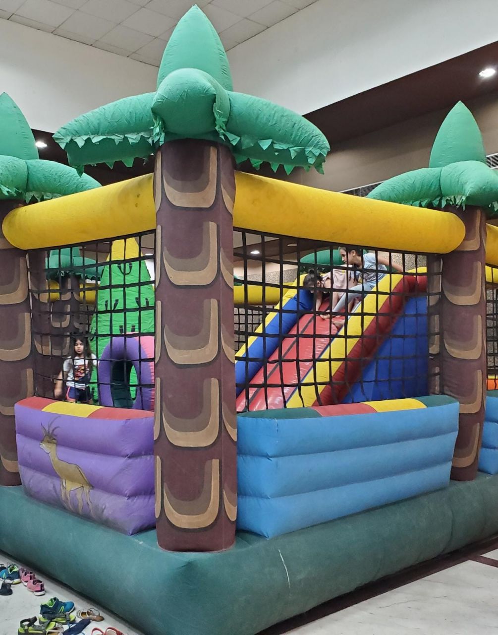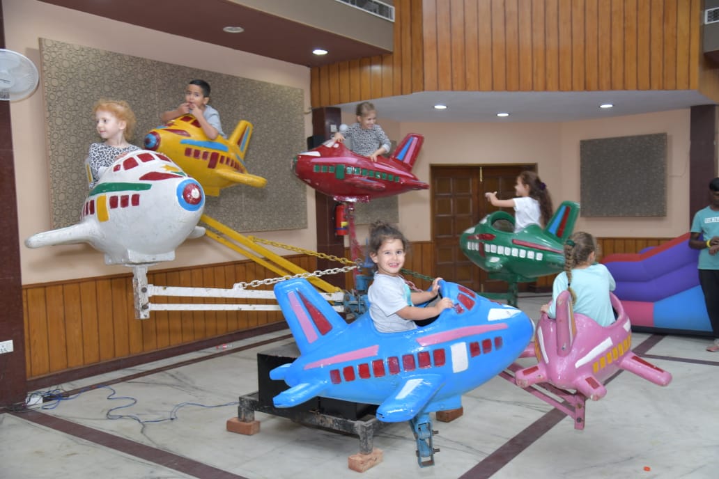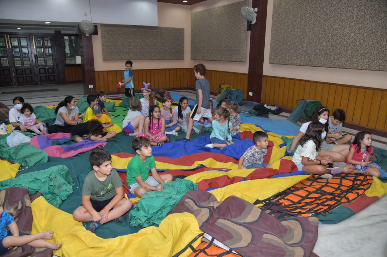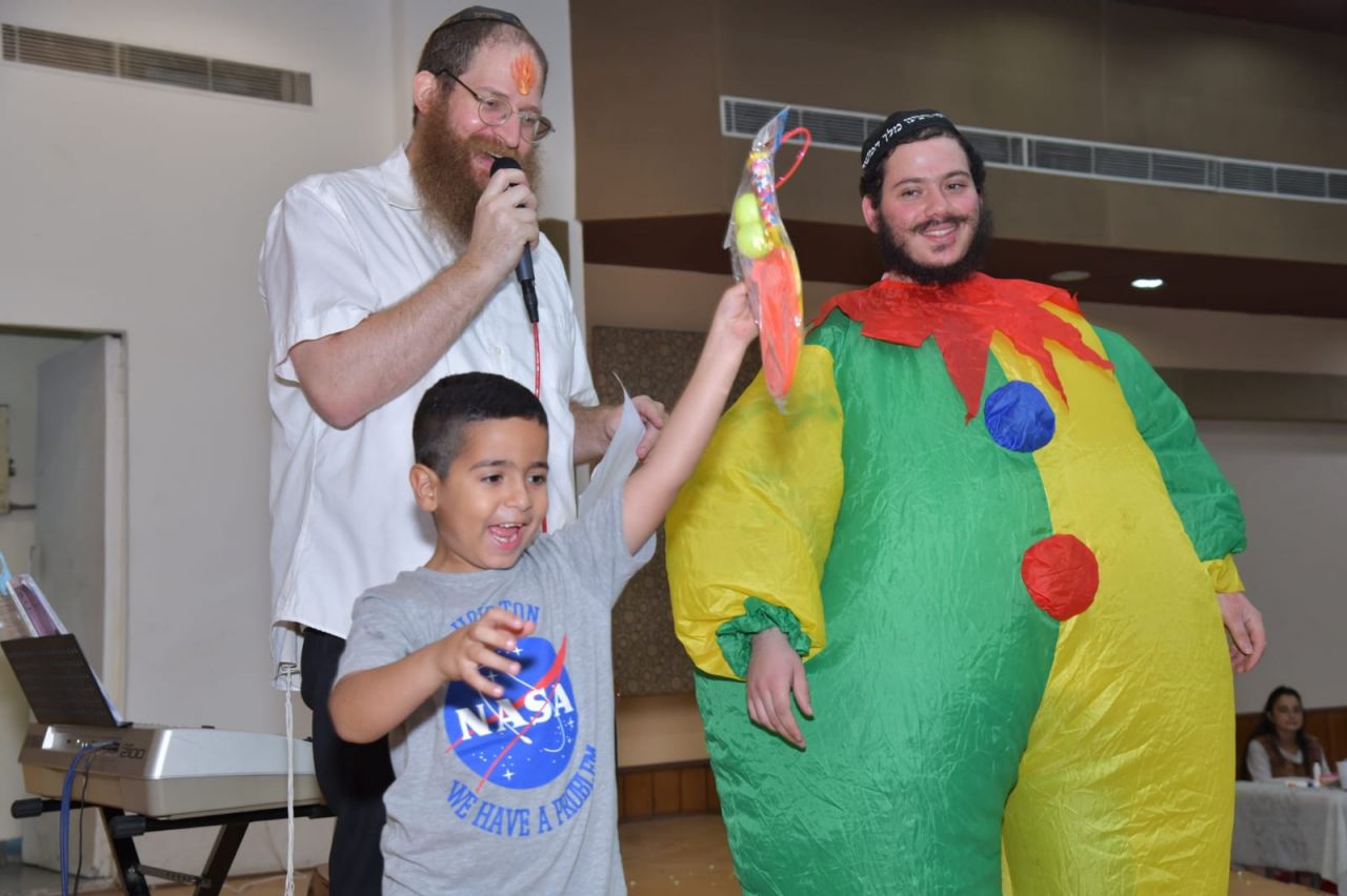 כשבחוץ מעל 45 מעלות חום, נשכר על ידי השליח הרב שניאור קופציק אולם ממוזג אליו הגיעו עשרות ילדים ונהנו ממתקנים.