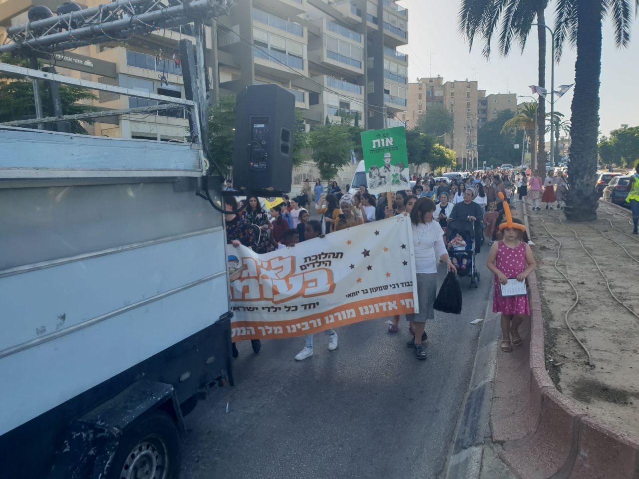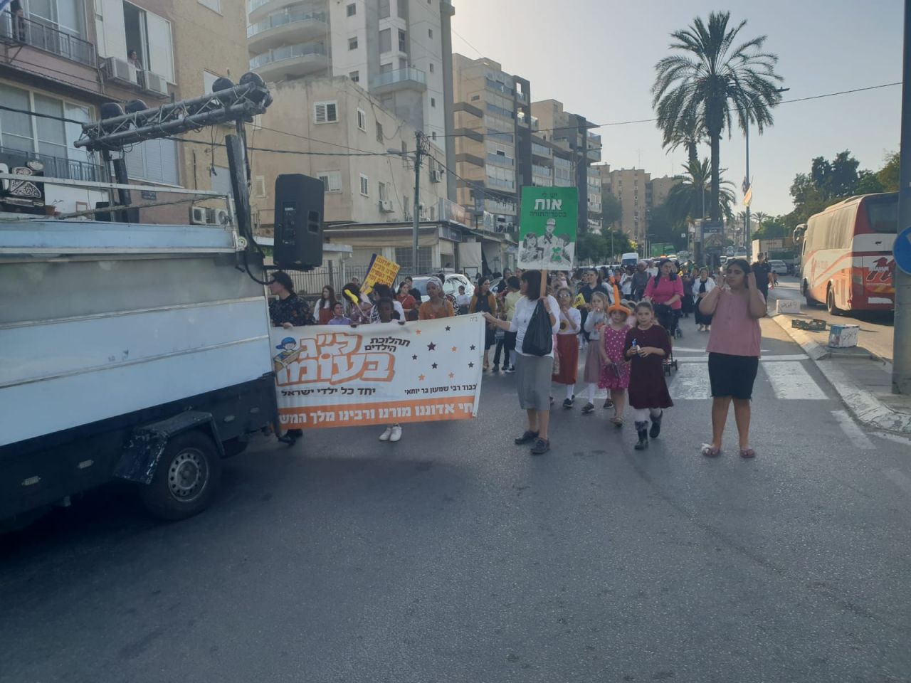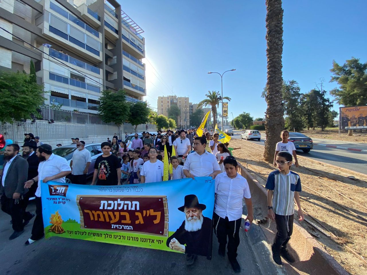 בשעה 16:30 התכונה רבה טנק המבצעים בליווי קבוצת מתופפים בראש התהלוכה תוך שילוב של רכב ספר תורה עם מוזיקה מוגברת עם שירי התהלוכה, משם צעדו אלפי הילדים בליווי ההורים דרך הרחוב הראשי בקידוש השם ובליווי סיסמאות קודש לעבר מתנ"ס היכל אידית לכינוס ענק.