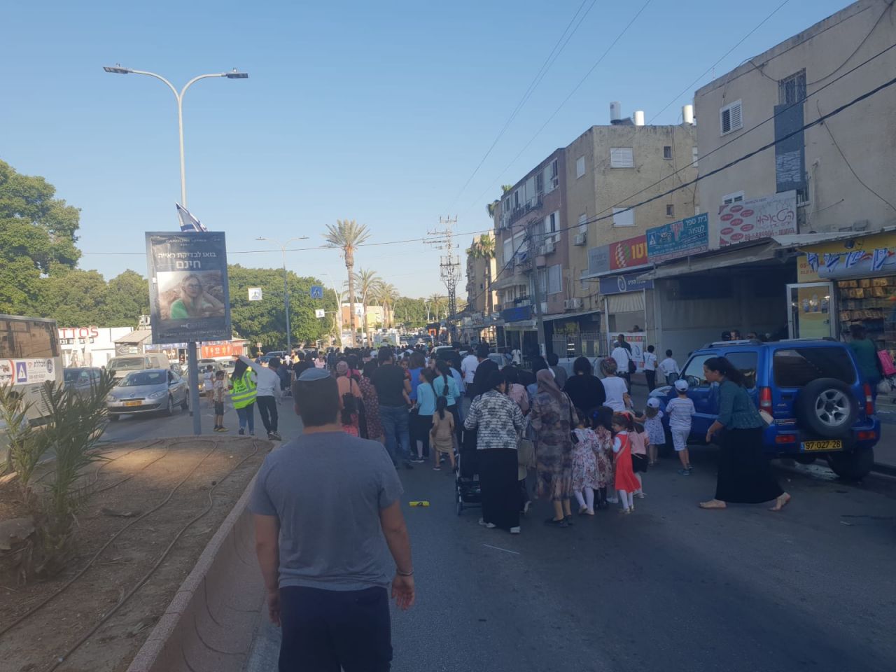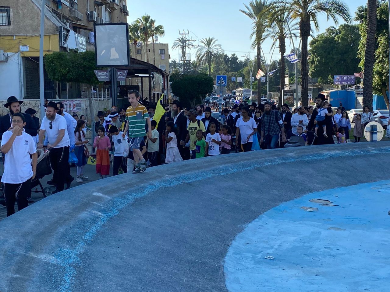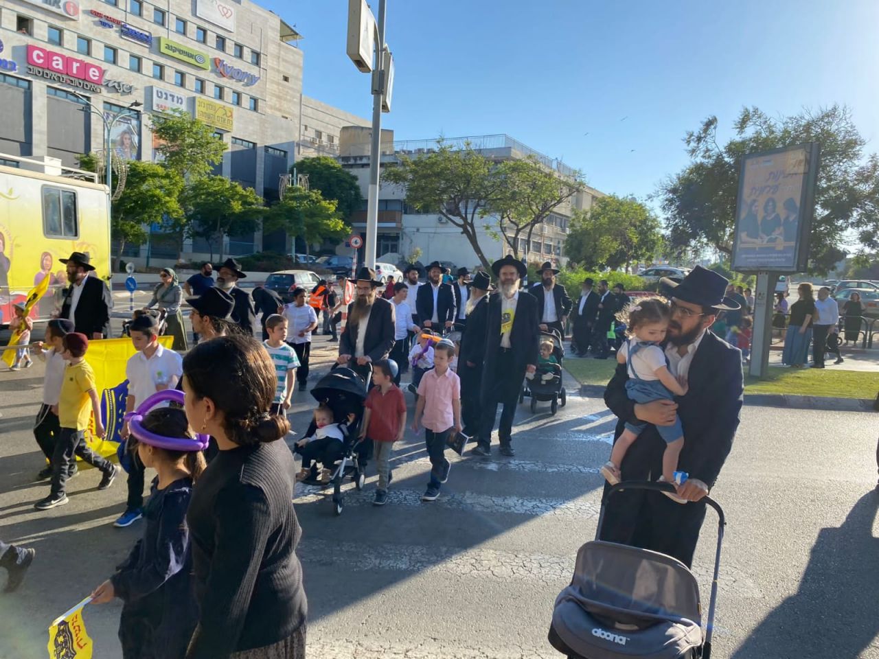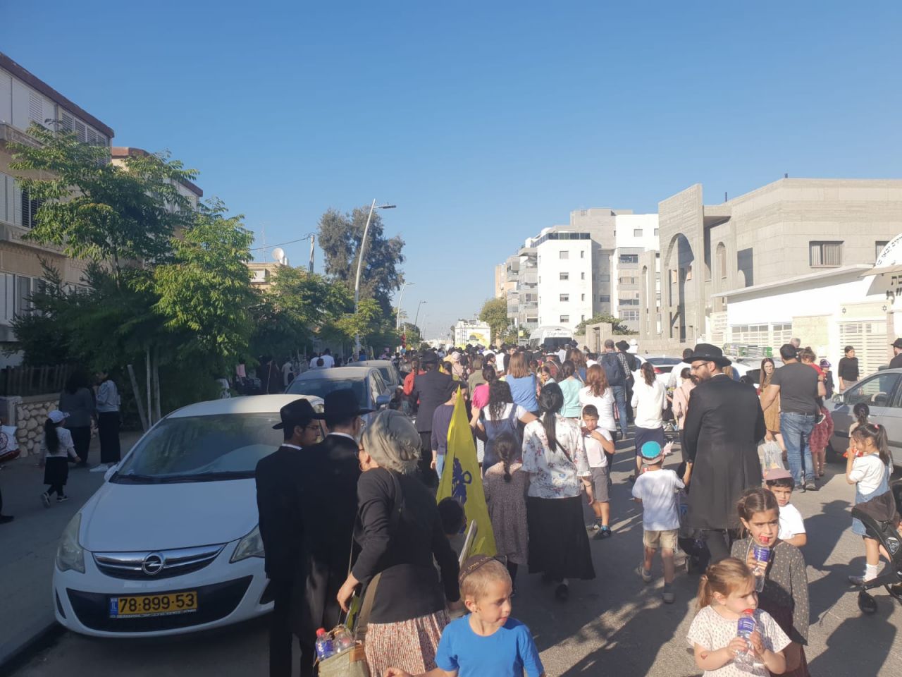 בשעה 16:30 התכונה רבה טנק המבצעים בליווי קבוצת מתופפים בראש התהלוכה תוך שילוב של רכב ספר תורה עם מוזיקה מוגברת עם שירי התהלוכה, משם צעדו אלפי הילדים בליווי ההורים דרך הרחוב הראשי בקידוש השם ובליווי סיסמאות קודש לעבר מתנ"ס היכל אידית לכינוס ענק.
